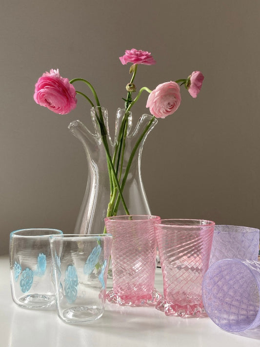 Bicchieri rosa con base in cristallo