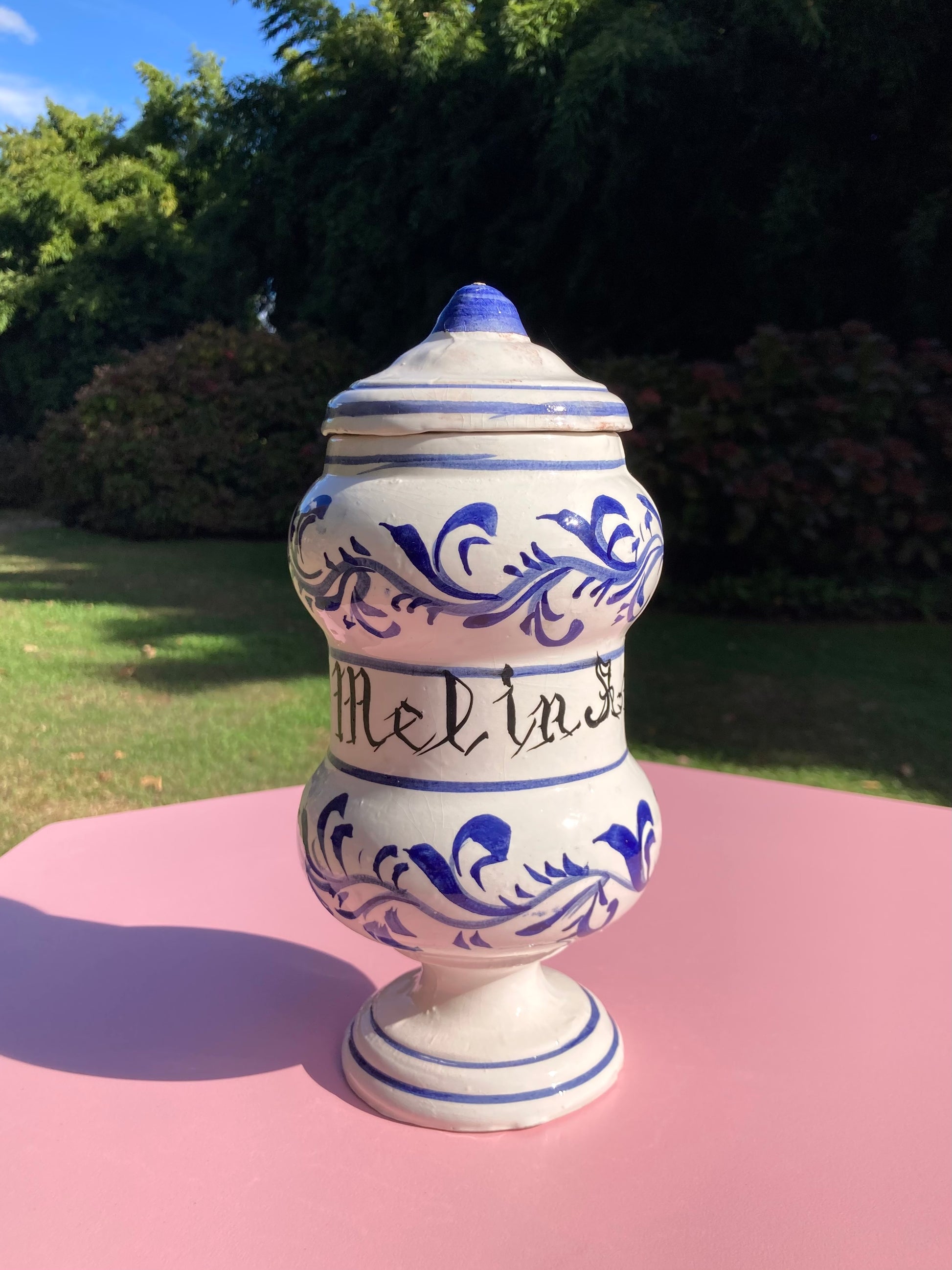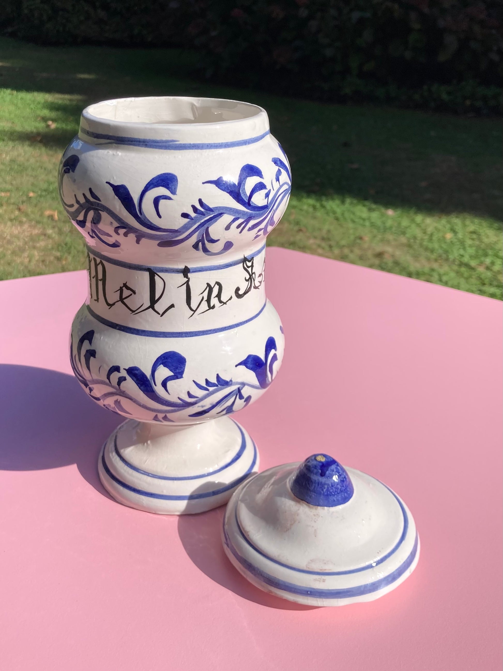 Barattolo da farmacia vintage in ceramica realizzato e dipinto a mano 🧿