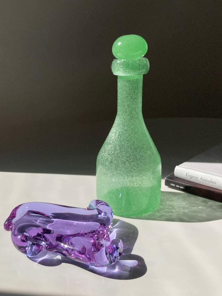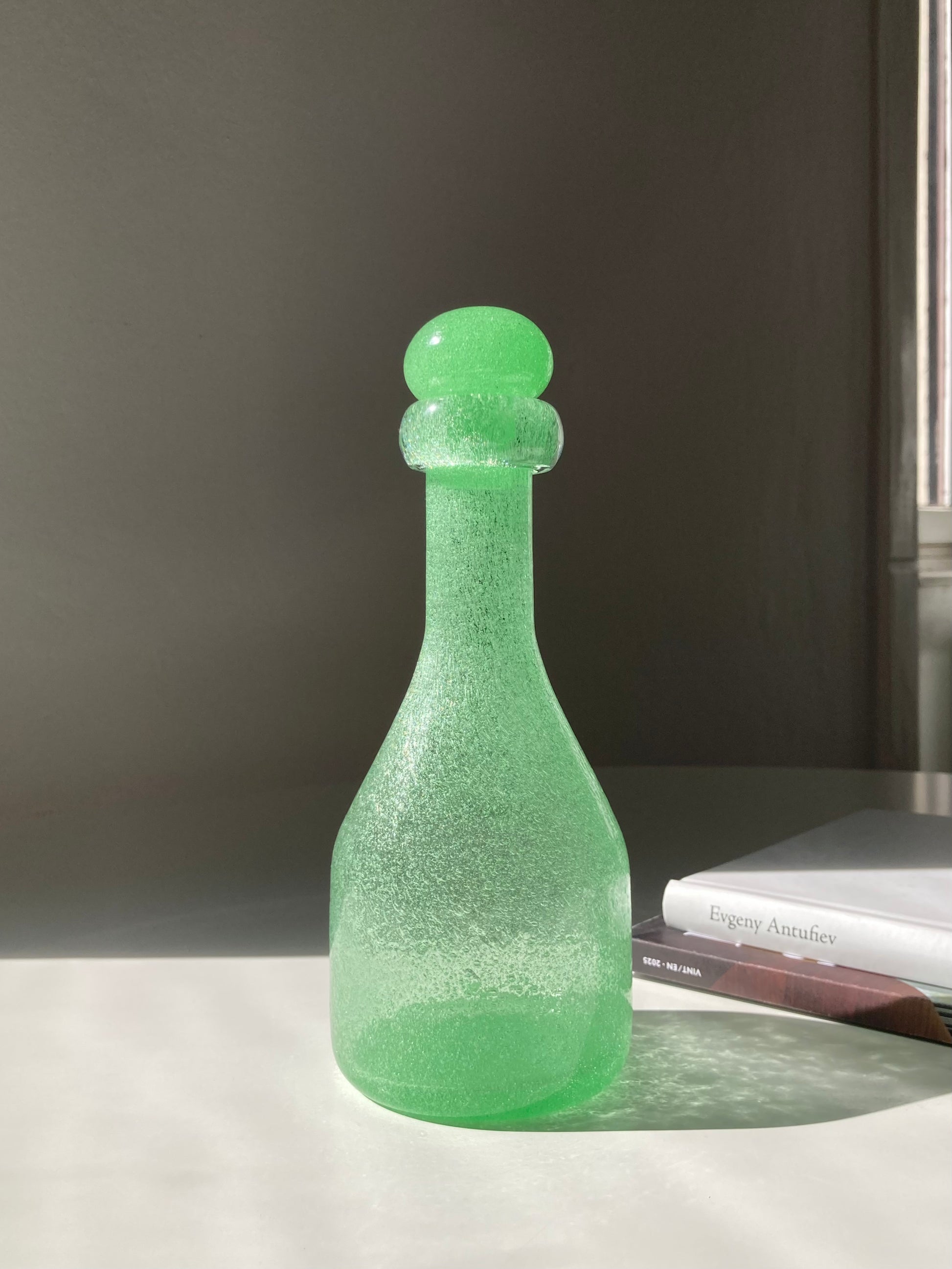 Bottiglia decorativa in pasta di vetro verde lavorata a mano 🍏✨