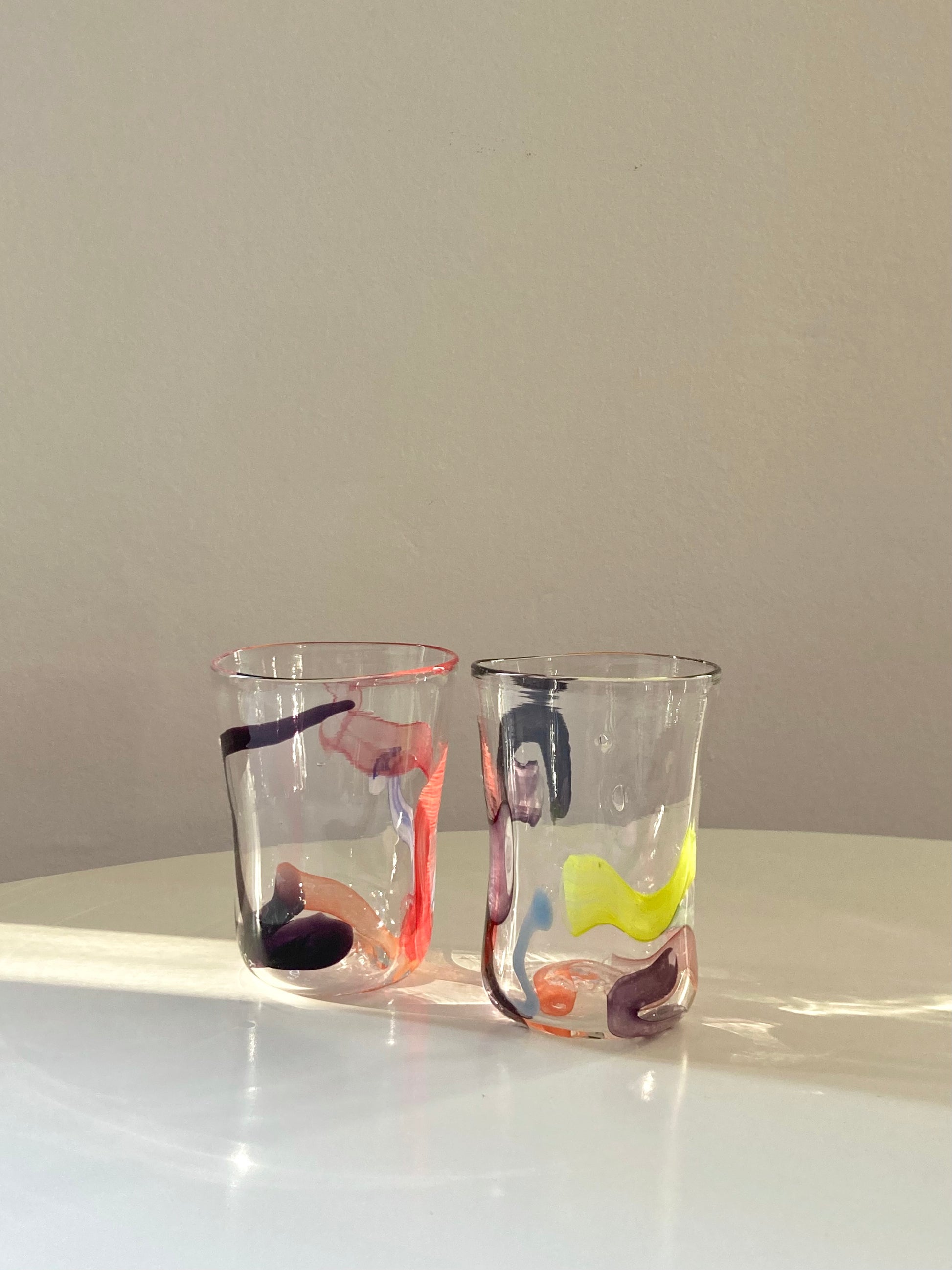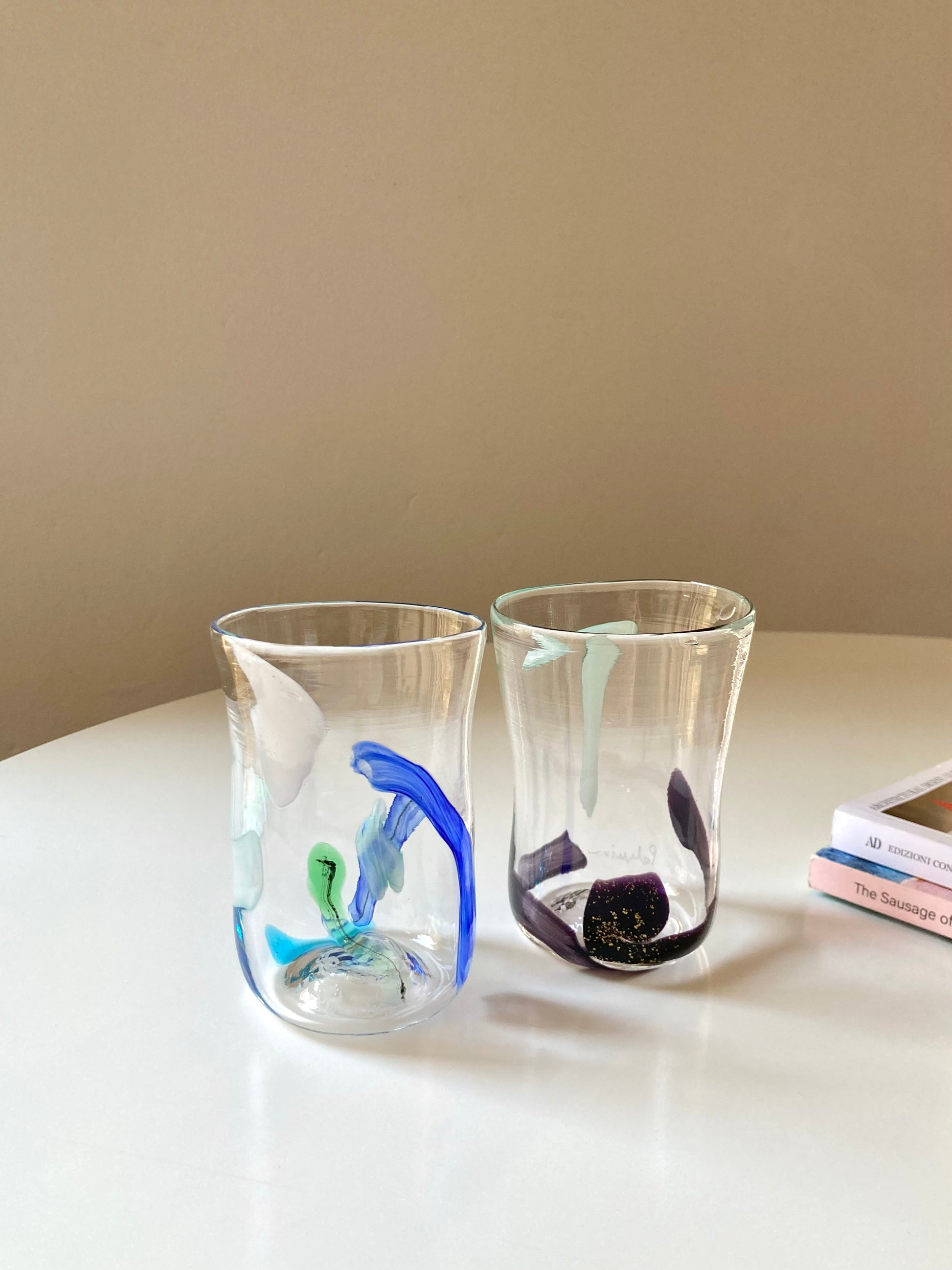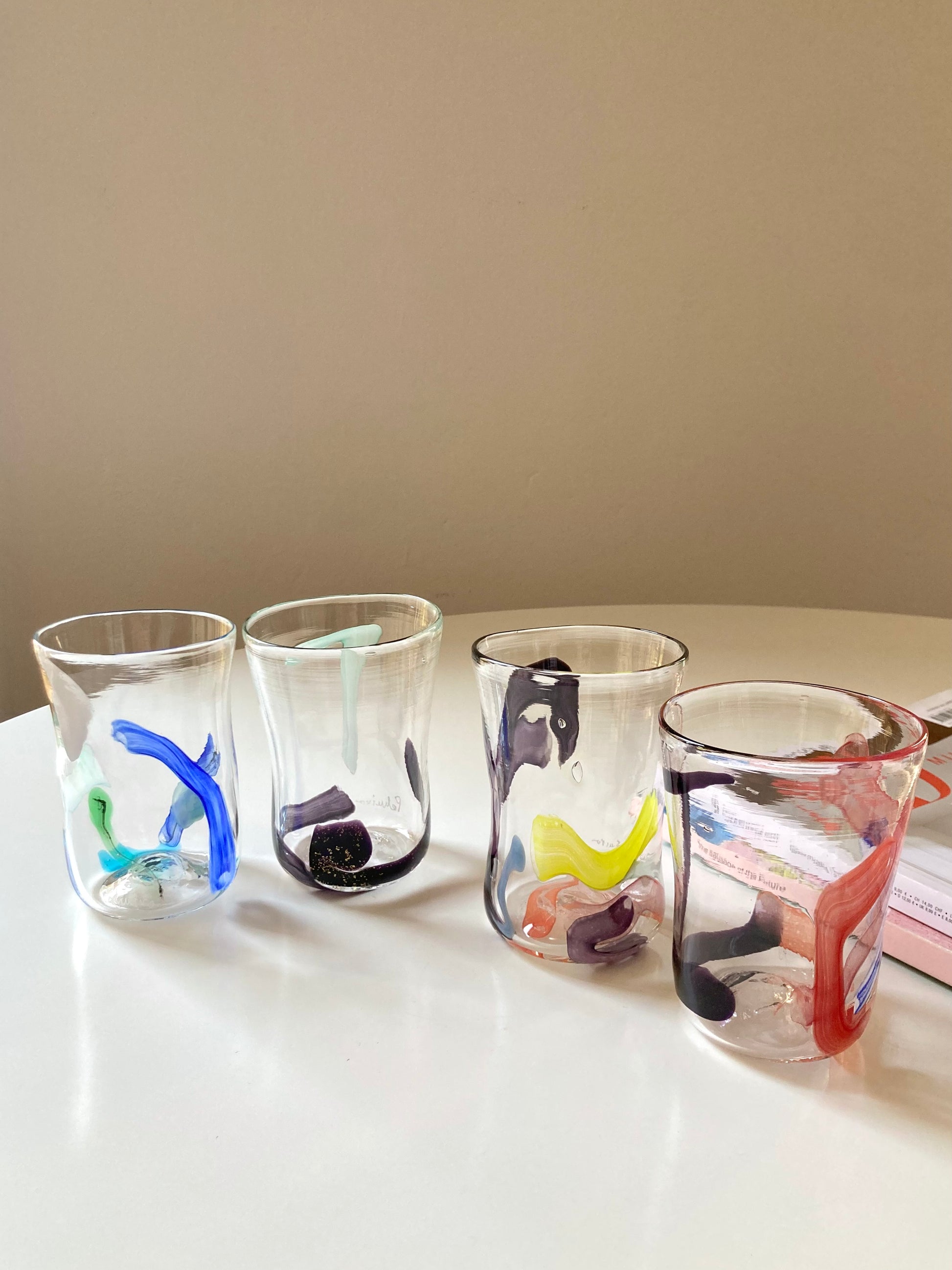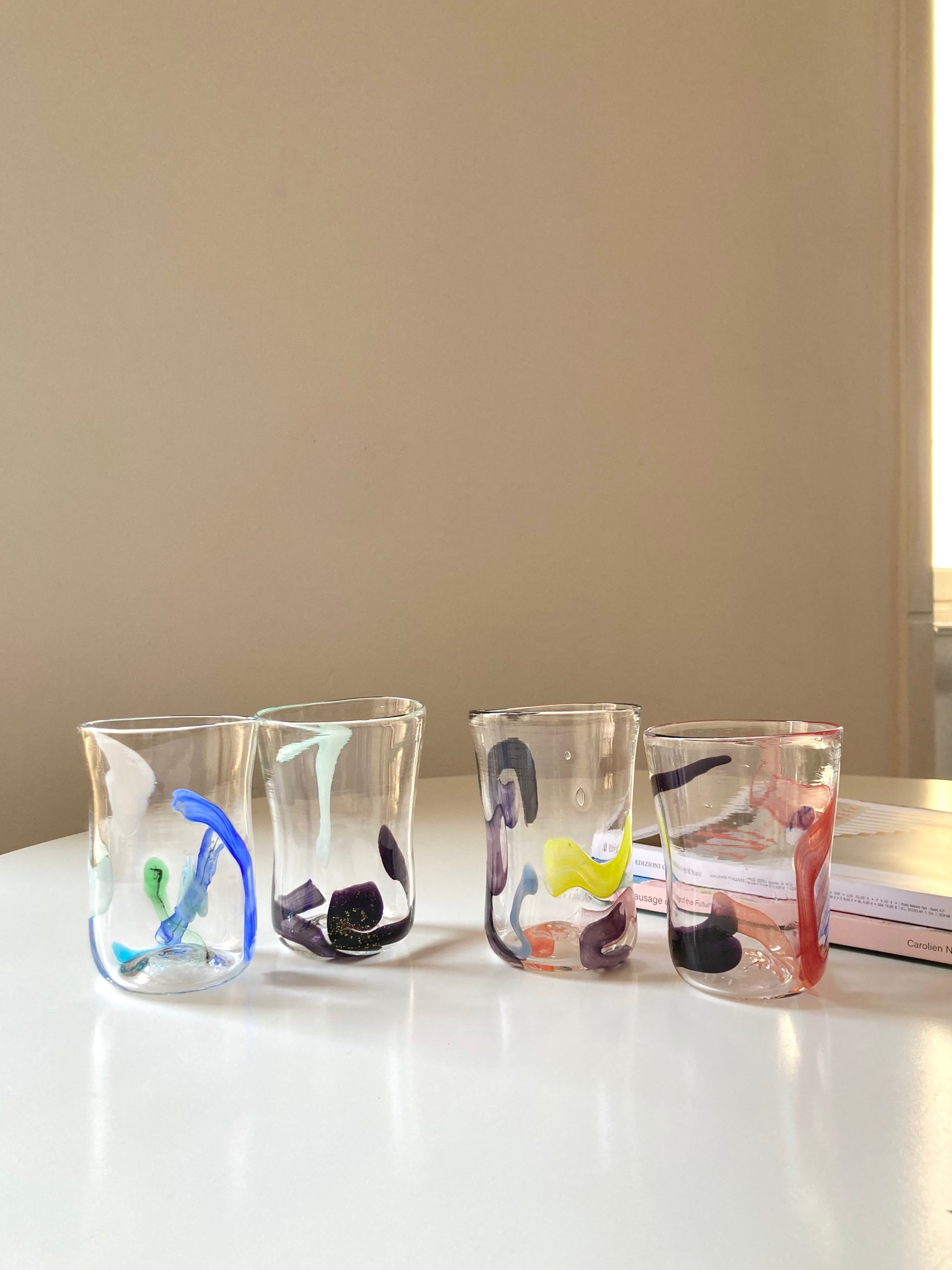Set di 6 bicchieri goti veneziani da vino o acqua realizzati interamente a mano in vetro di Murano e decorati con linee e forme astratte che rendono ciascun bicchiere unico e diverso dagli altri 🎨