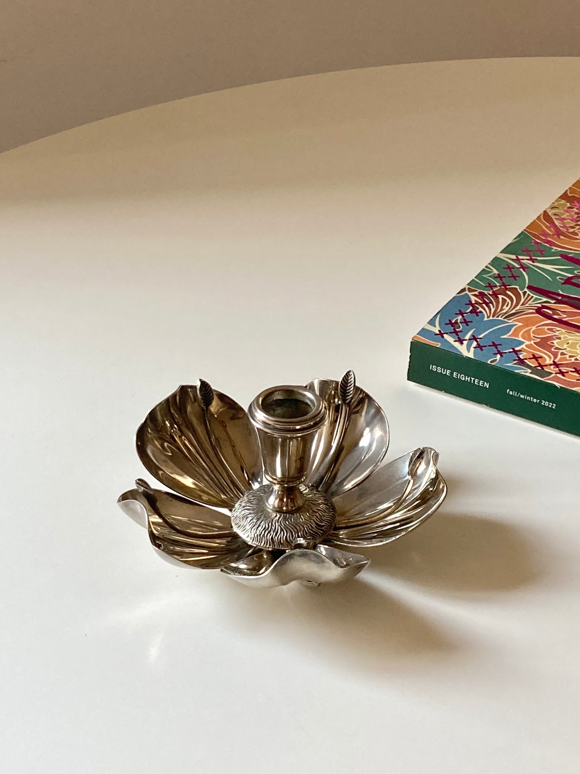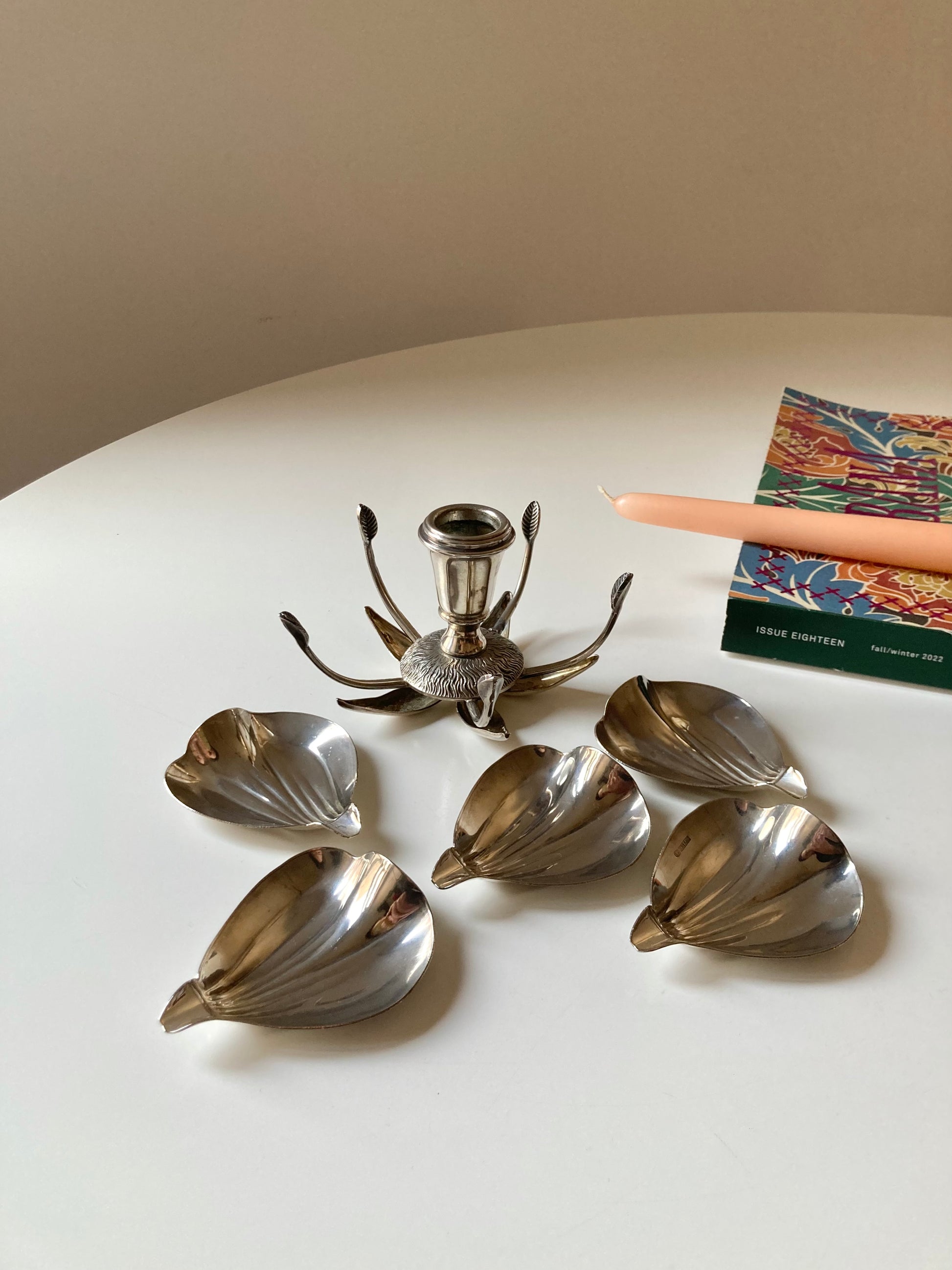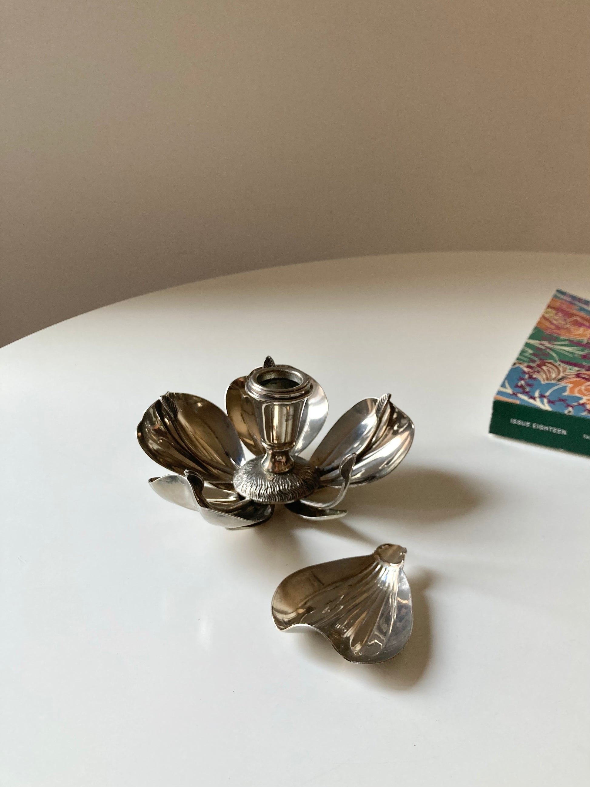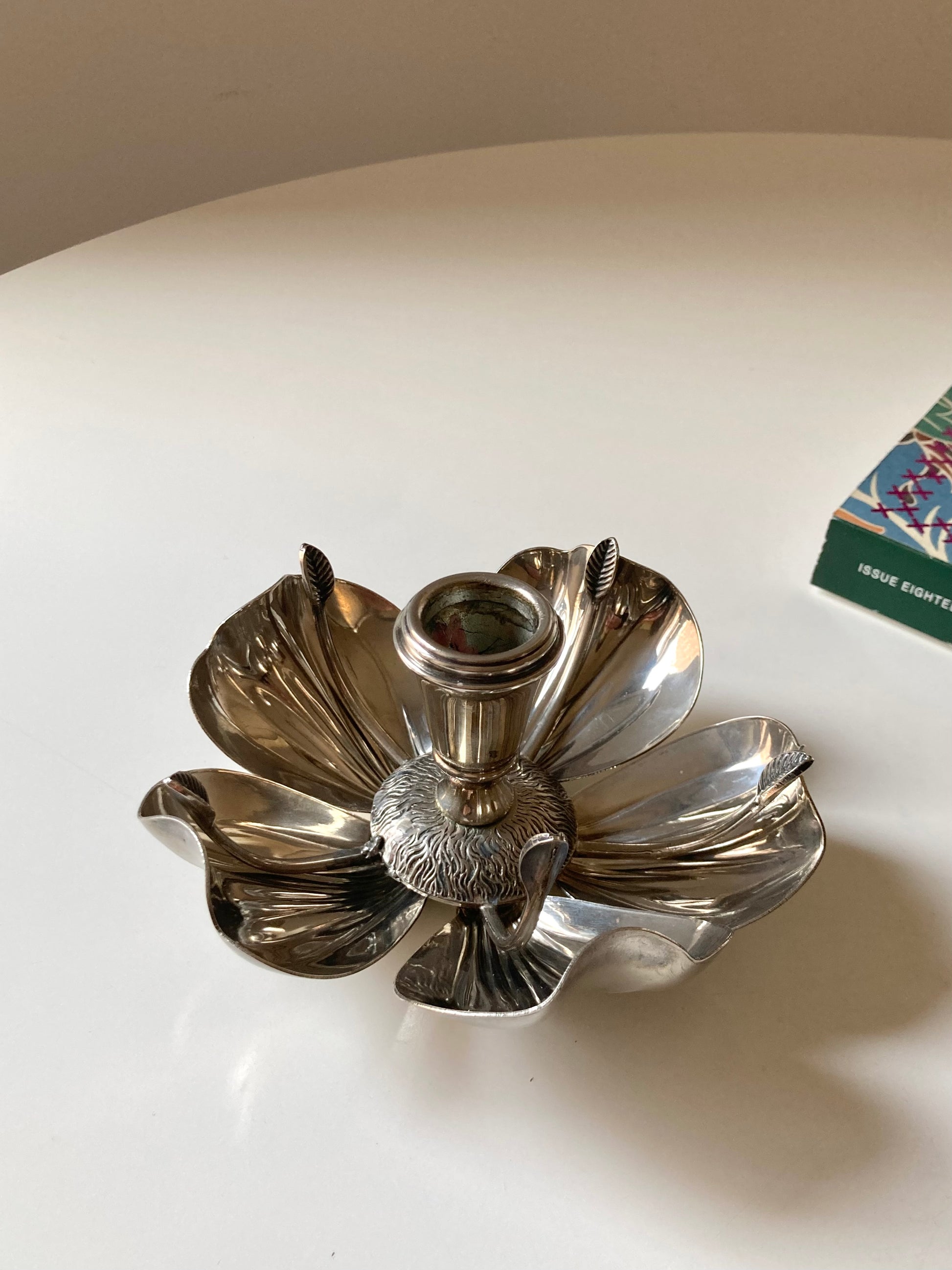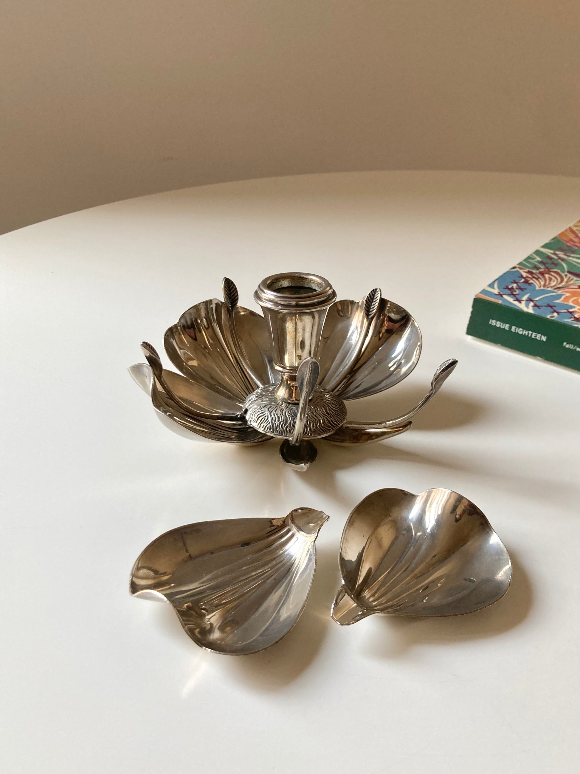 Portacandela a fiore vintage placcato argento con cinque posaceneri a forma di petalo 🌸🩶