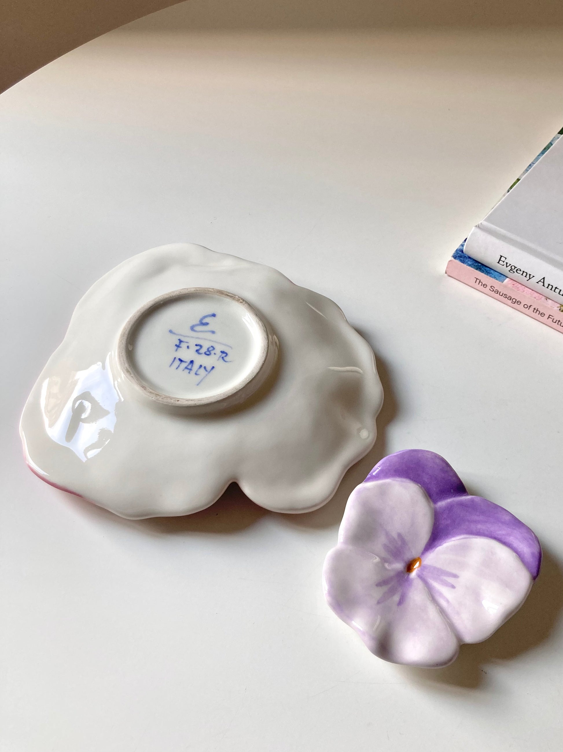 Piatti in ceramica Ernestine Salerno a forma di fiore dipinti a mano e firmati sul fondo 🌸