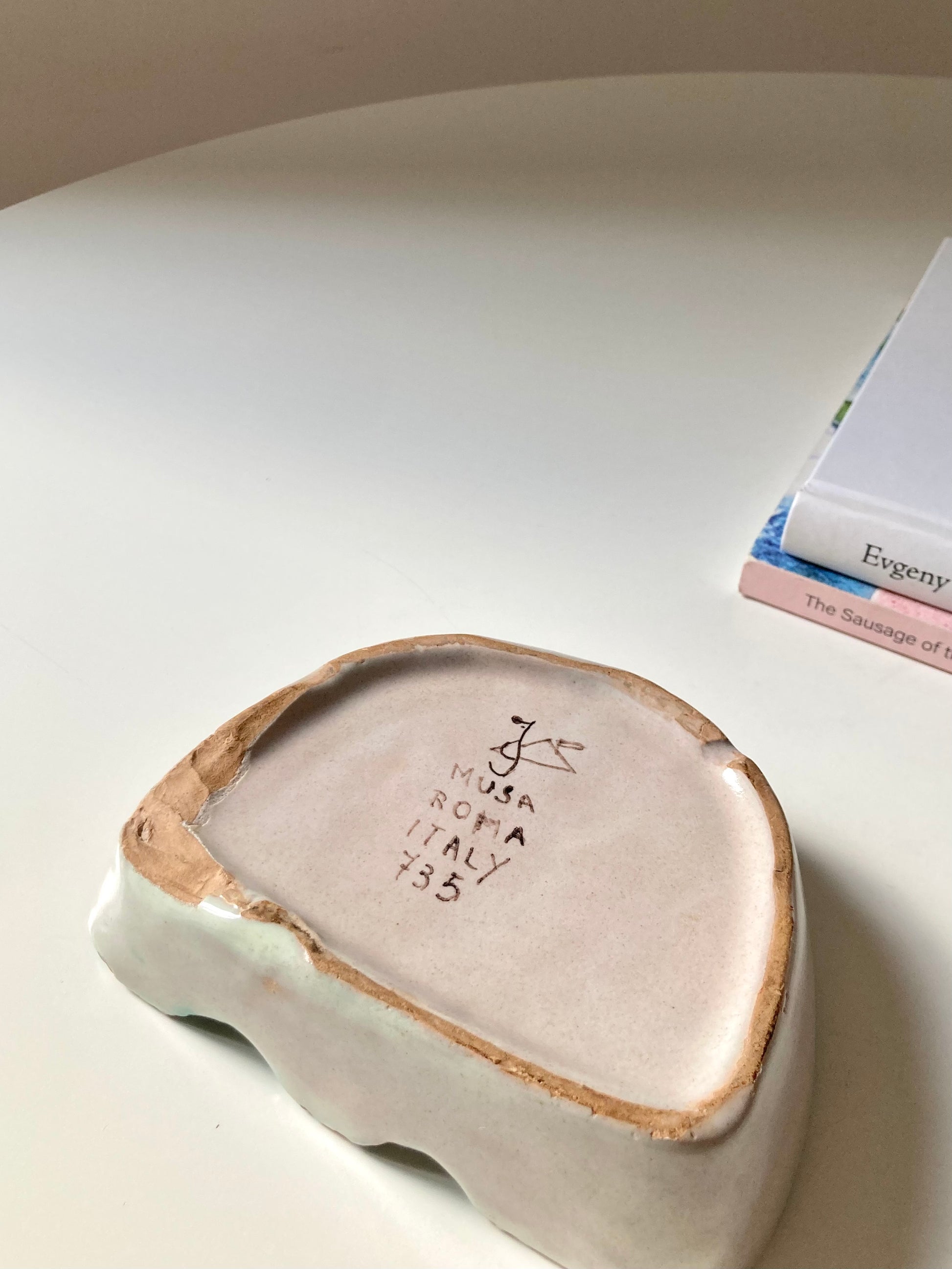 Posacenere realizzato e dipinto a mano con curioso disegno di veliero e testa di cavallo firmato Musa Roma Italy sul fondo ⛵️🐴