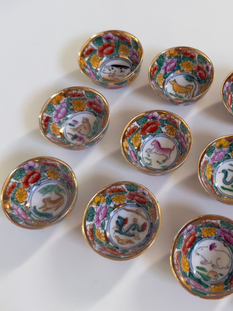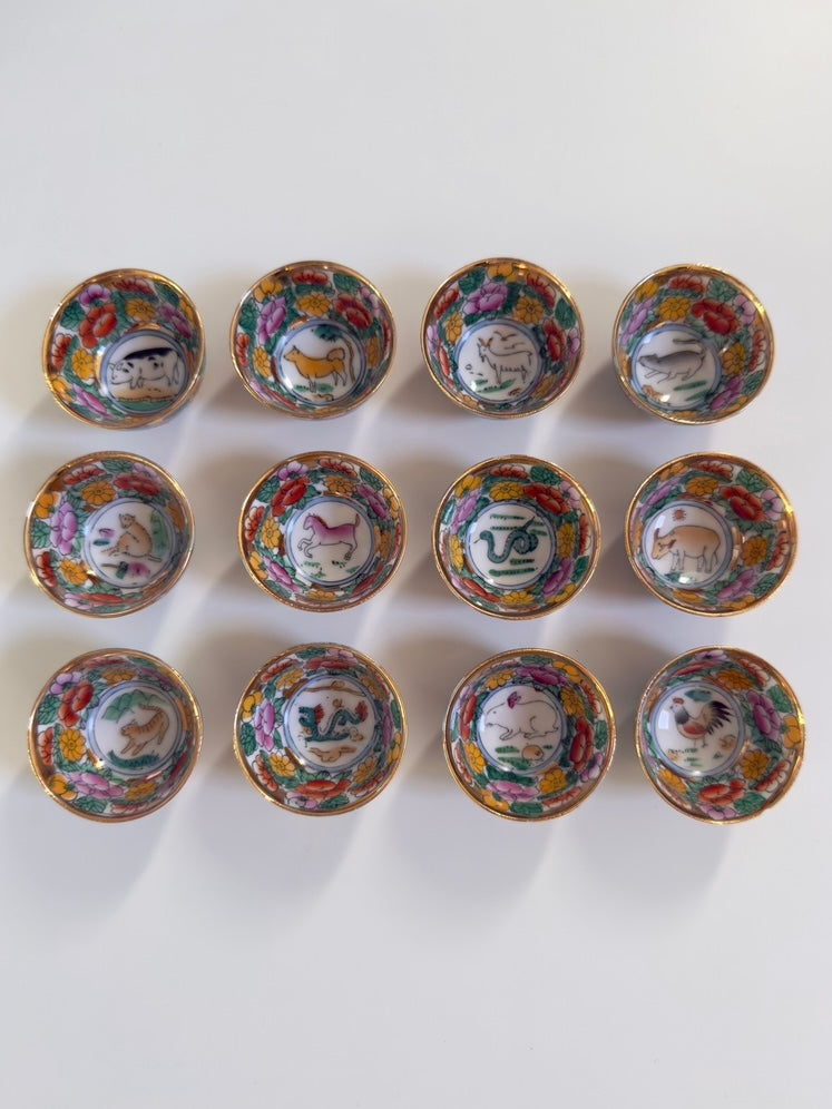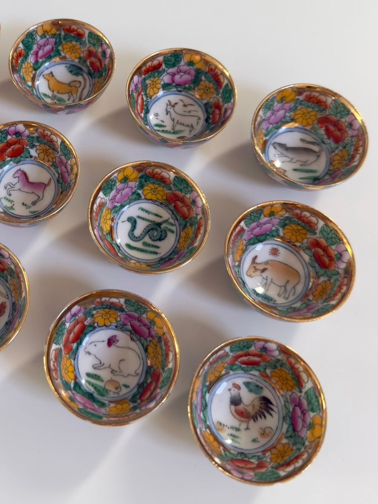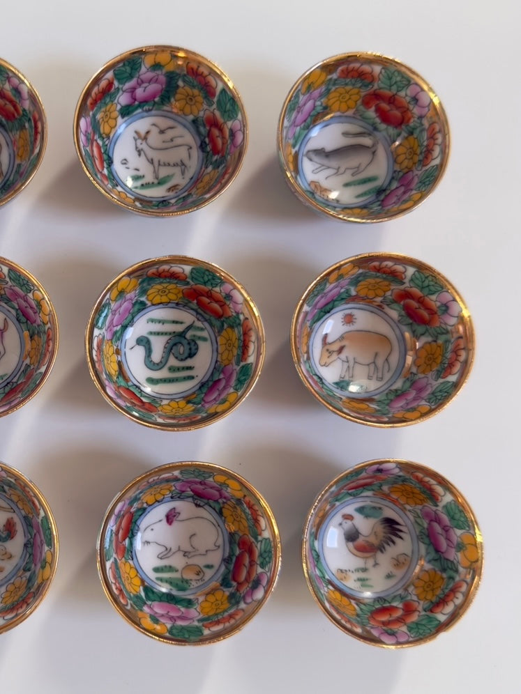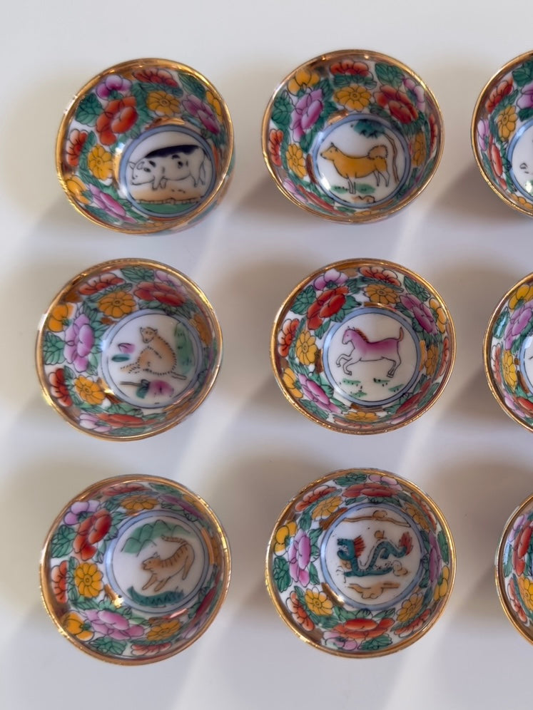 Servizio completo di 12 preziose tazzine da sakè in porcellana decorate a mano con gli animali dell’oroscopo cinese 🐉