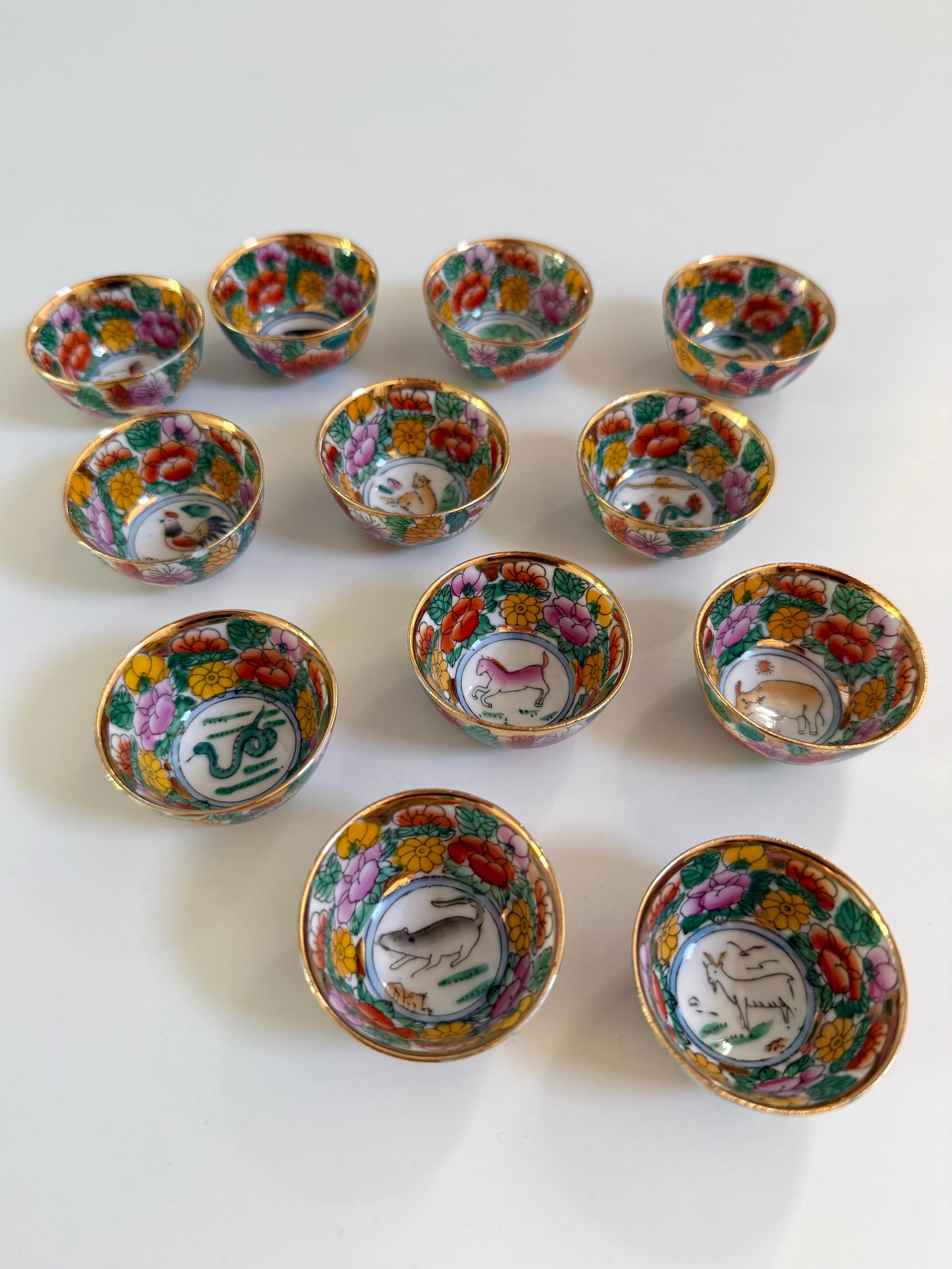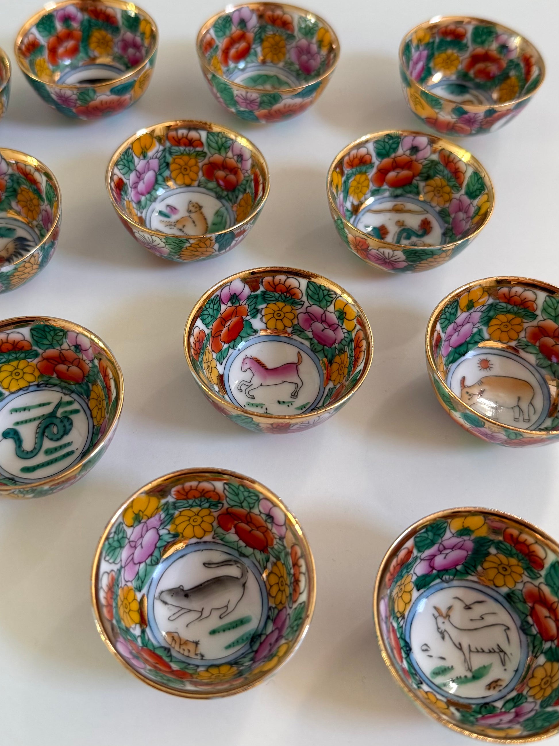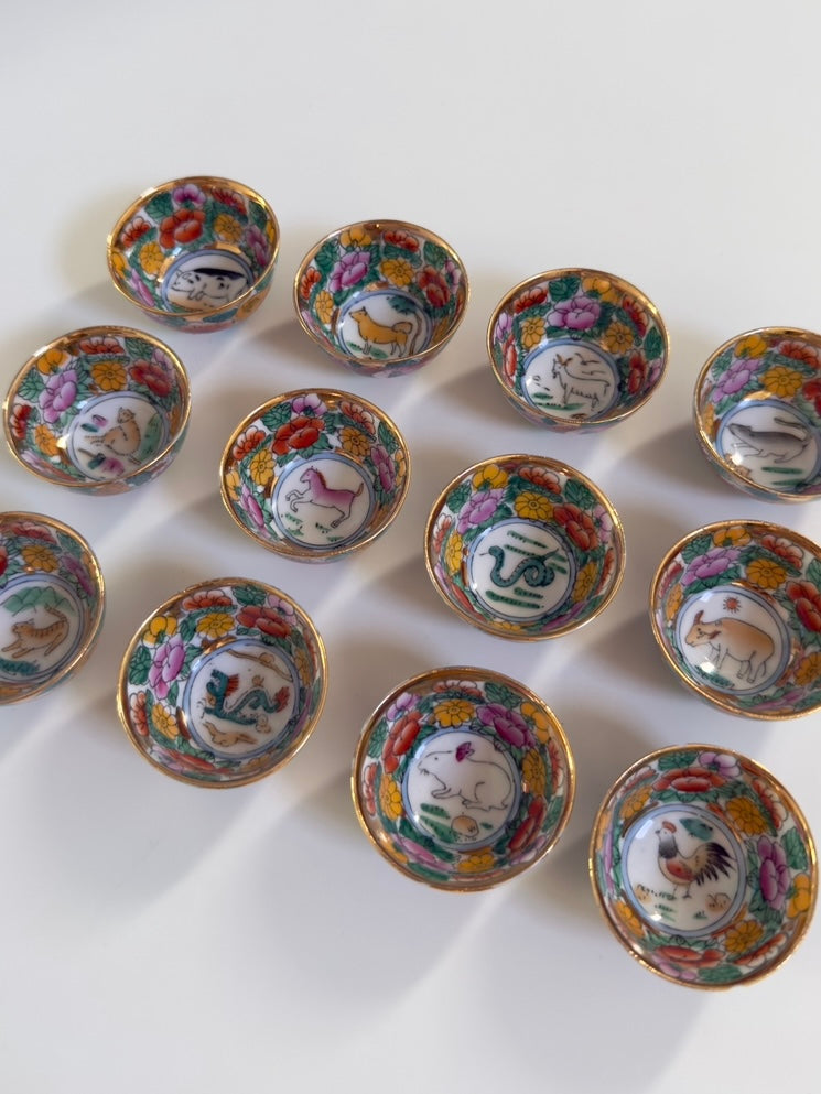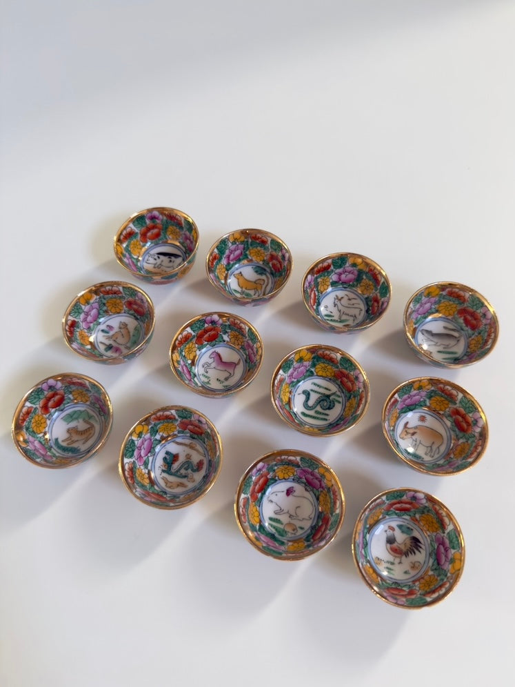 Servizio completo di 12 preziose tazzine da sakè in porcellana decorate a mano con gli animali dell’oroscopo cinese 🐉