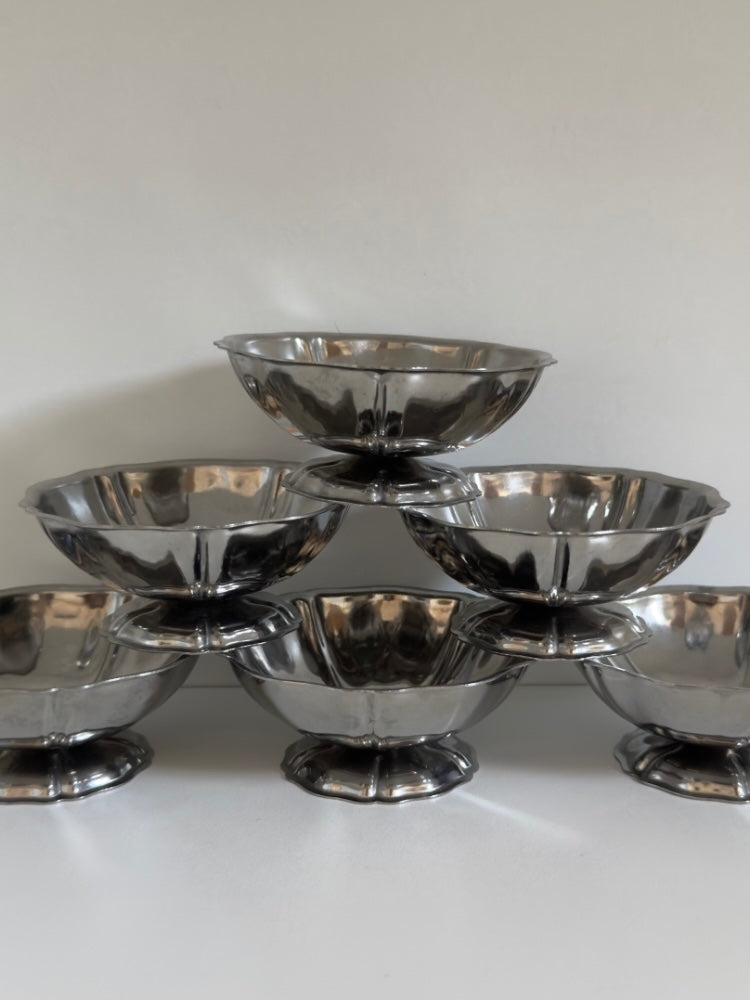 Set di 6 coppette francesi in metallo con piattini abbinati da utilizzare anche come sottobicchieri 🩶