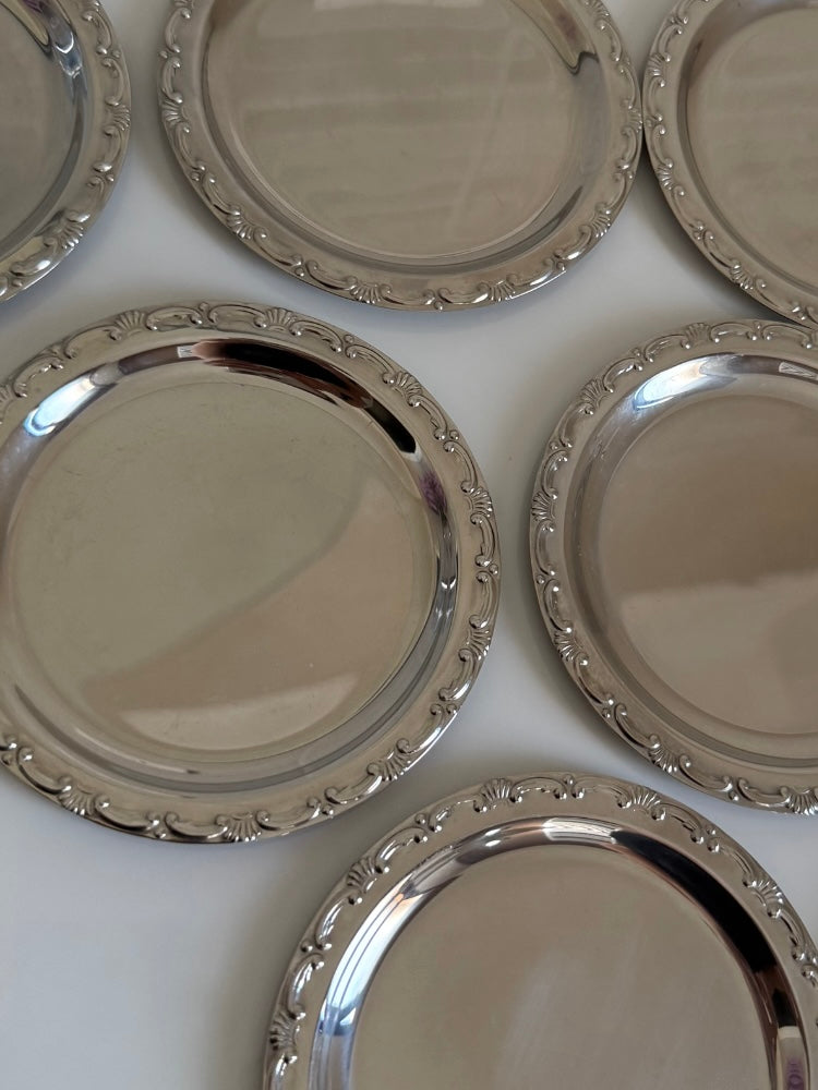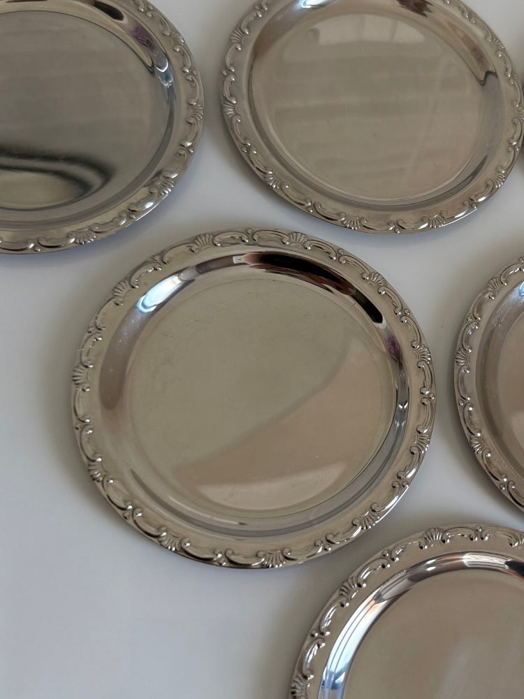 Set di sottobicchieri vintage in acciaio decorati con piccole conchiglie in rilievo su tutto il bordo 🐚