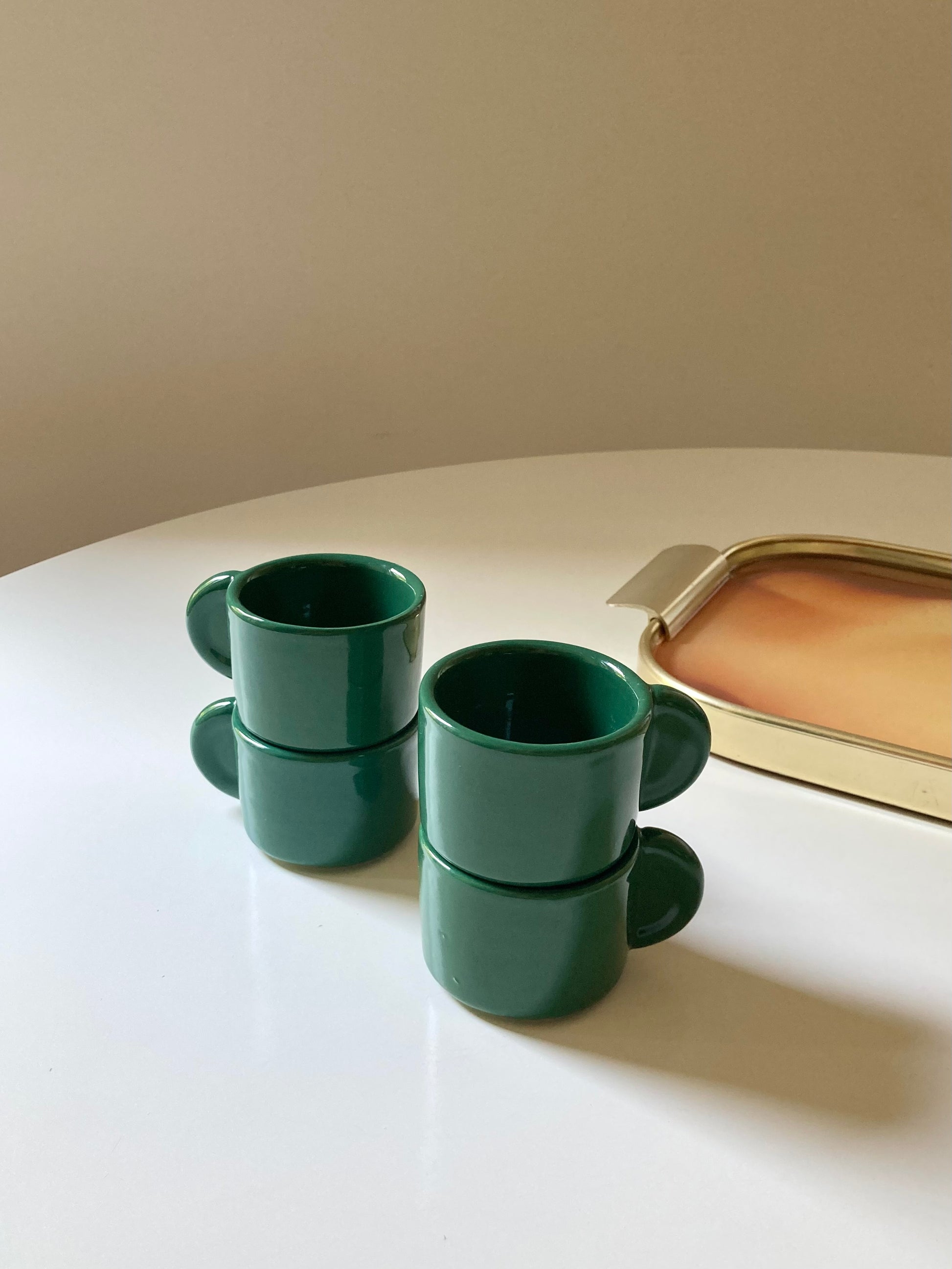 Set di 4 tazzine da caffè impilabili vintage fine anni ‘60 in ceramica smaltata colore verde bosco 🫒🫒