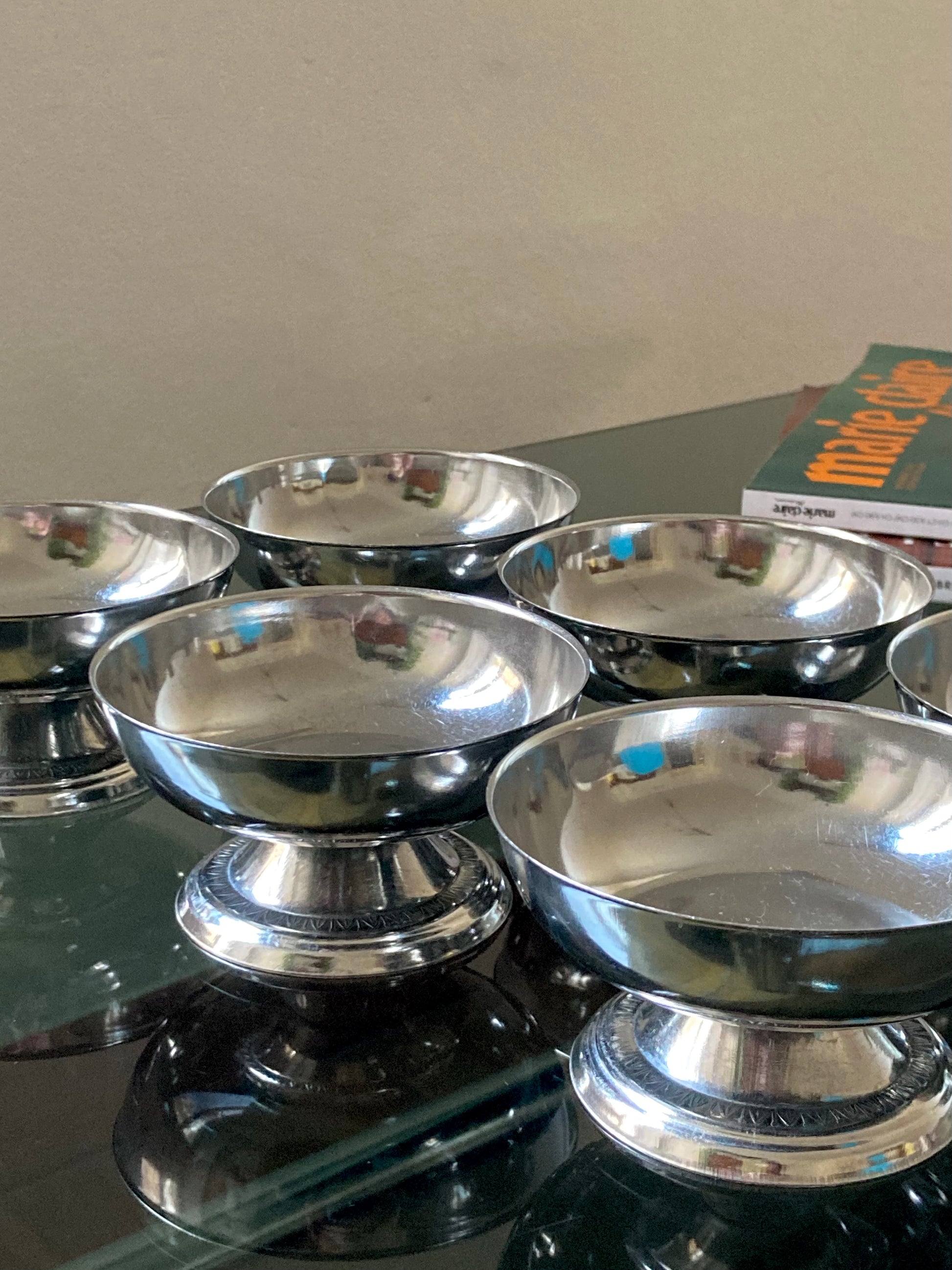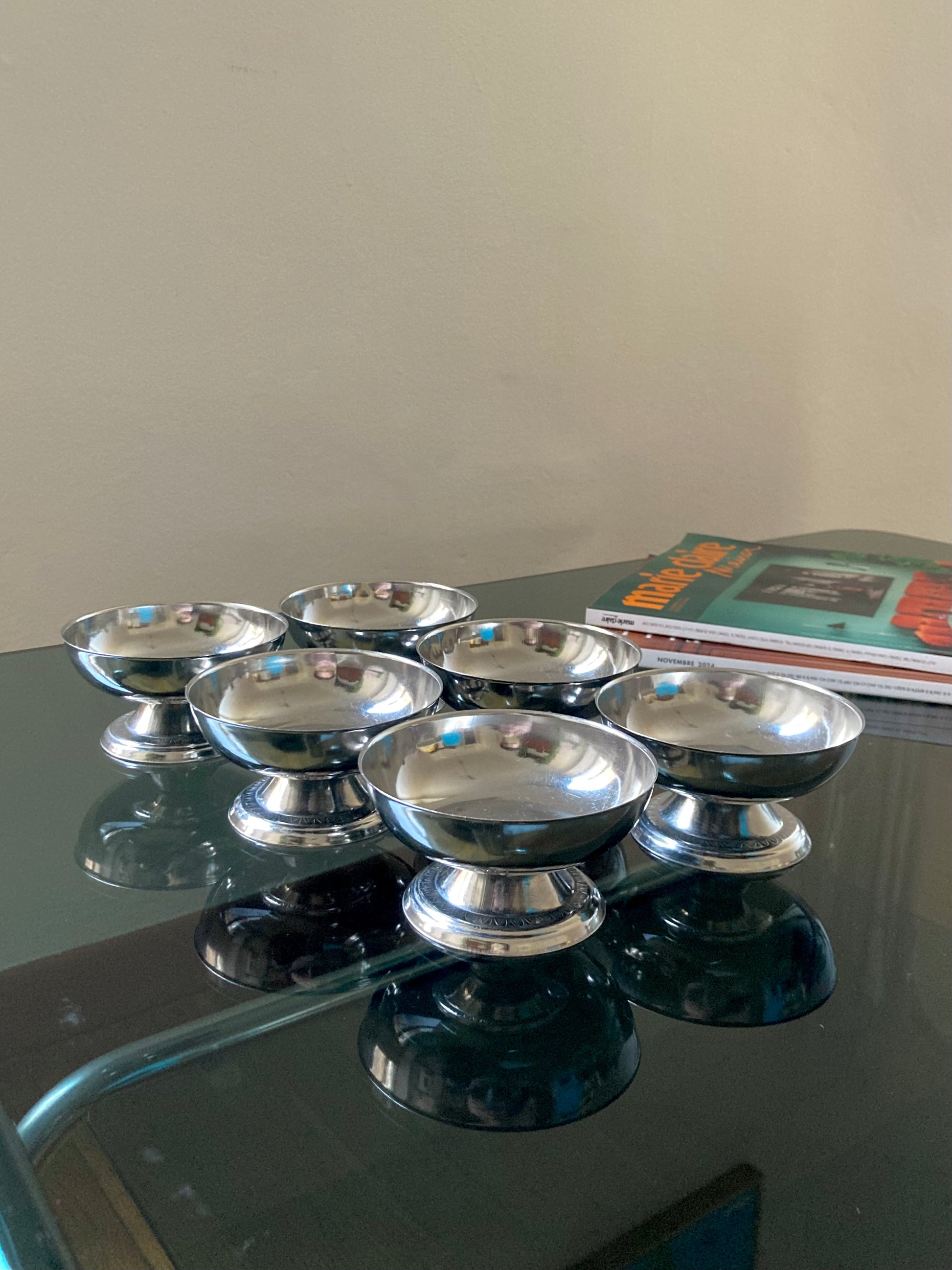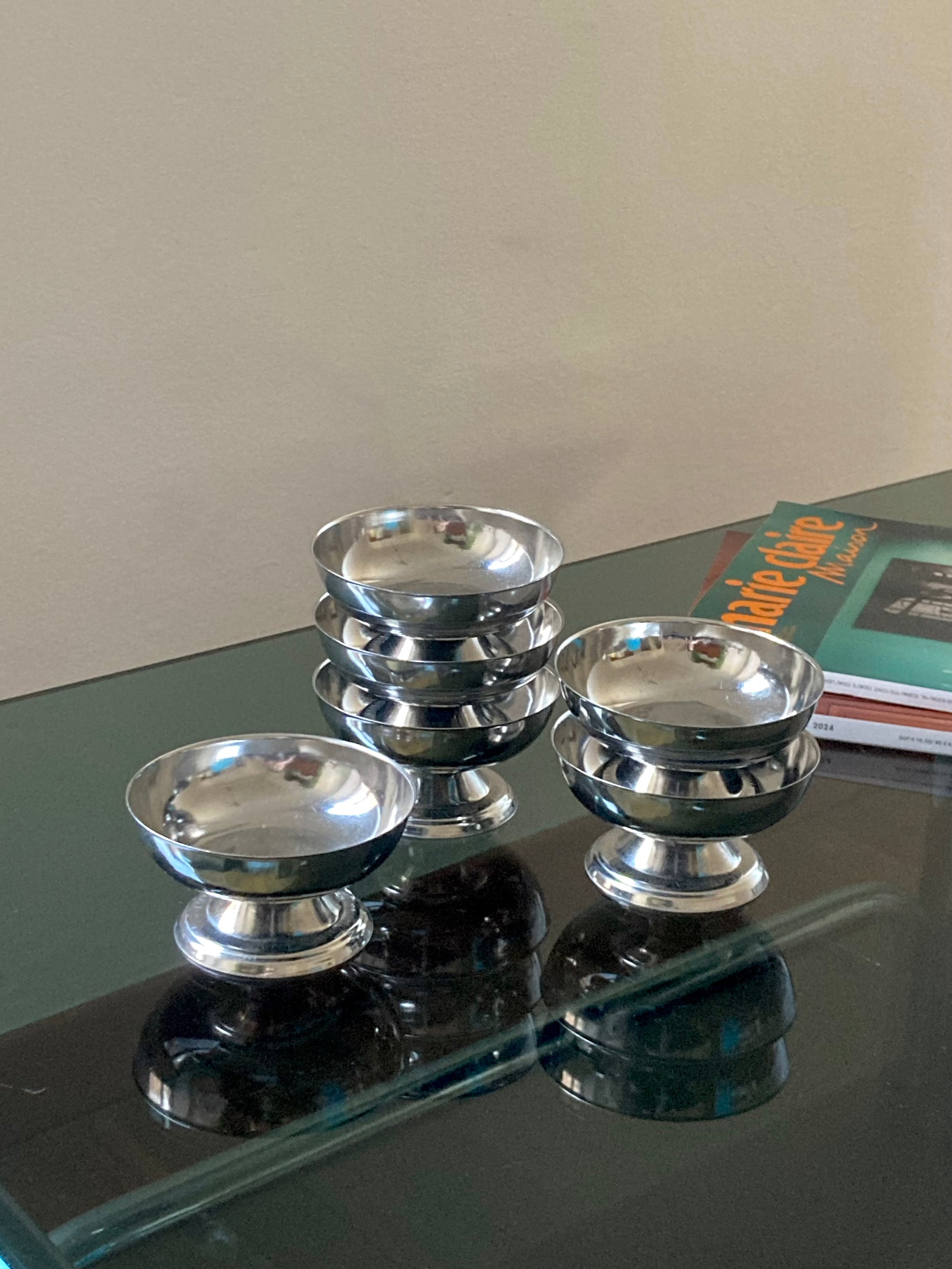 Set 6 coppette basse vintage in acciaio