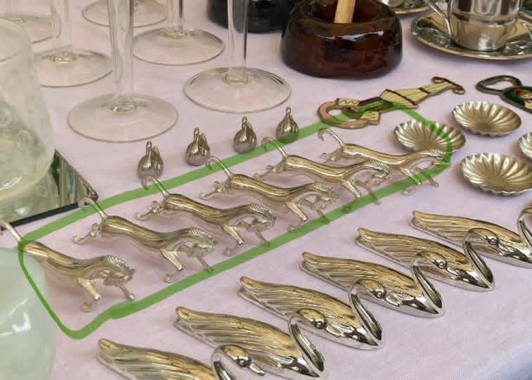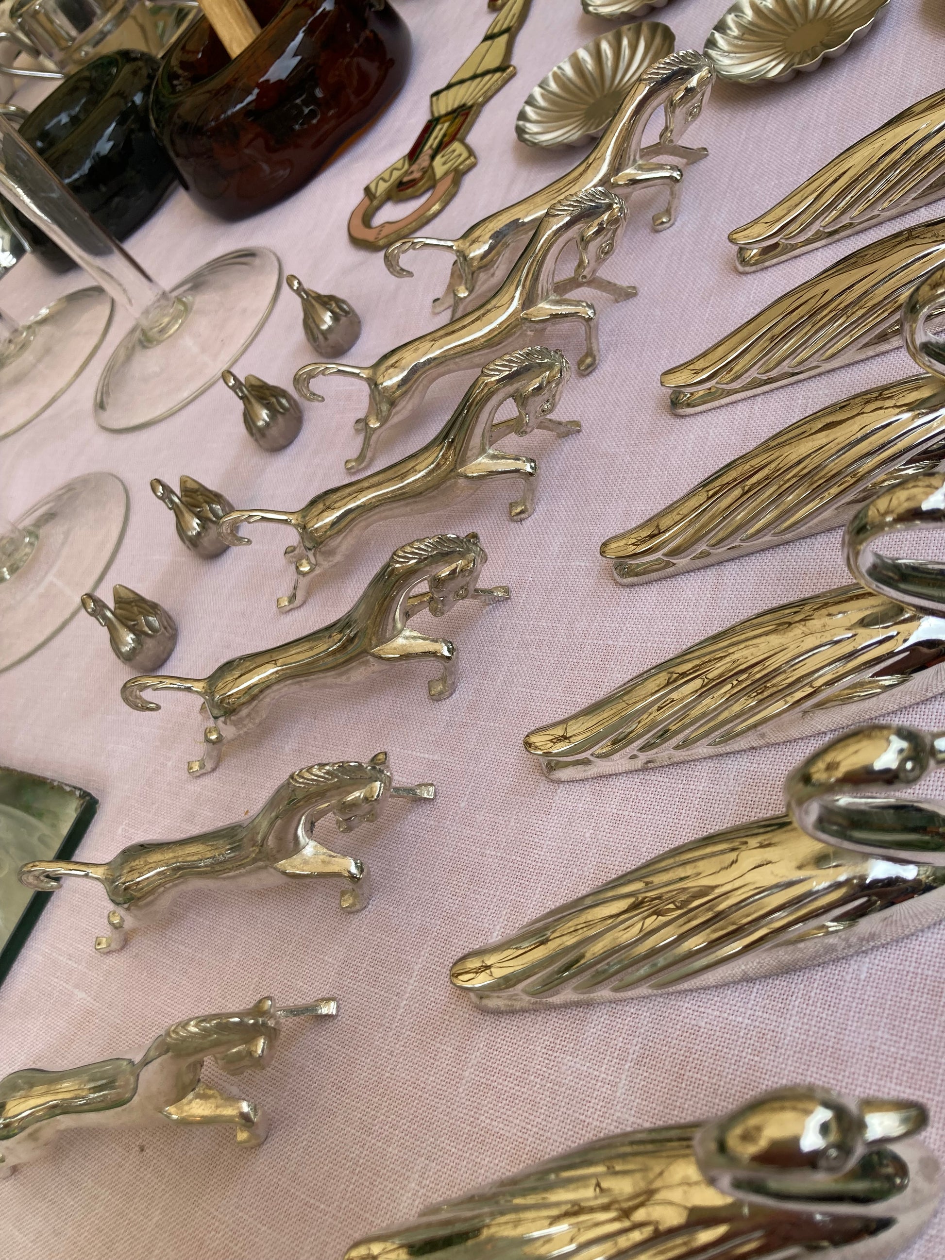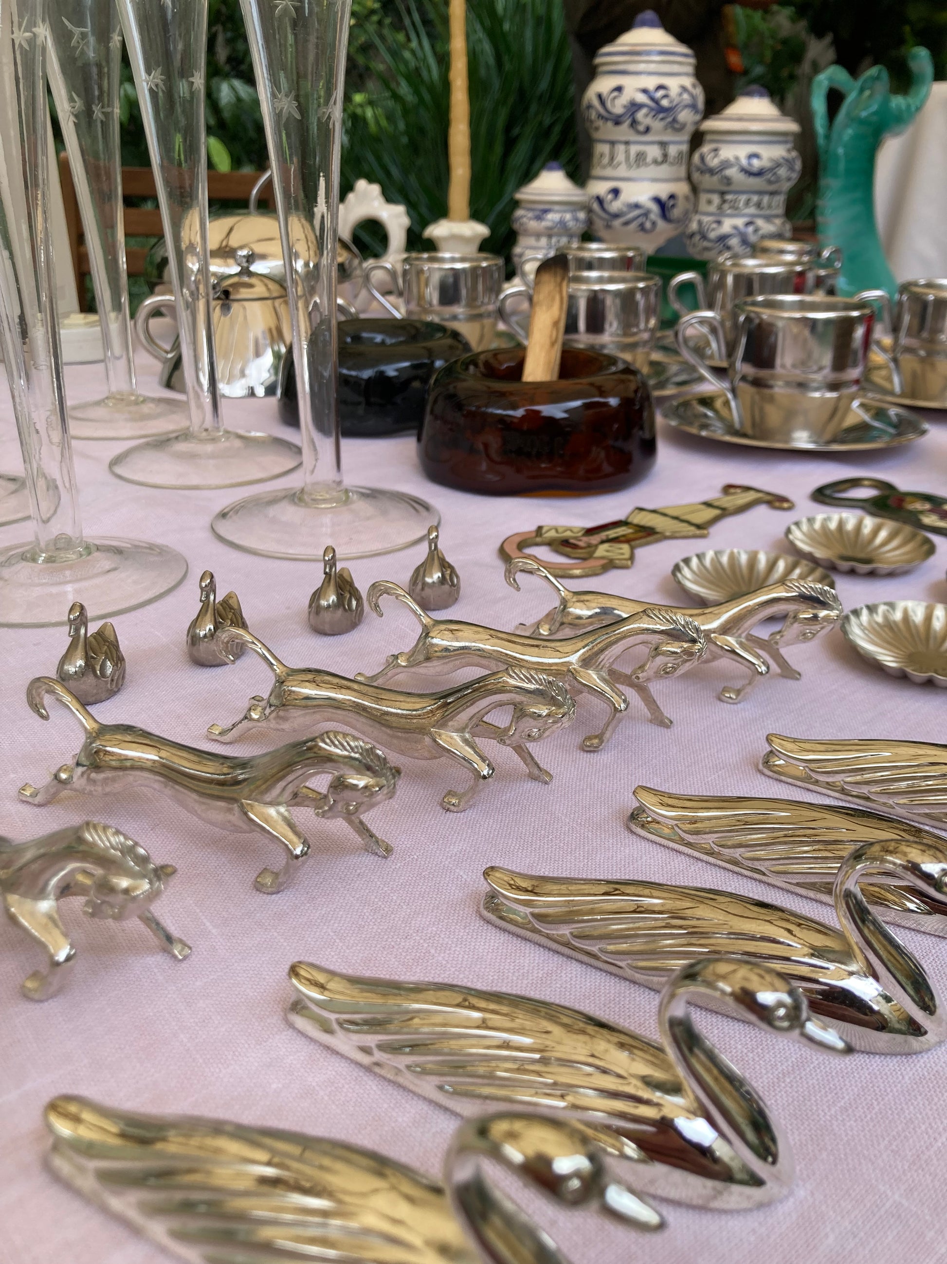 Set di 6 poggia posate vintage in metallo a forma di cavallini con ancora la scatola originale