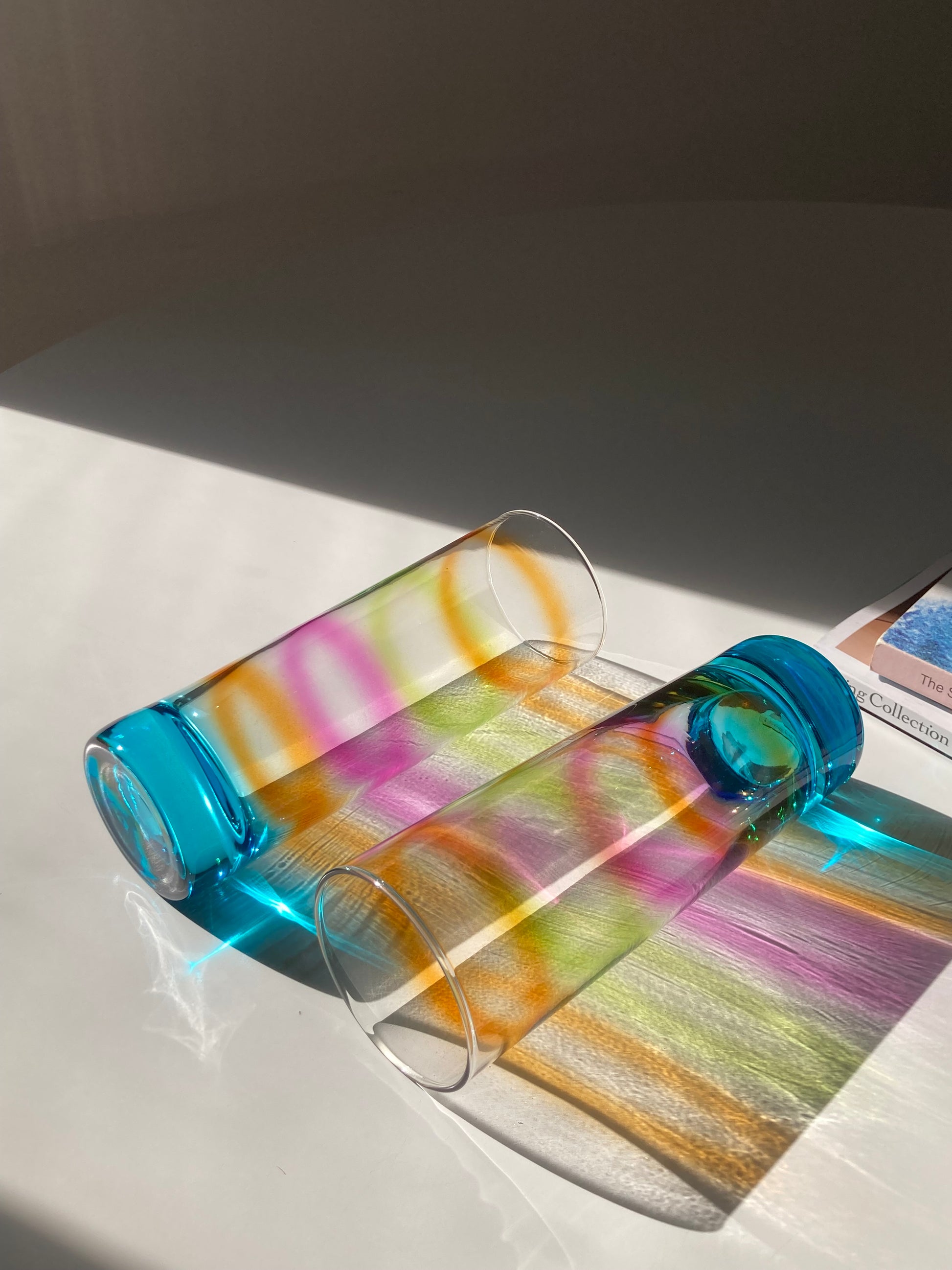 Set di 4 bicchieri da bibita alti colorati con base in vetro blu 🫐🍒