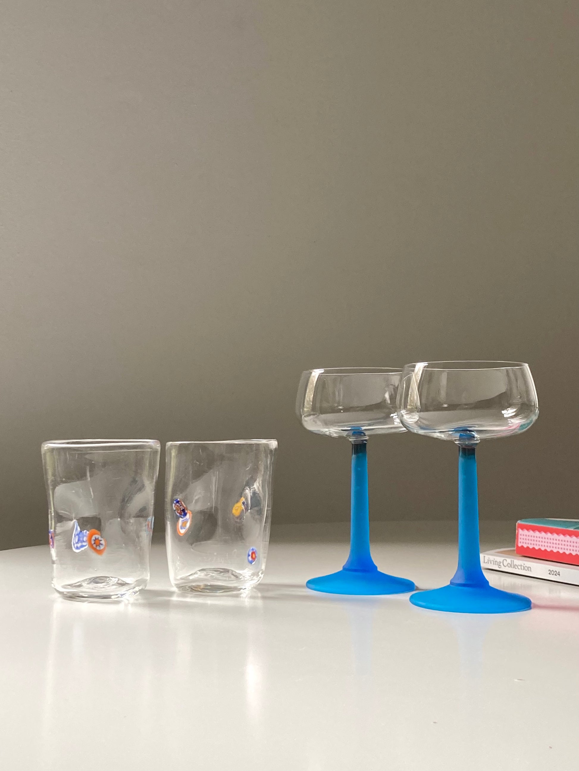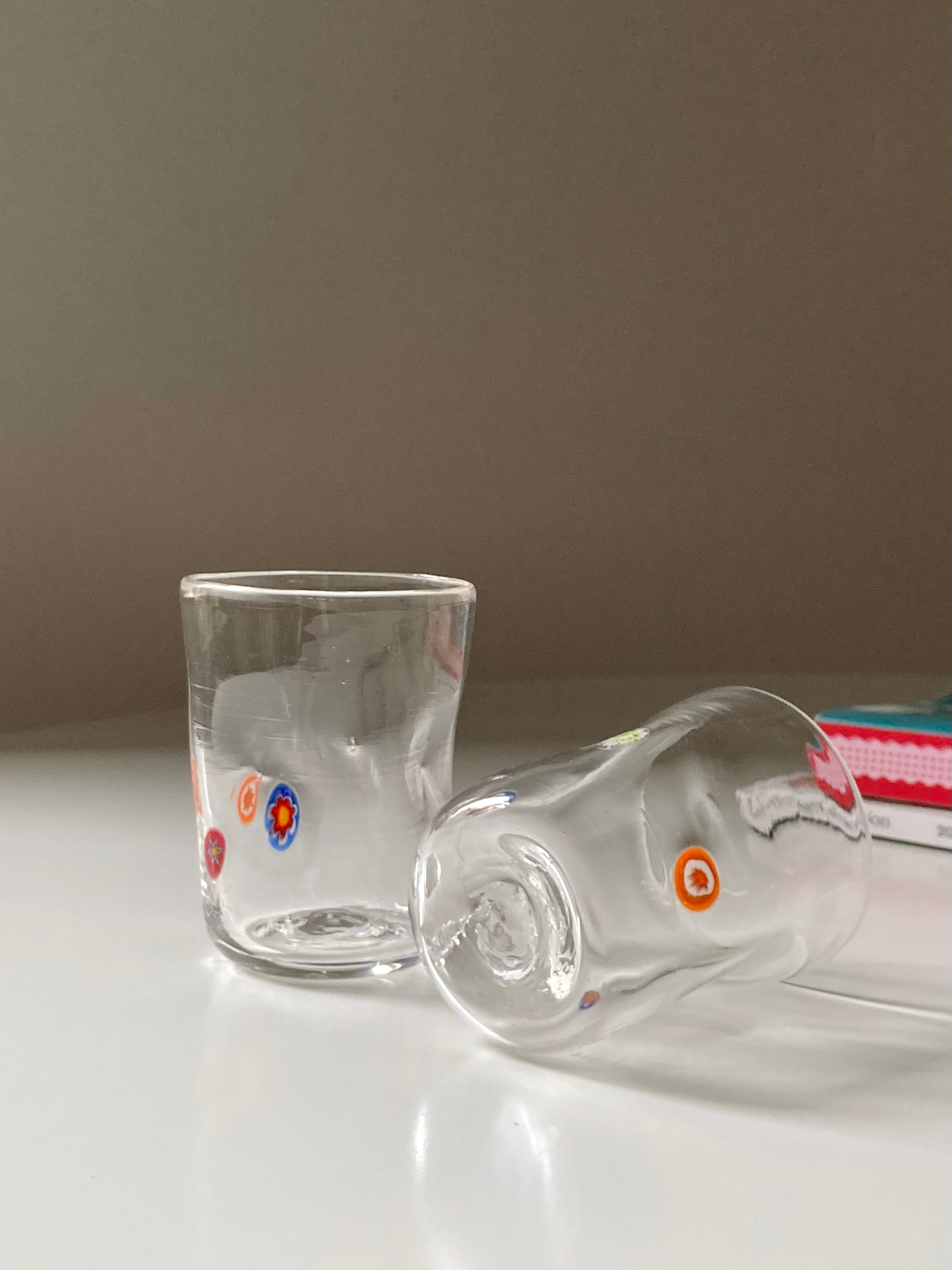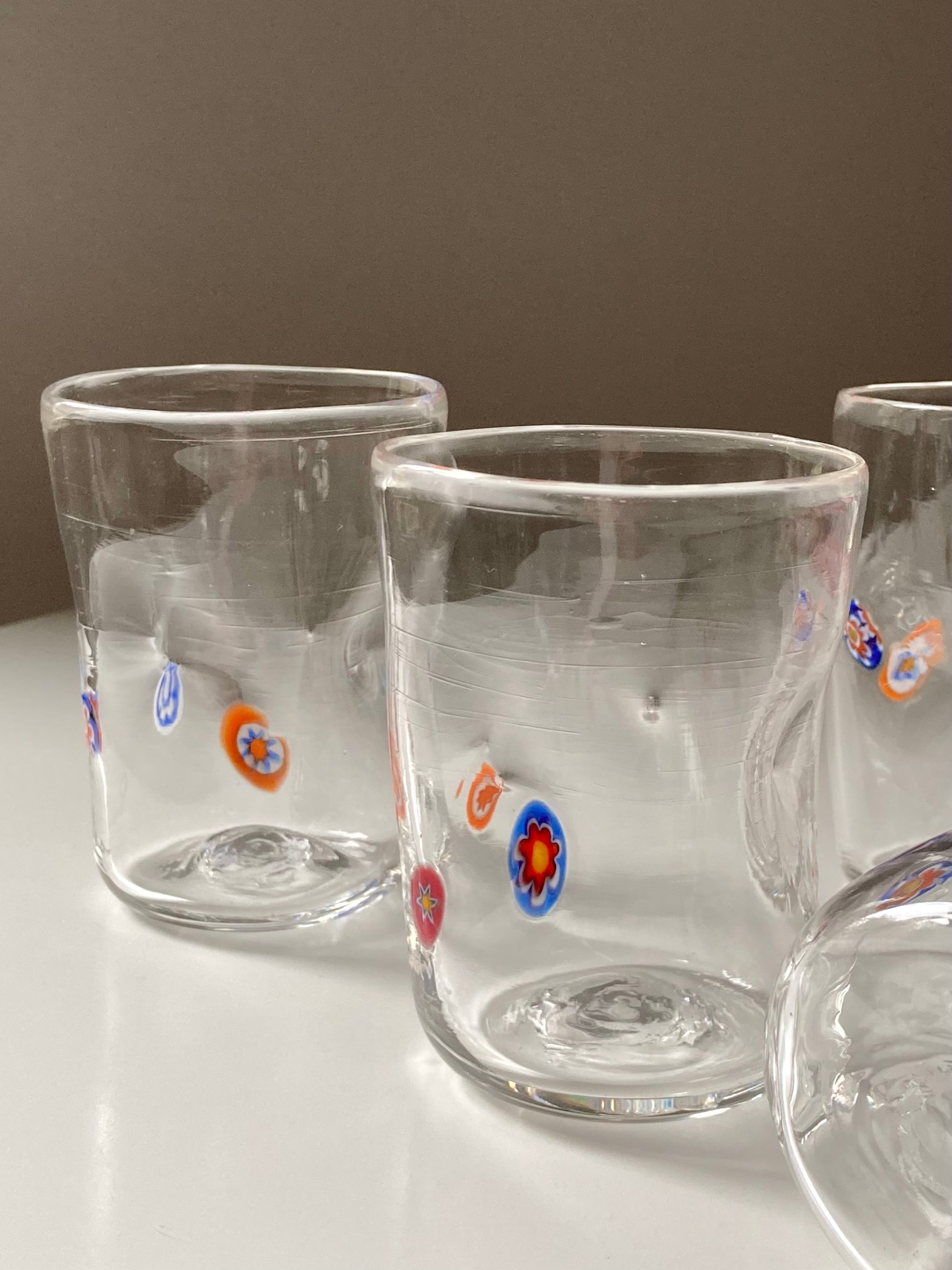 Set di 4 bicchieri in vetro di Murano realizzati a mano con piccole murrine colorate a forma di fiorellino 🌸🧡