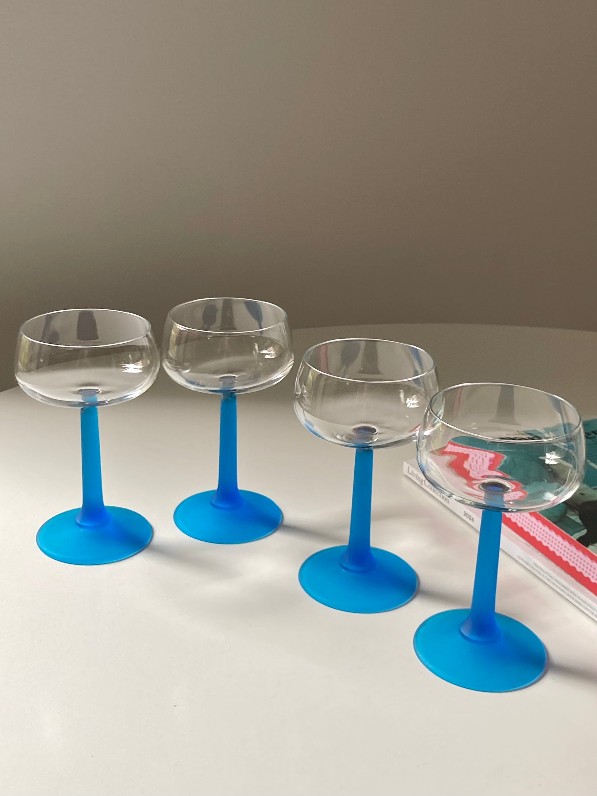 Set di 4 calici vintage con stelo blu in vetro satinato 💙