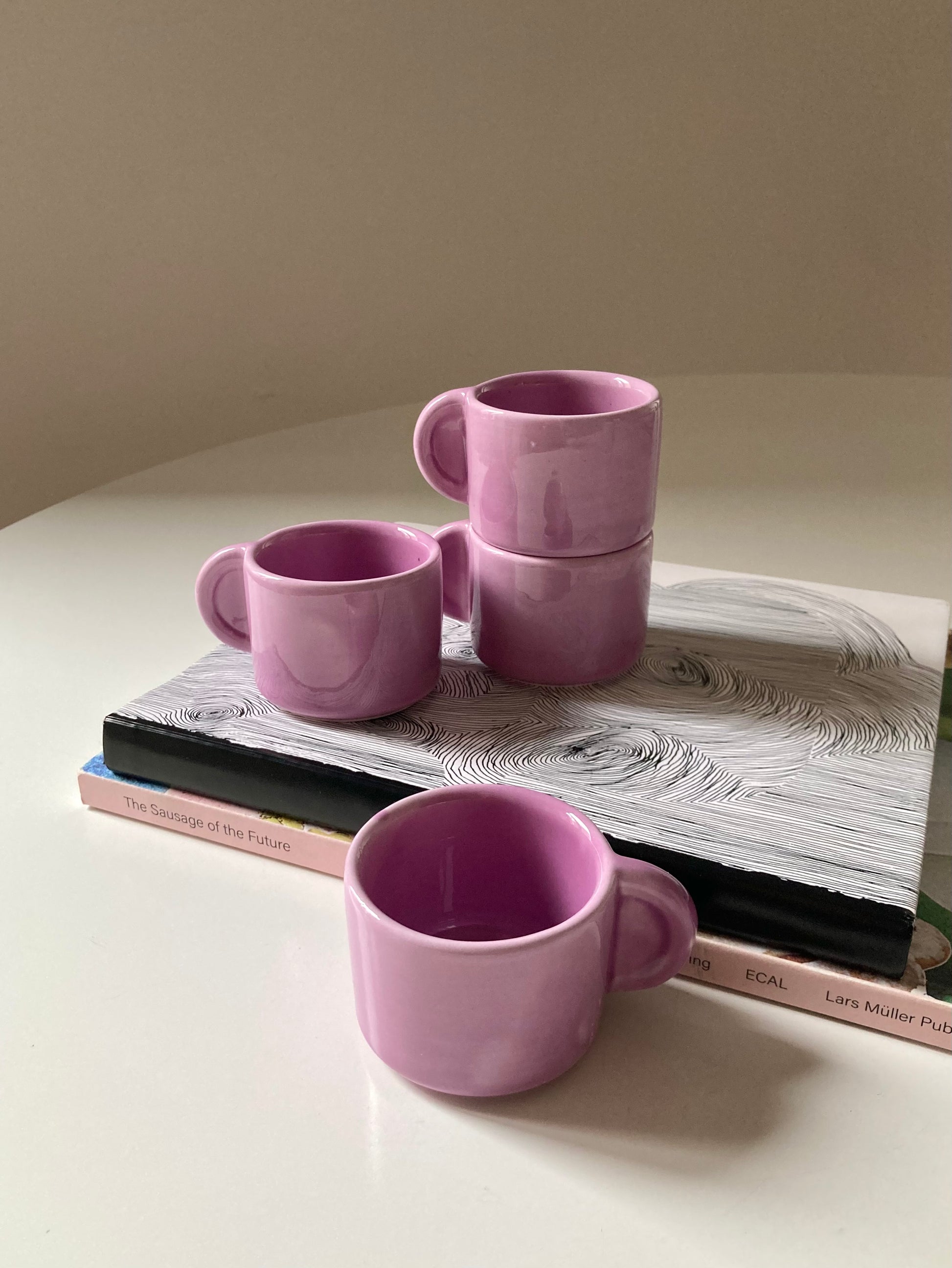 Set di 4 tazzine da caffè impilabili vintage Gabbianelli in ceramica smaltata e con marchio originale ‘G Italy’ impresso in rilievo sul fondo che attesta il periodo di produzione fra il 1968 e il 1976 🟣