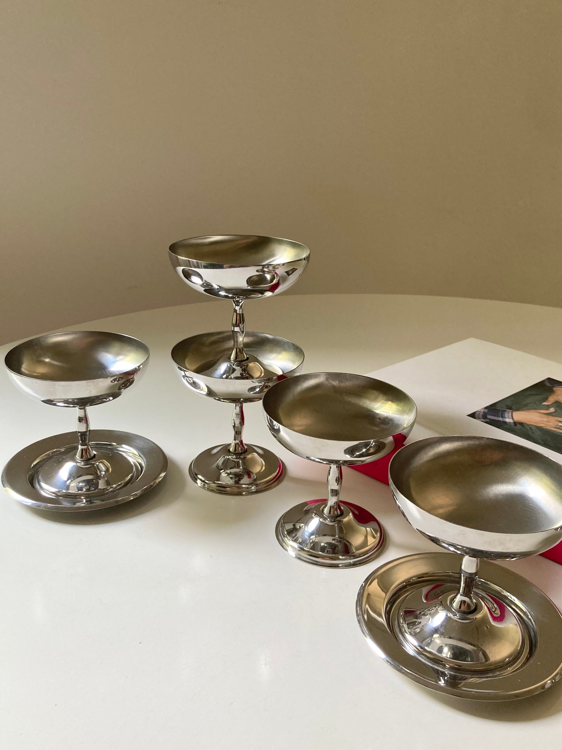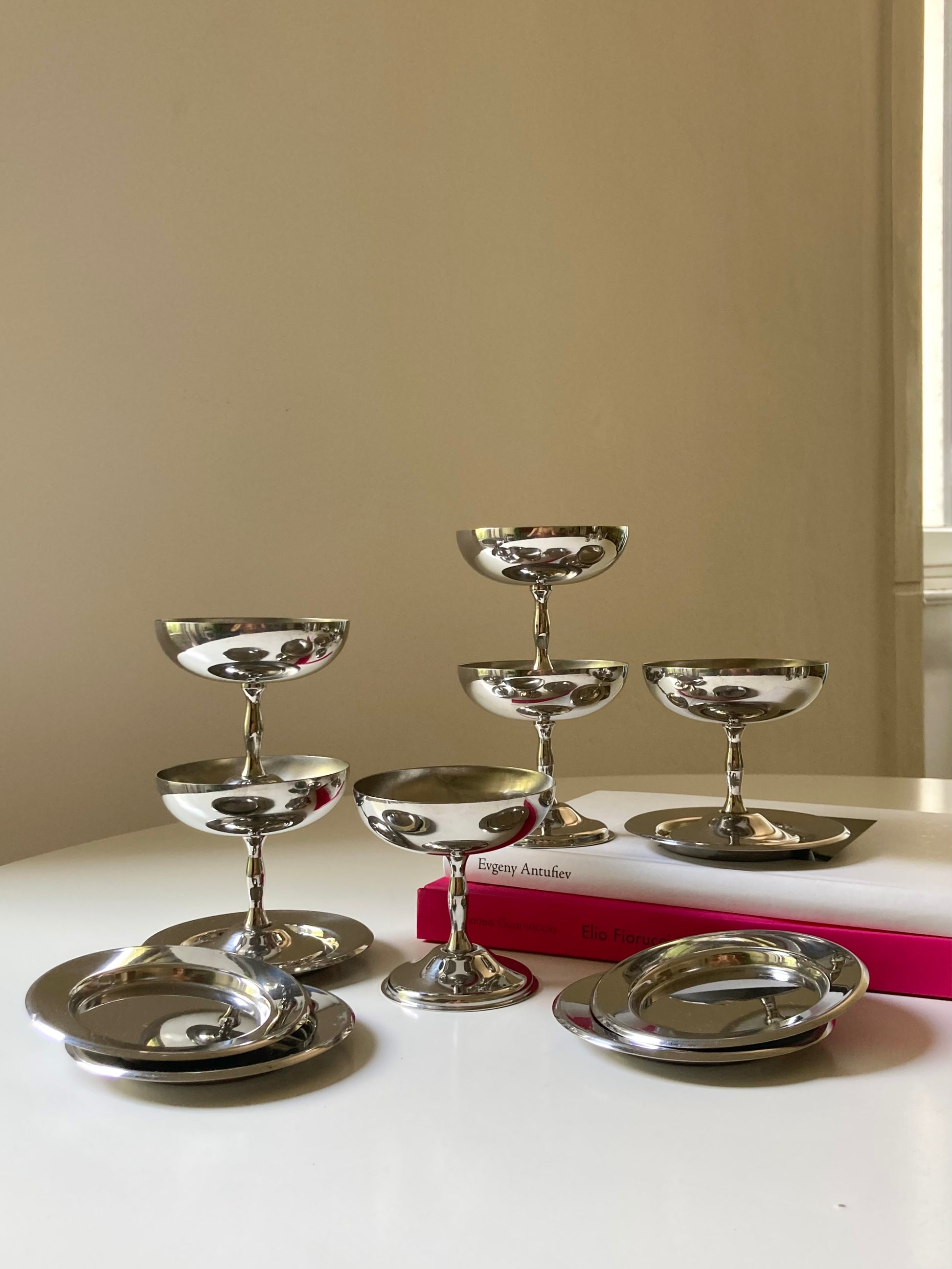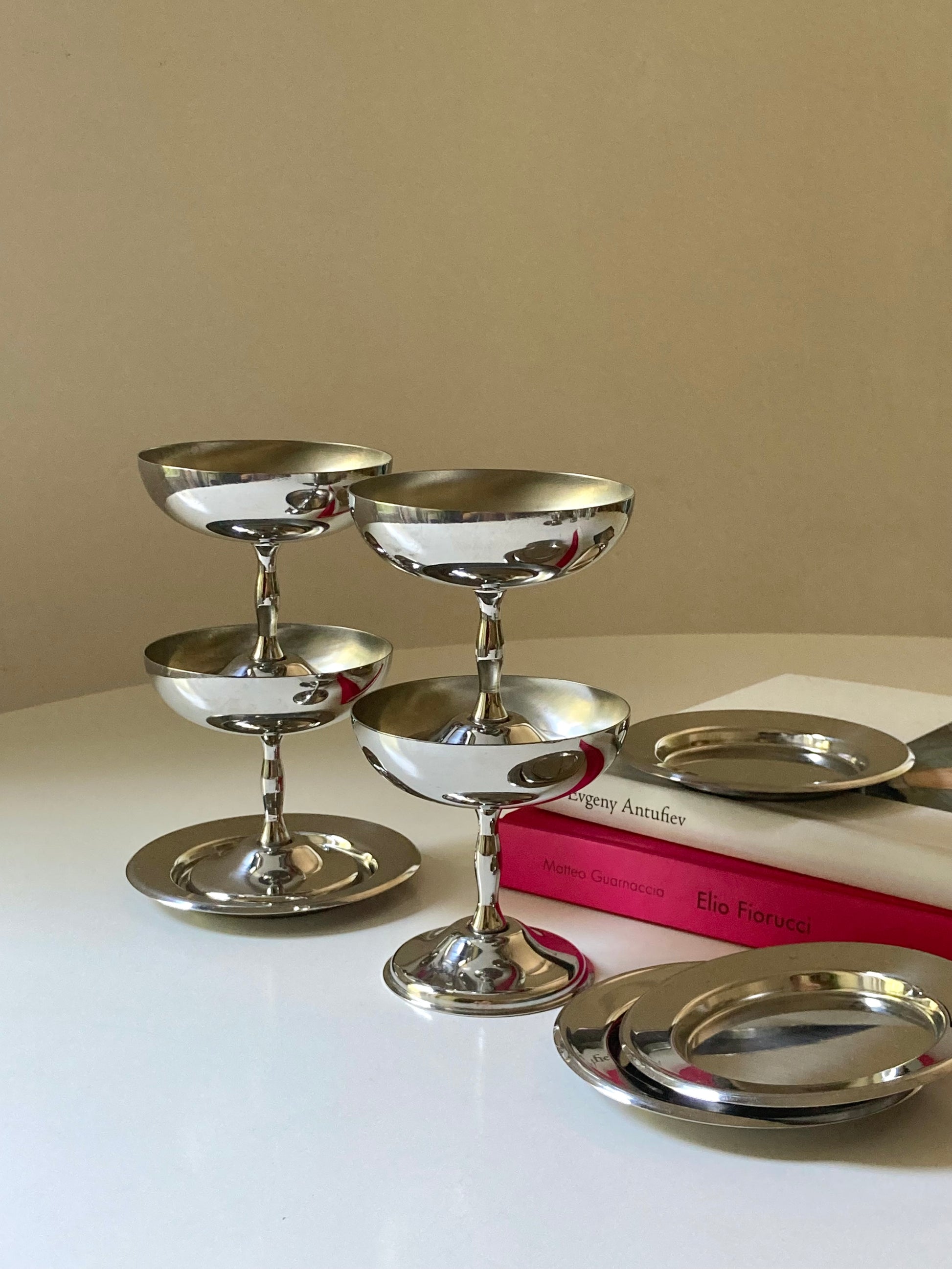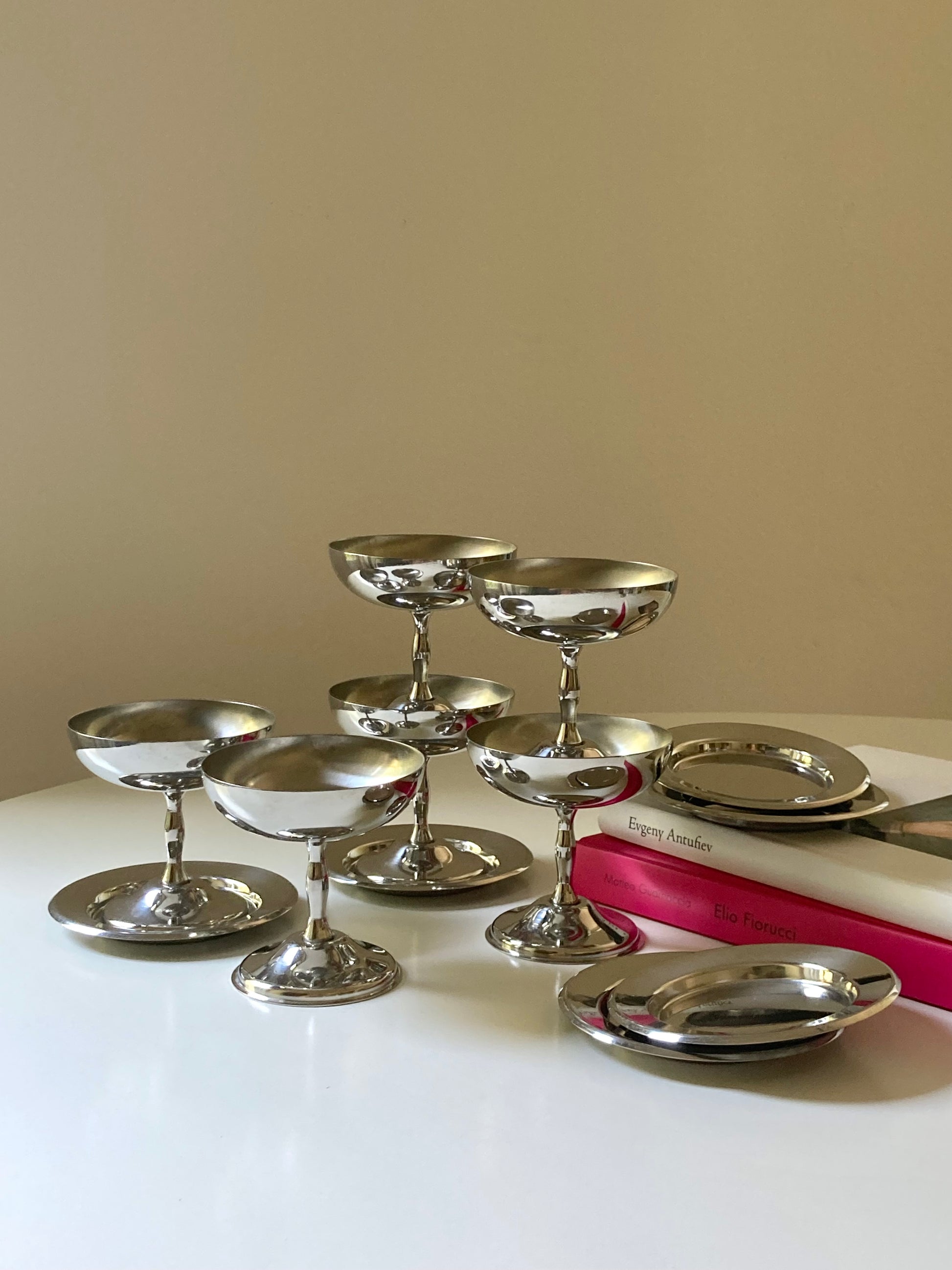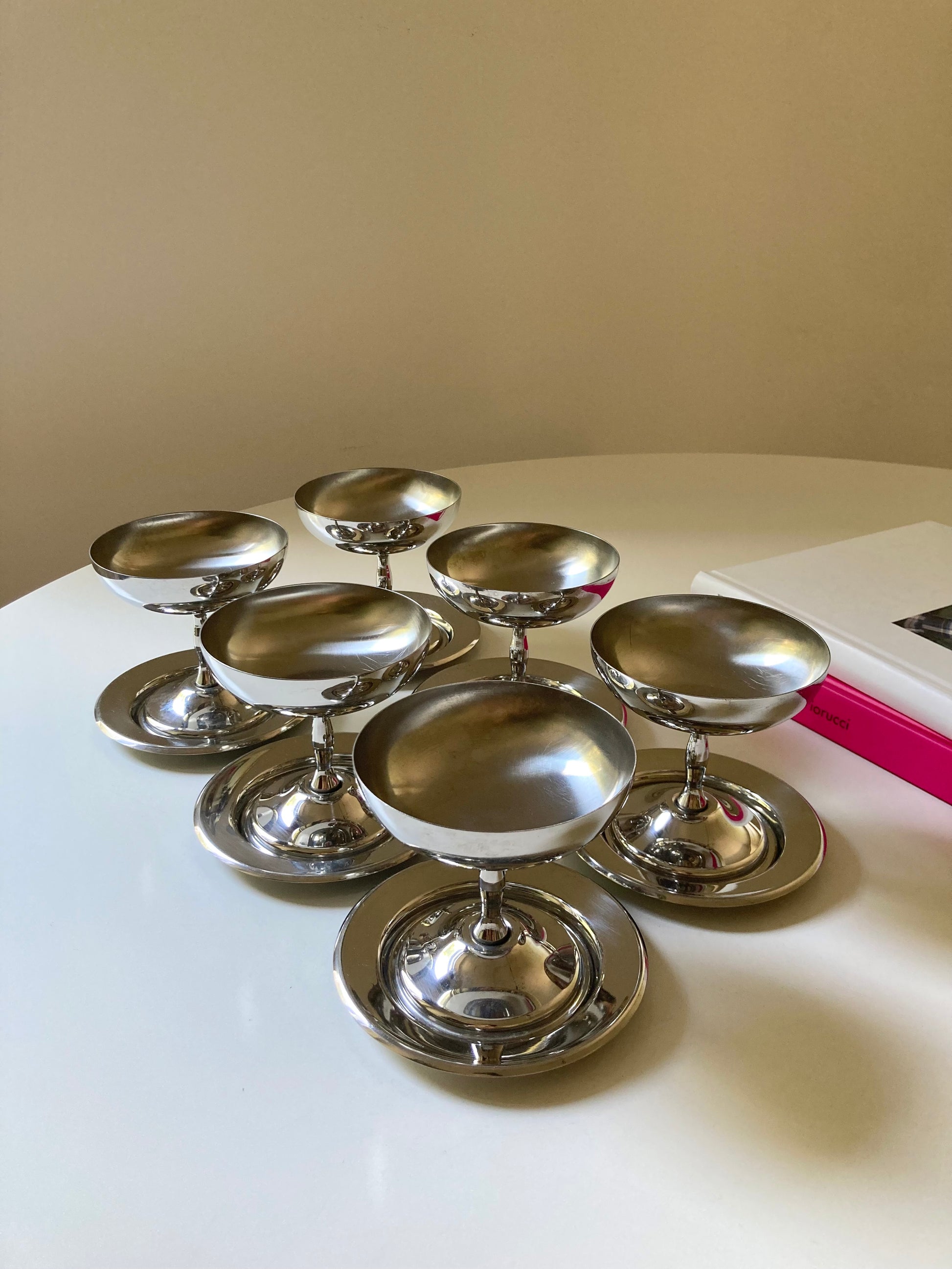 Set completo di 6 coppe da dessert in acciaio con piattini