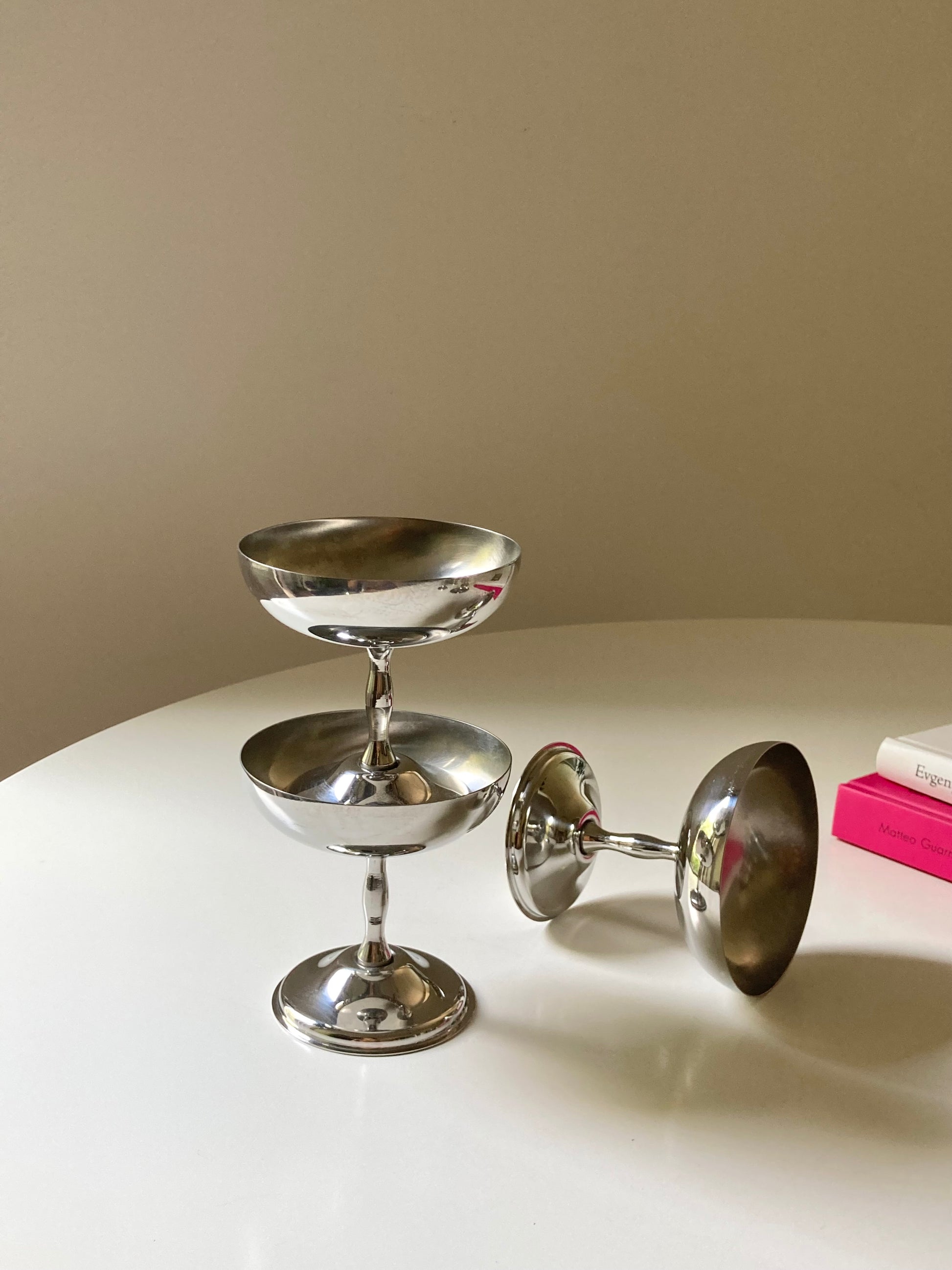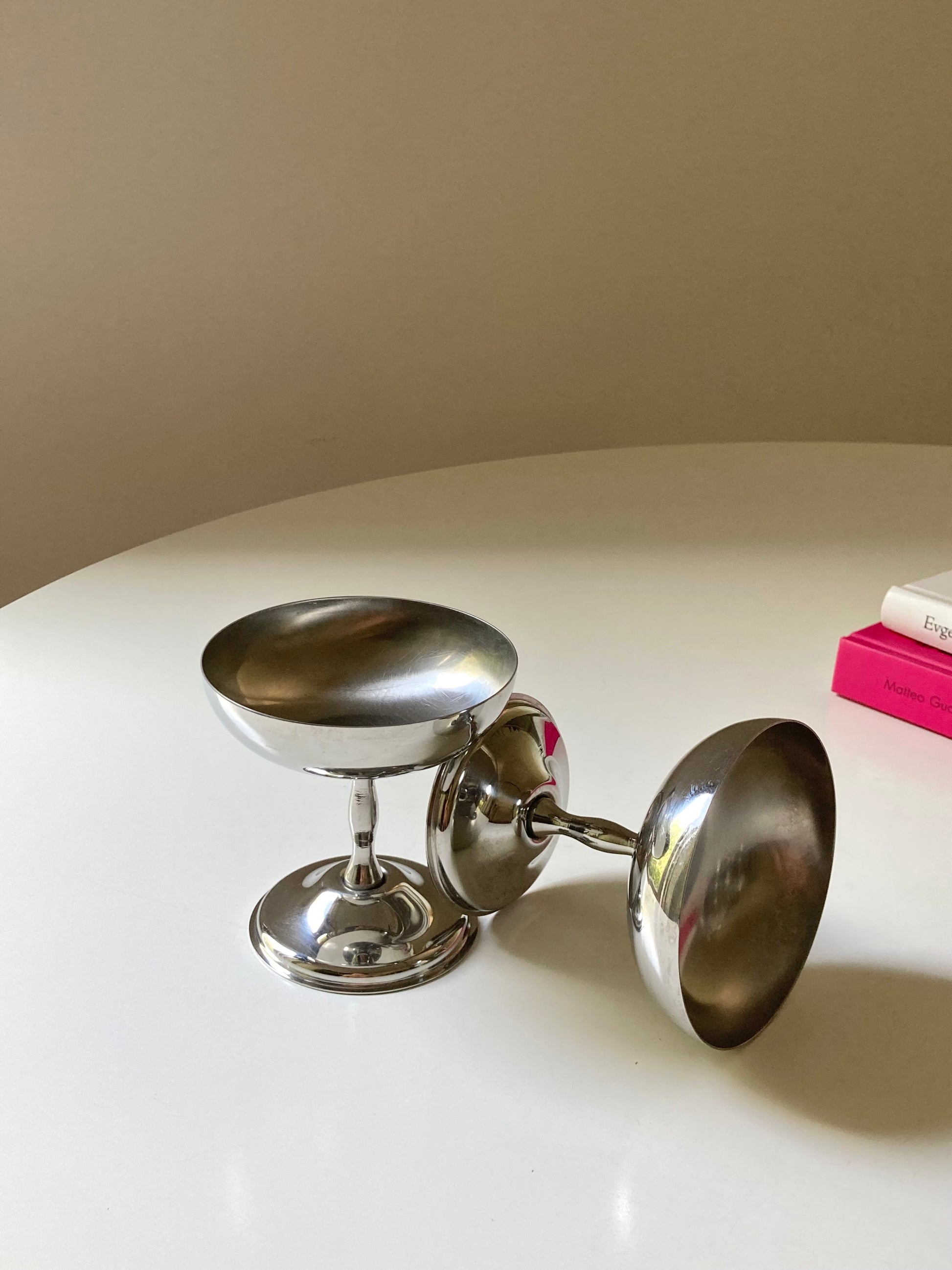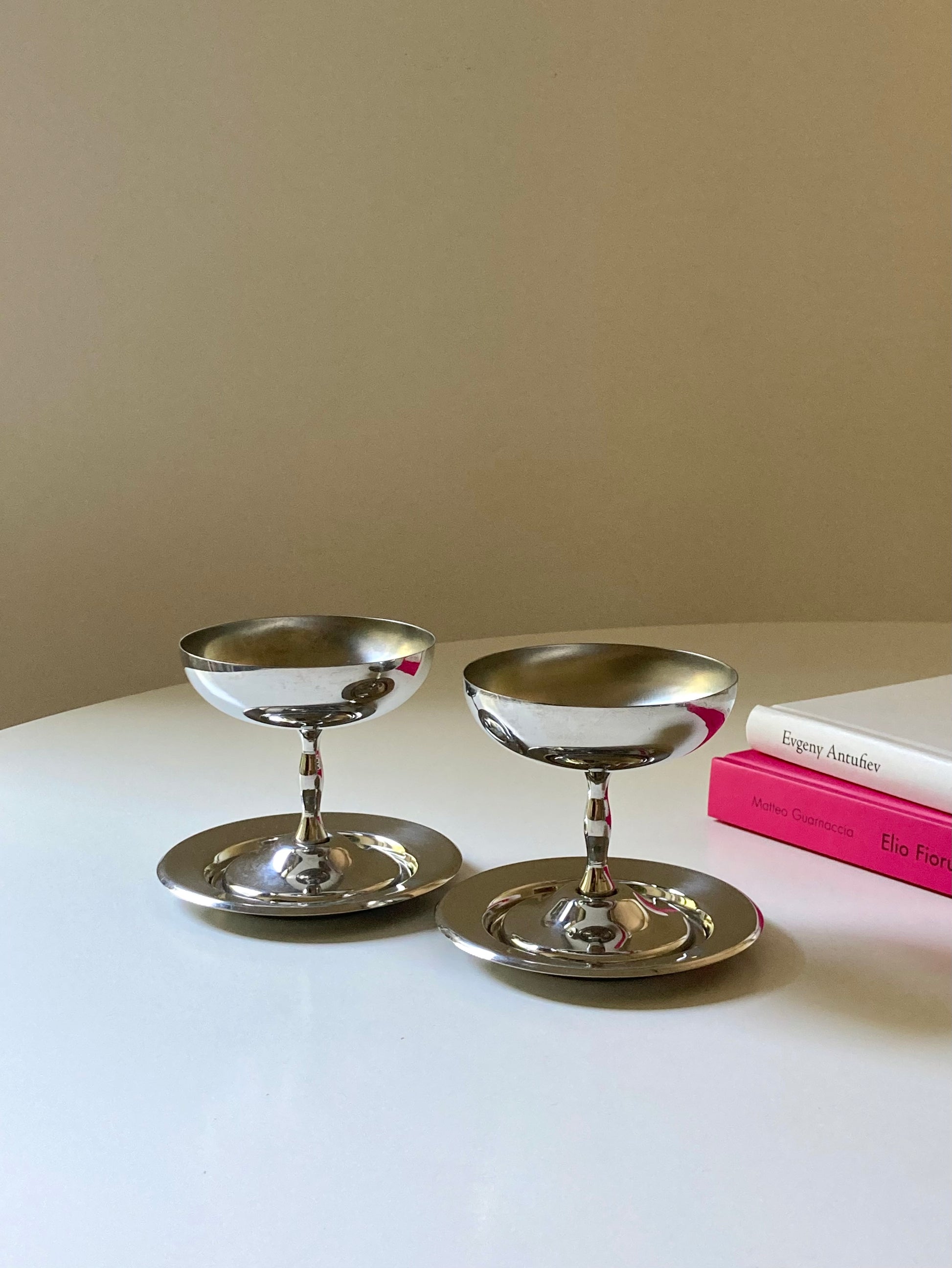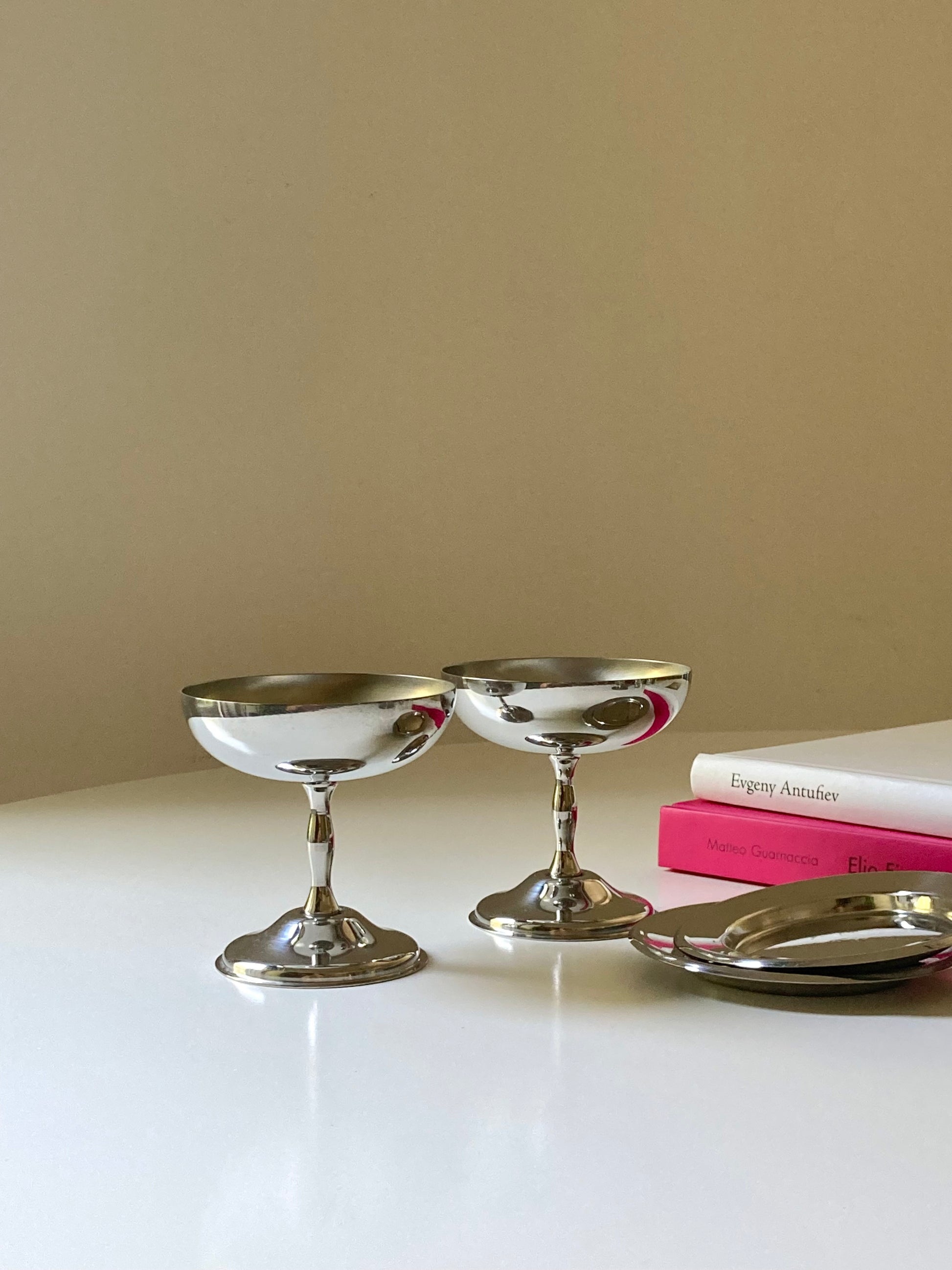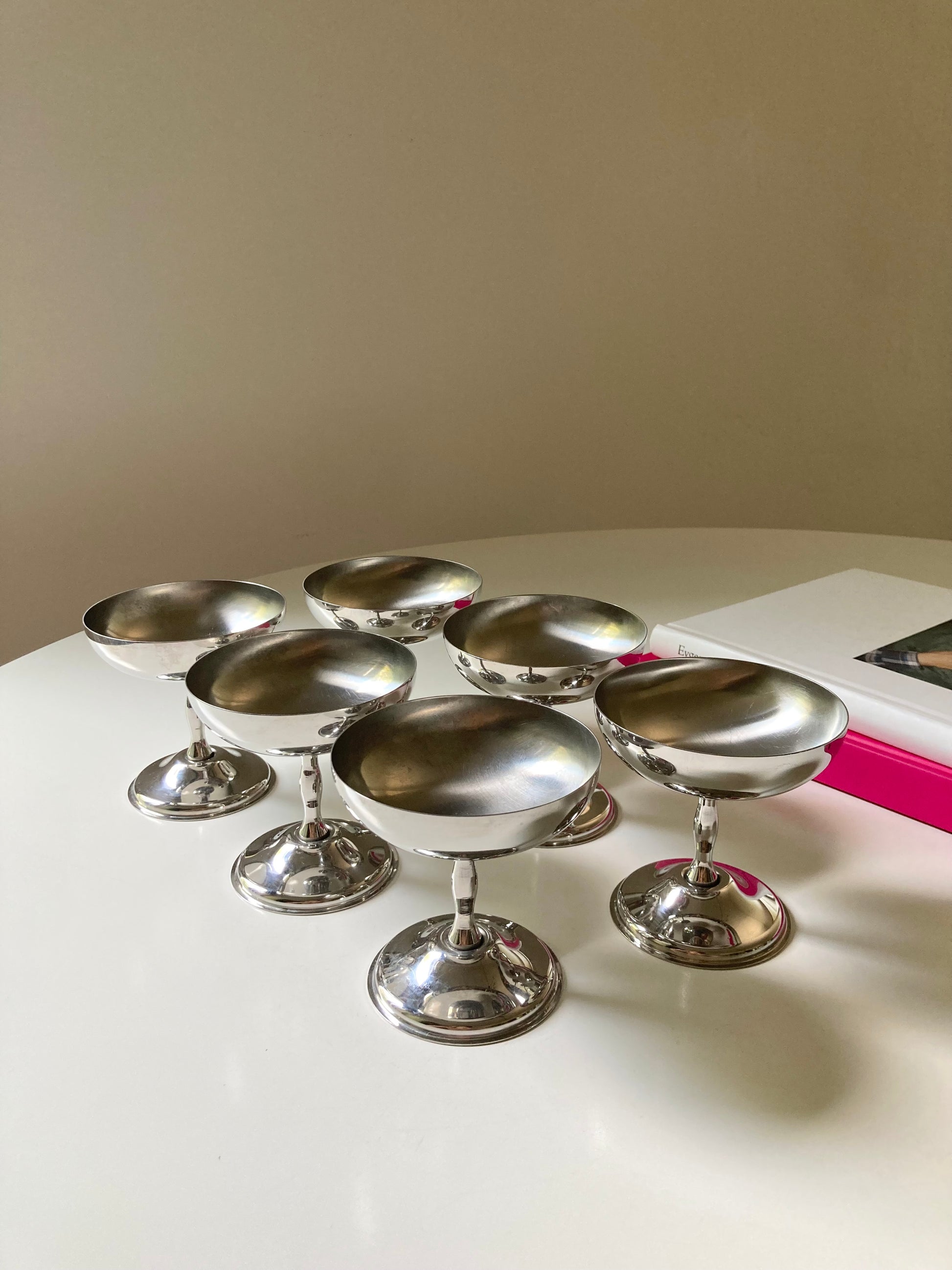 Set completo di 6 coppe da dessert in acciaio con piattini