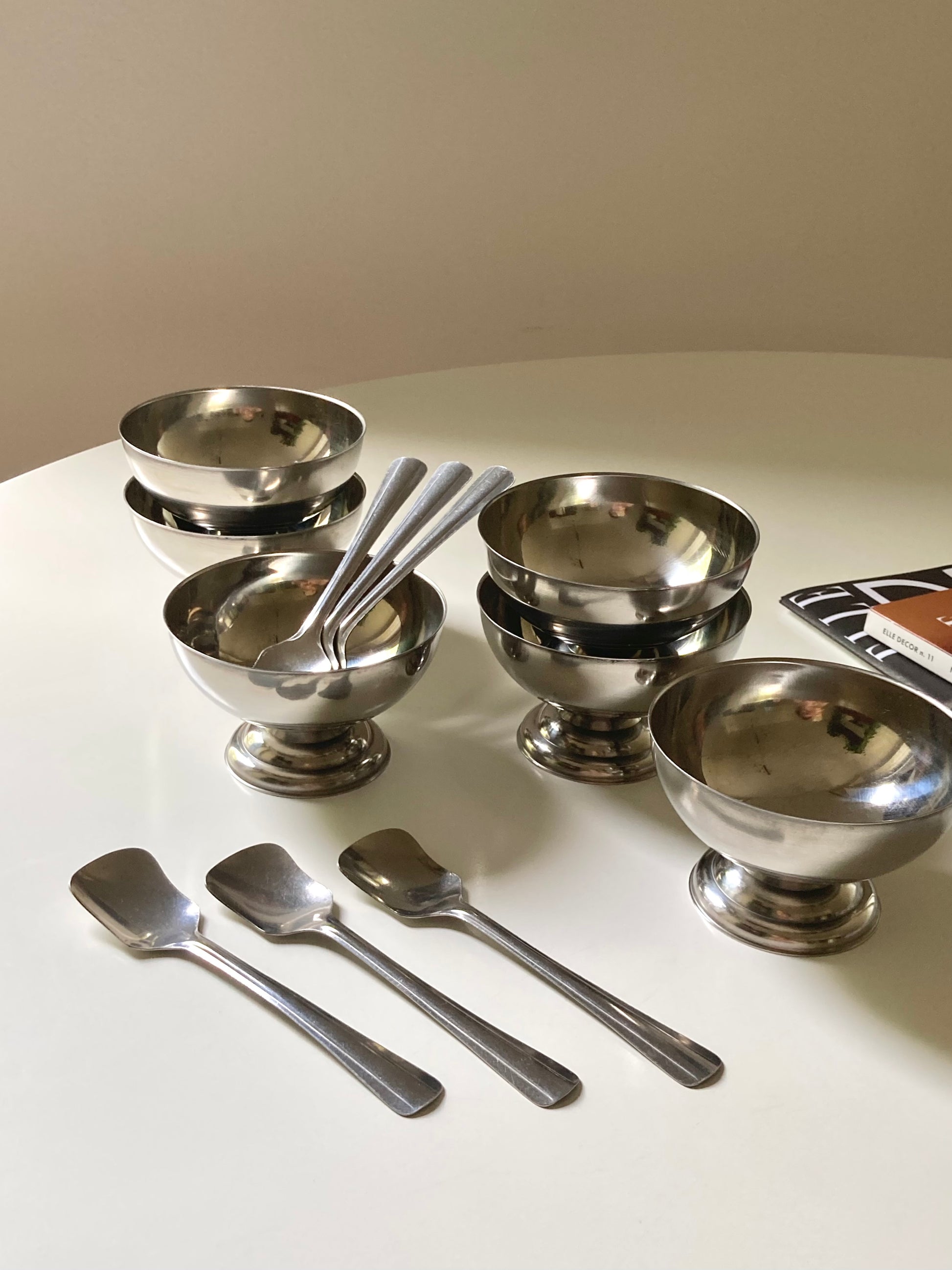 Set completo di 6 coppette vintage in acciaio con cucchiaini 🍨