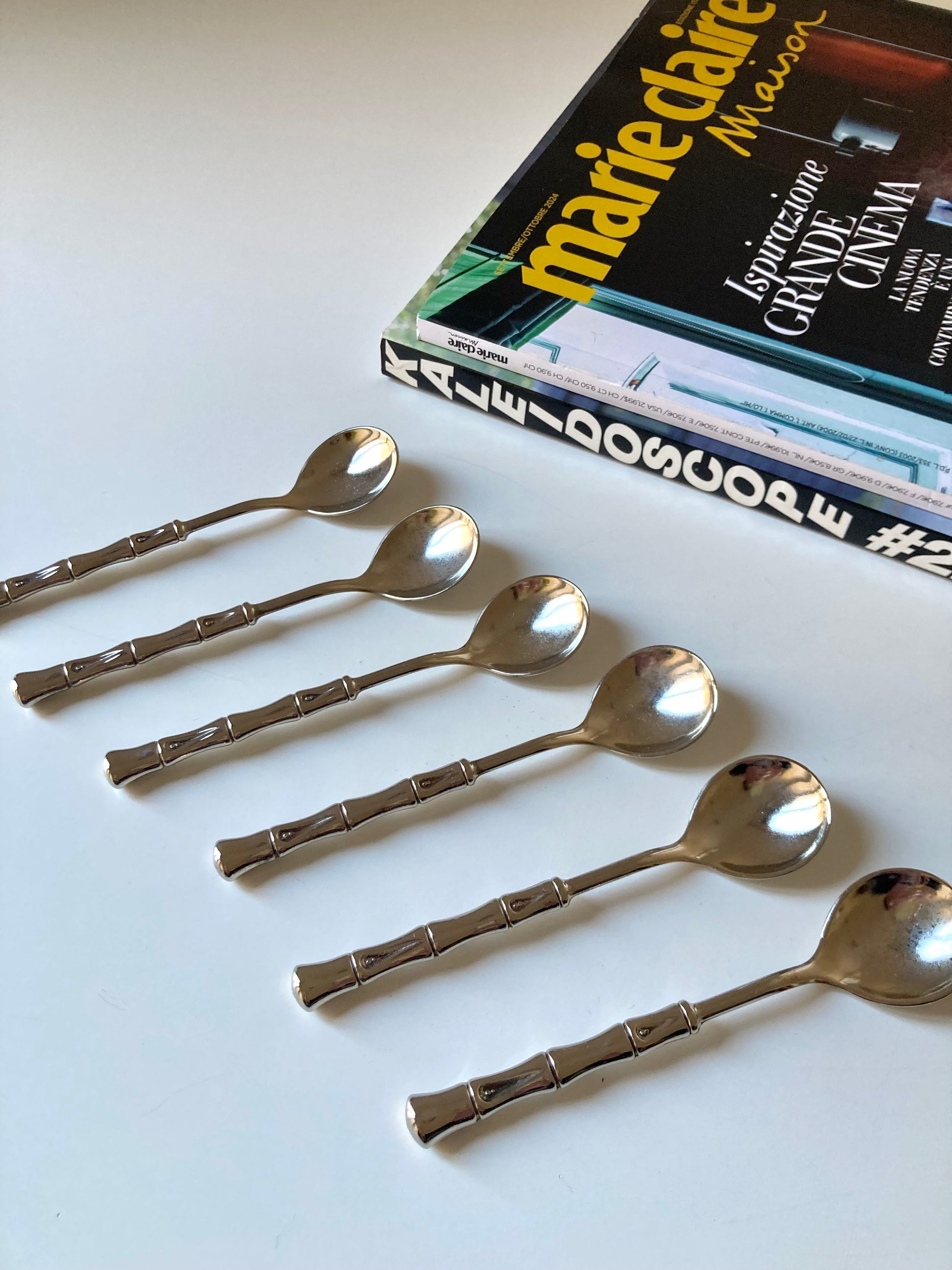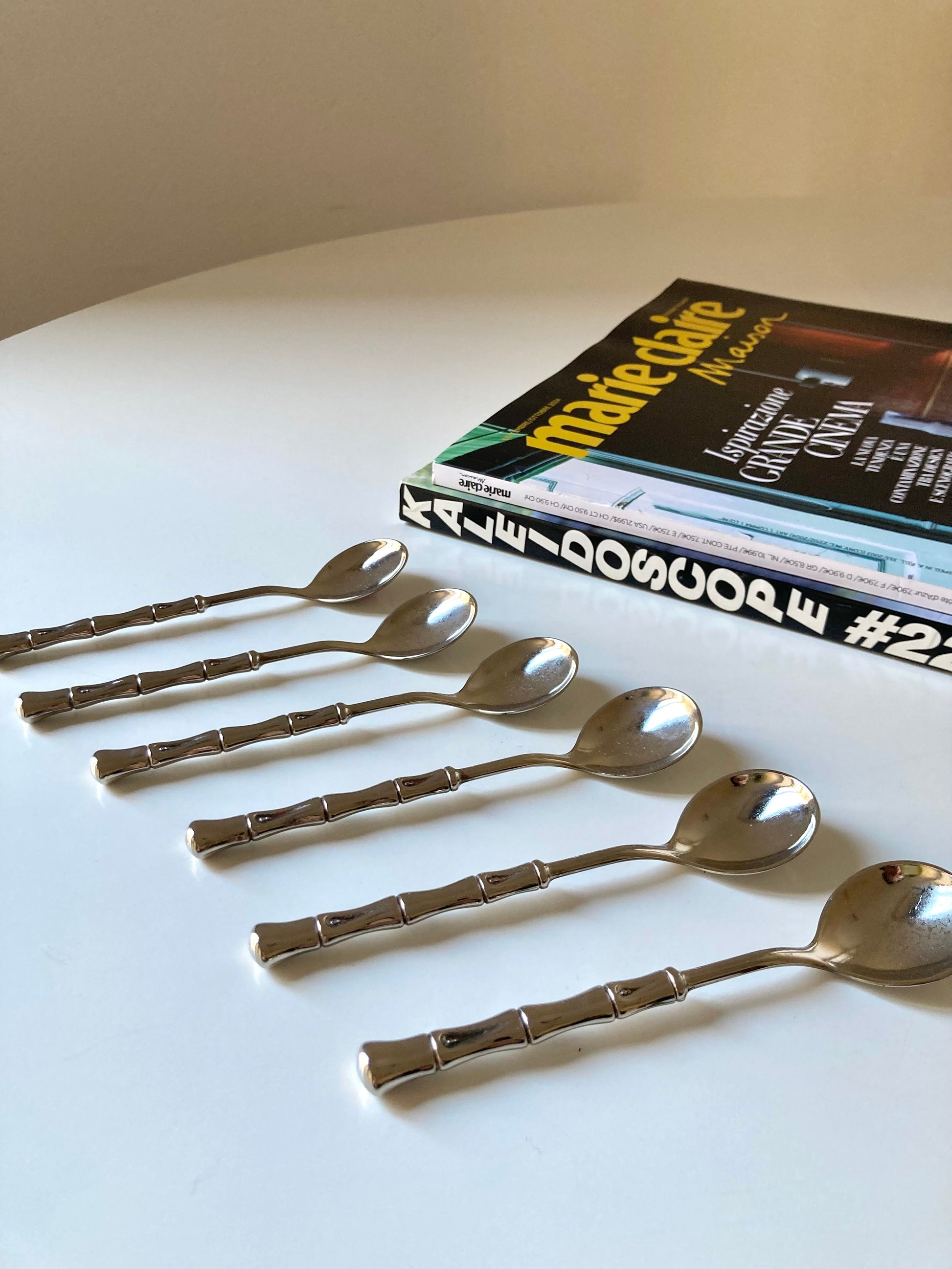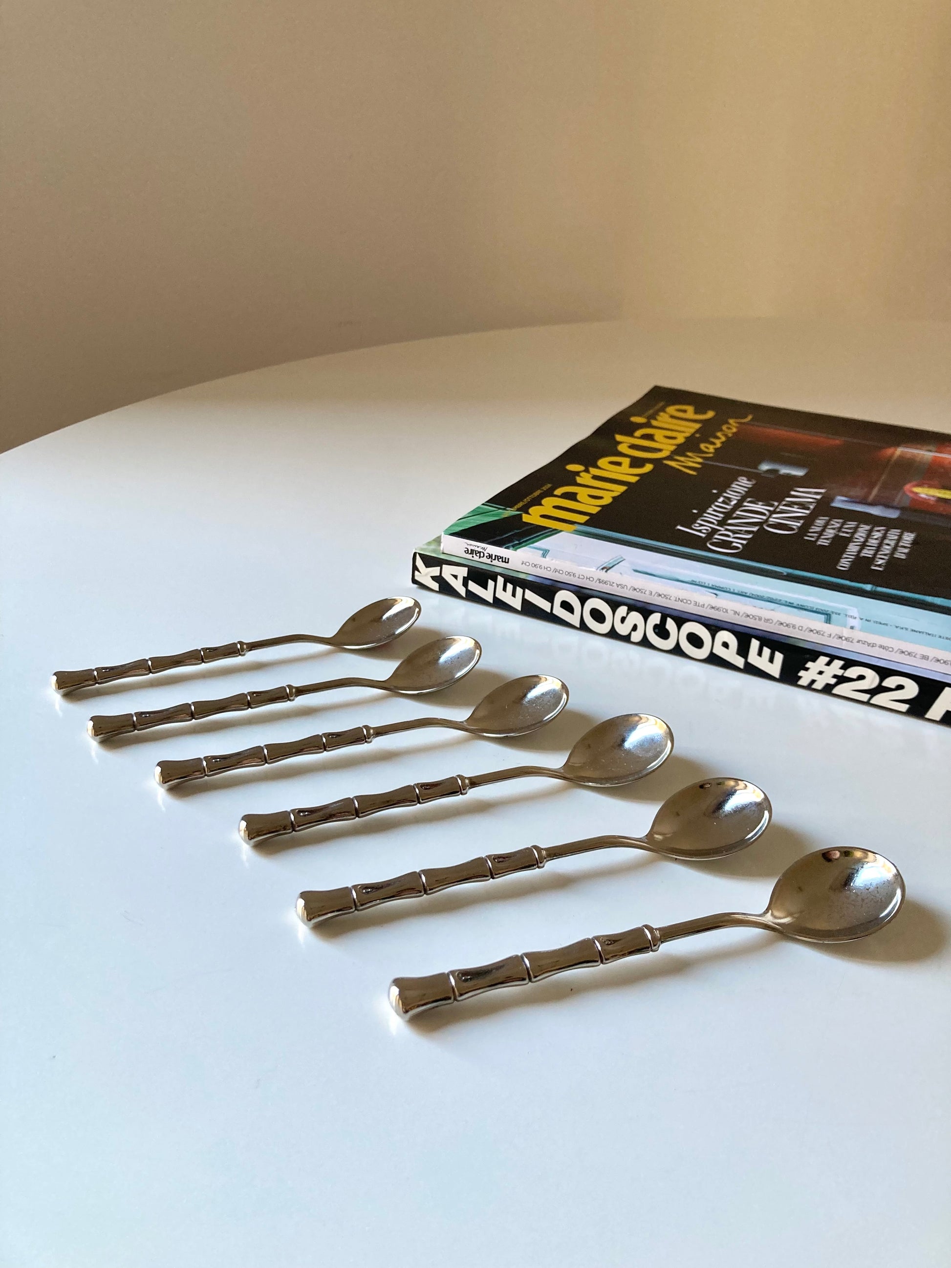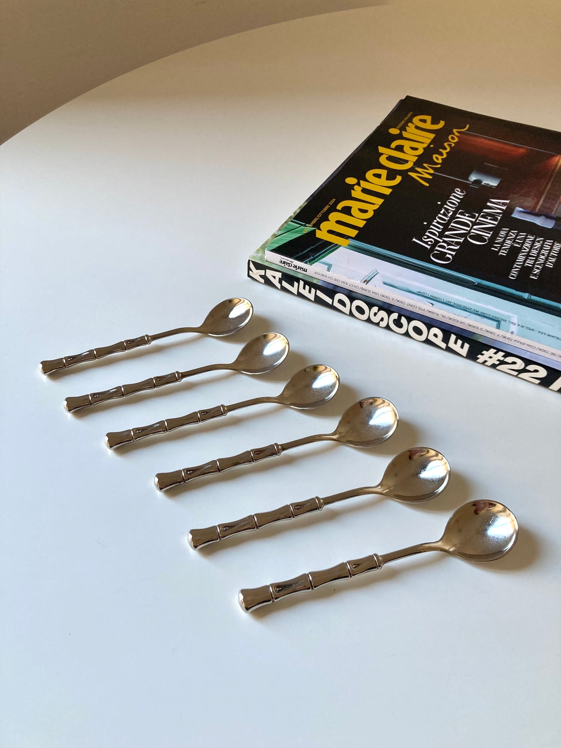 Set di 6 cucchiaini vintage in metallo placcato argento con manico a forma di bambù ✨🩶