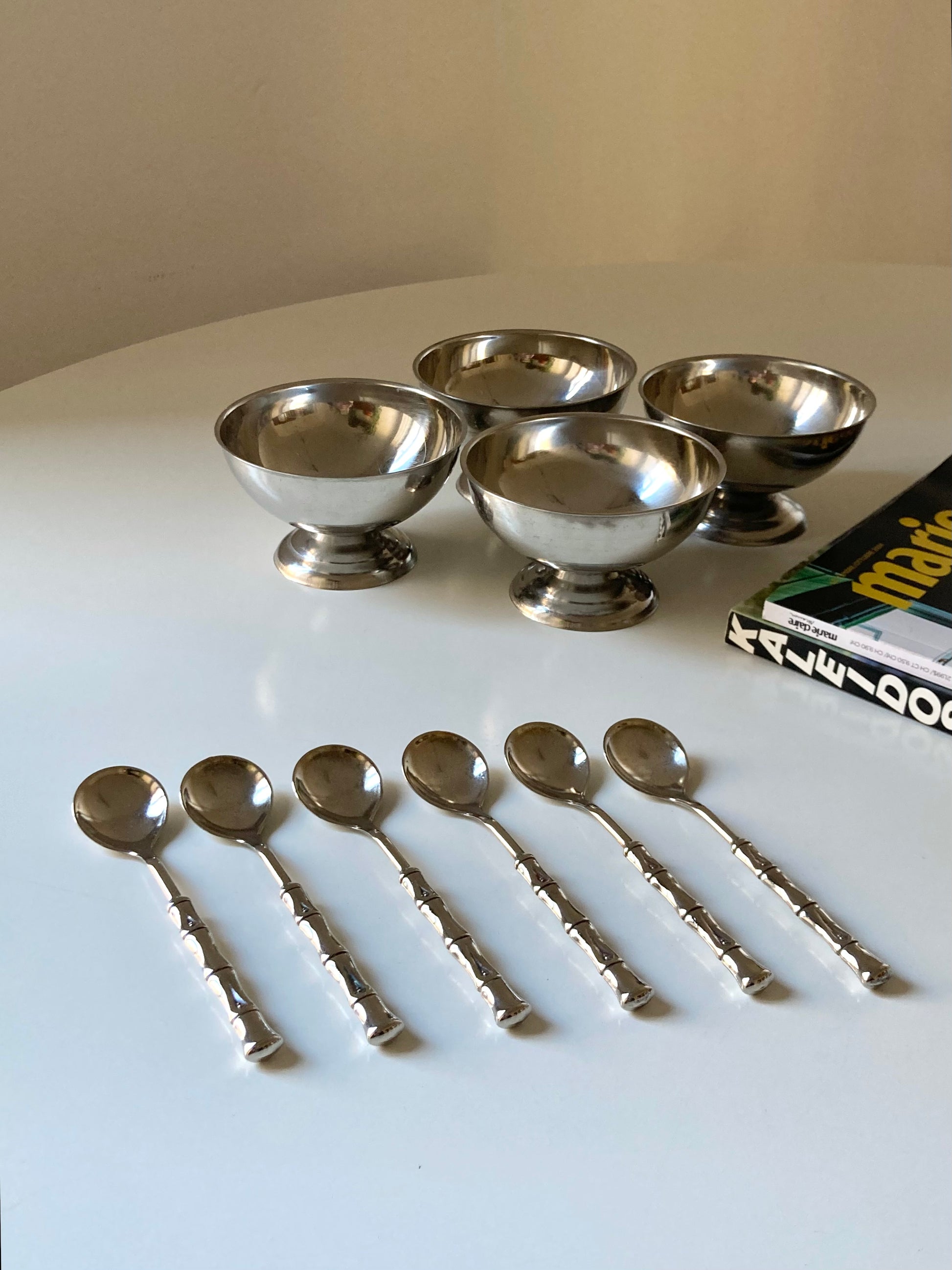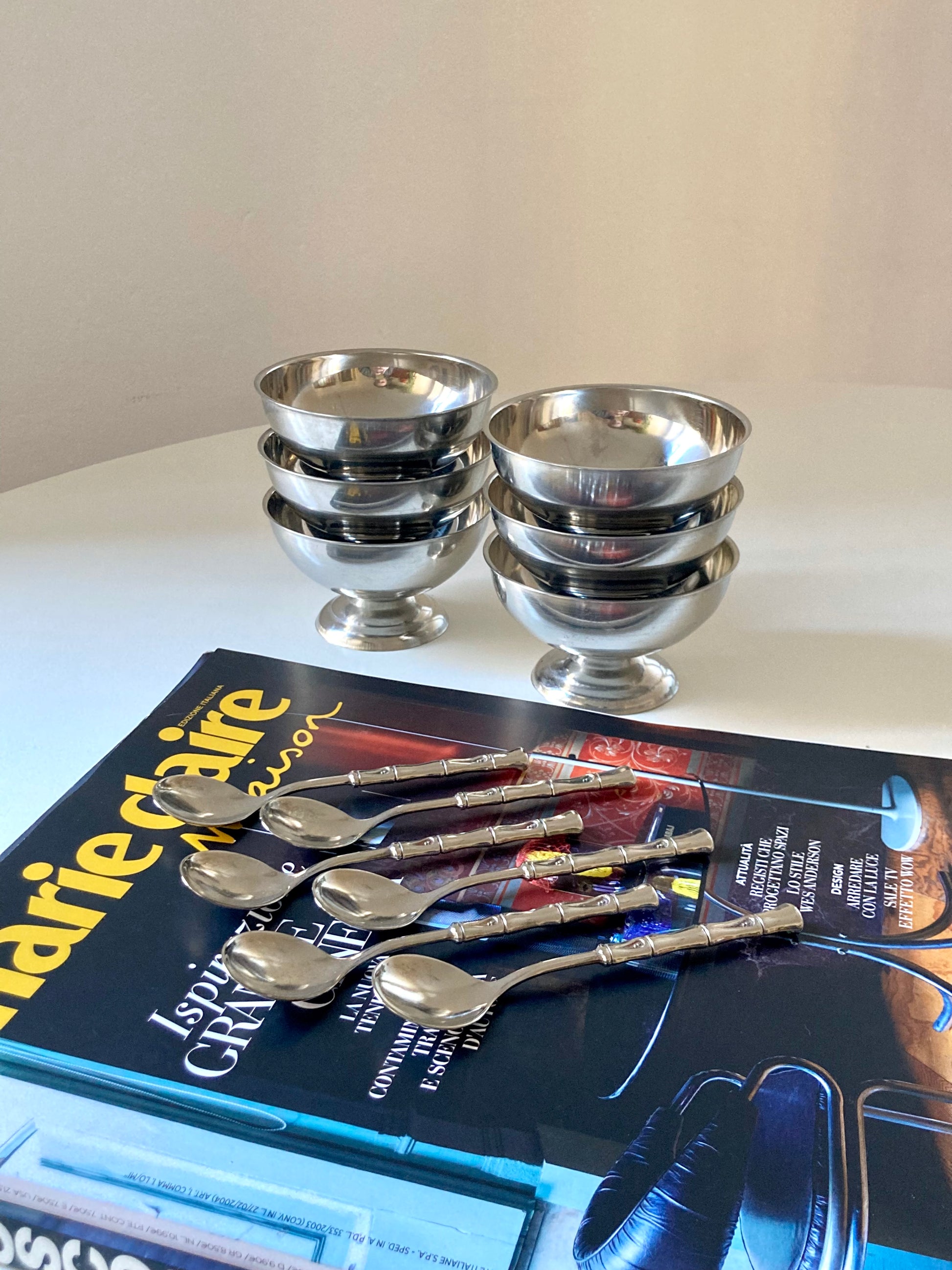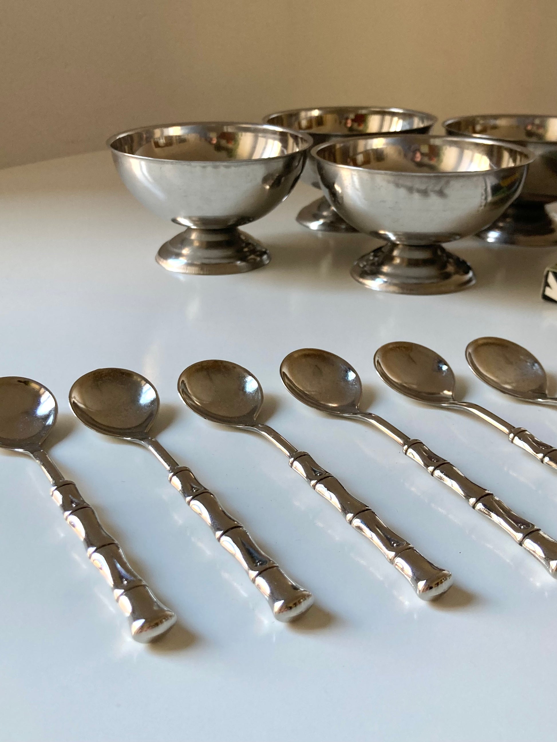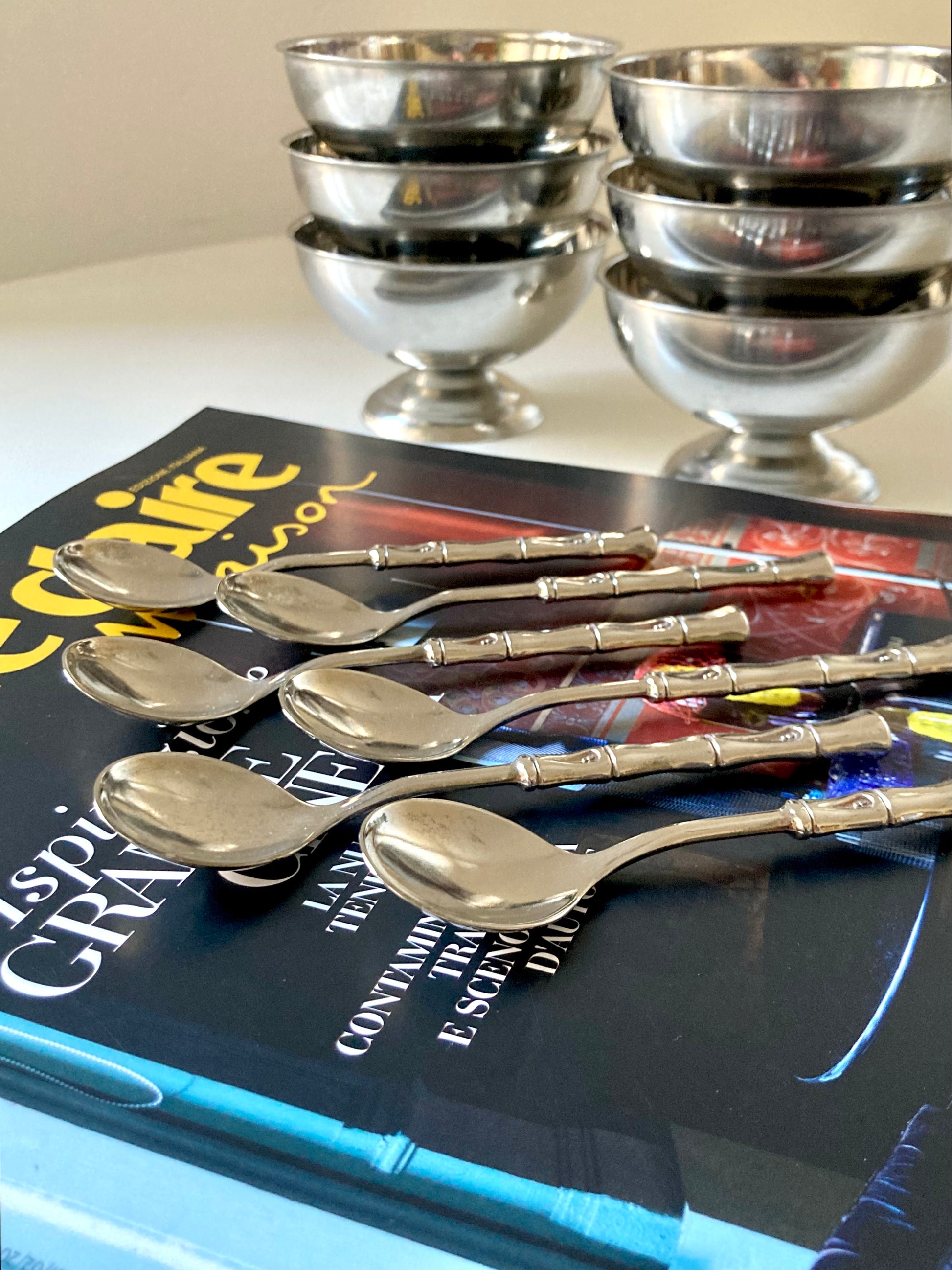Set di 6 cucchiaini vintage in metallo placcato argento con manico a forma di bambù ✨🩶