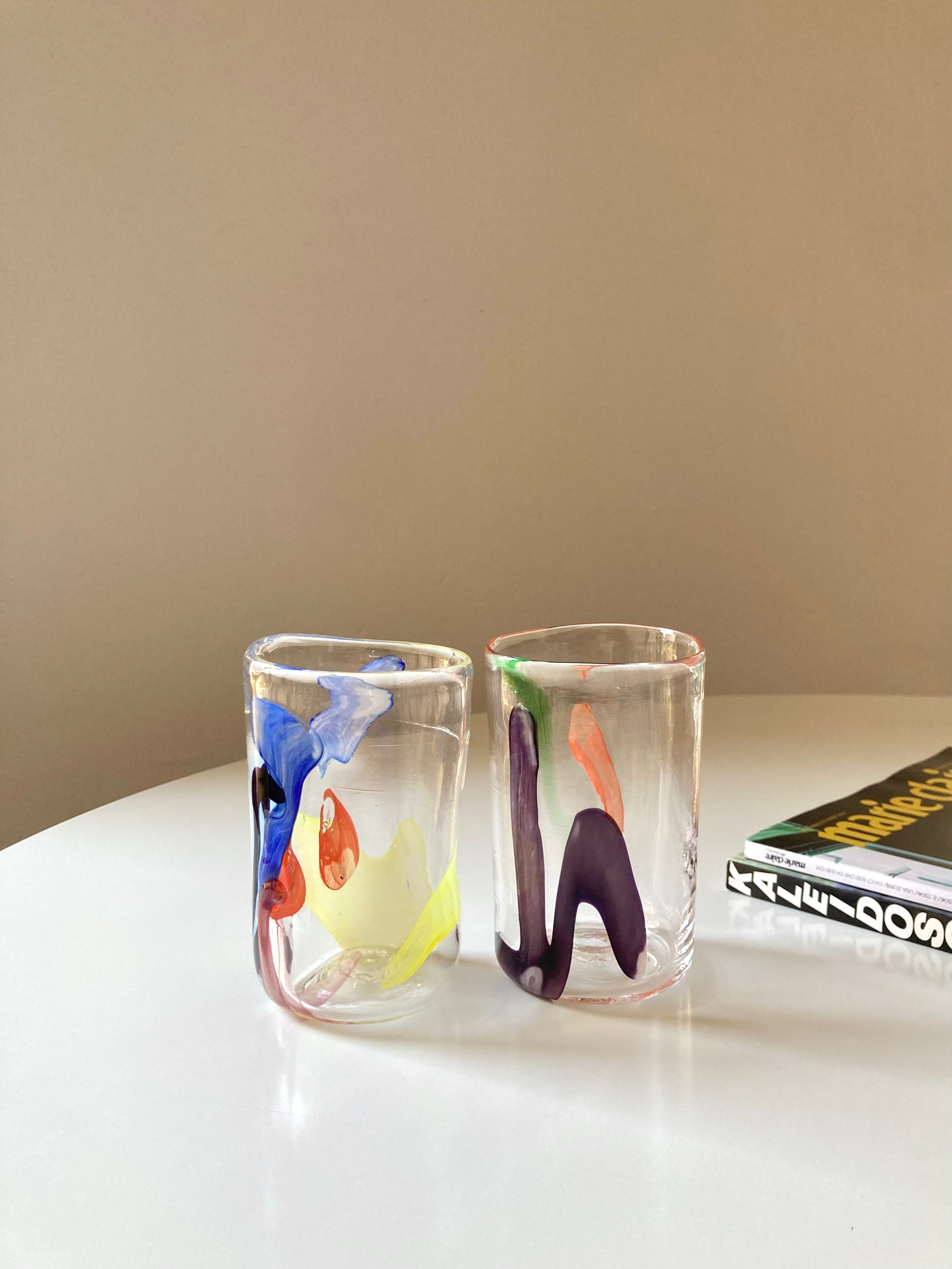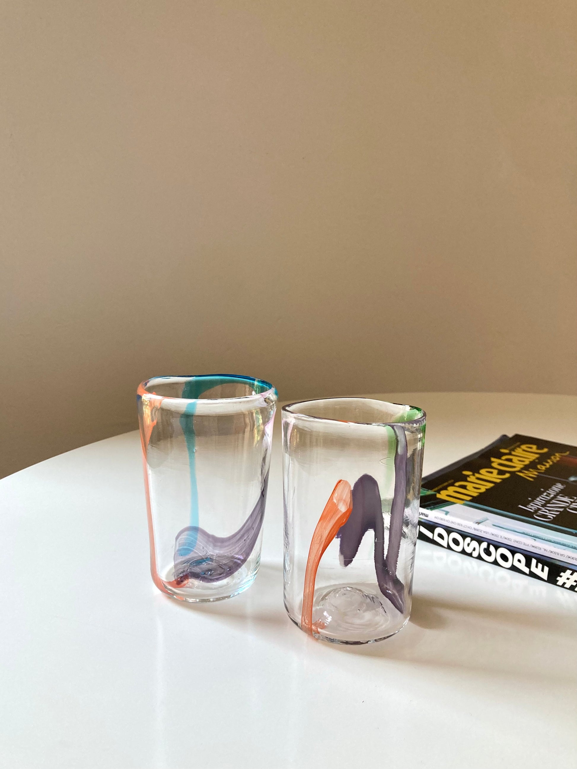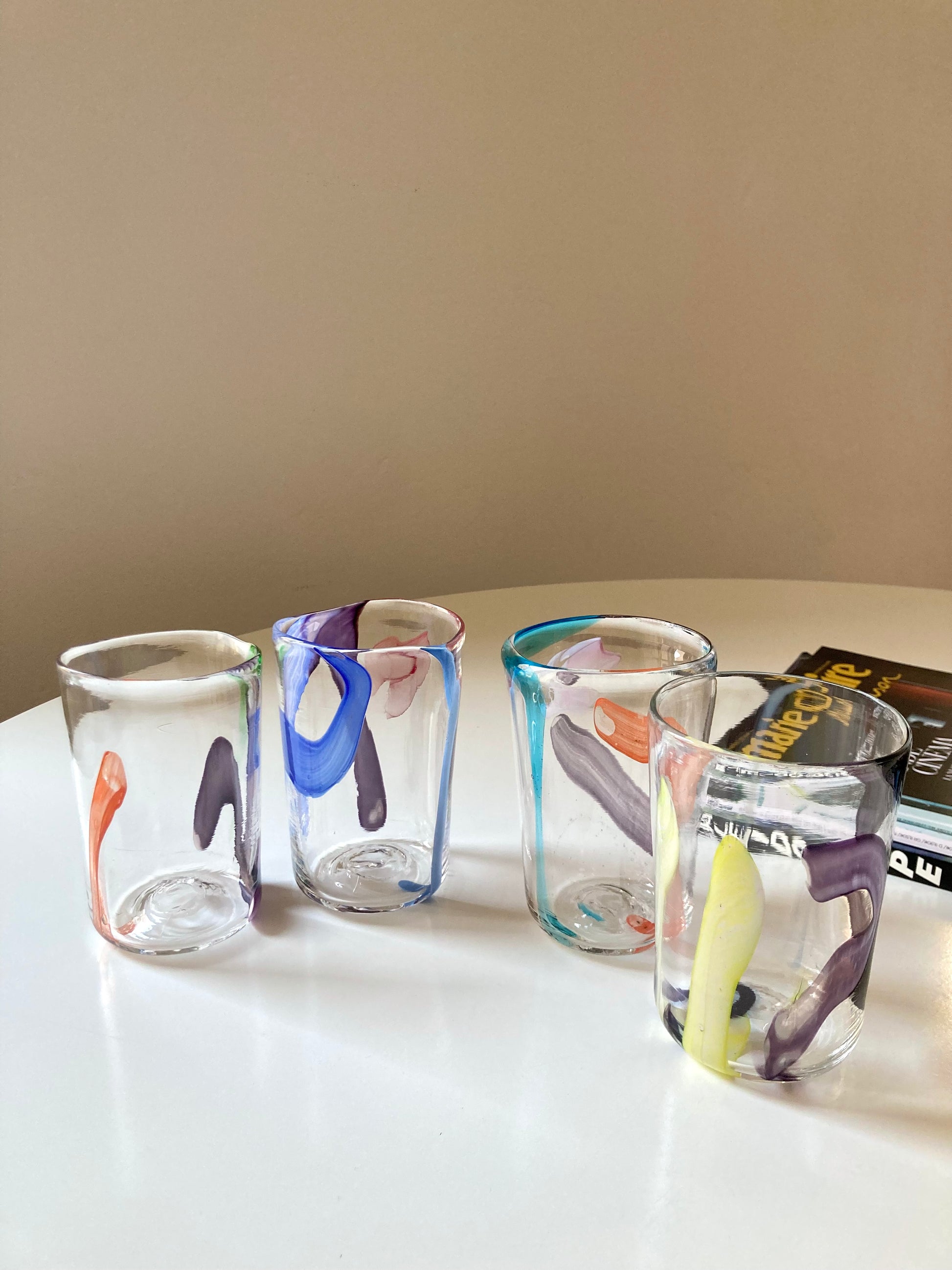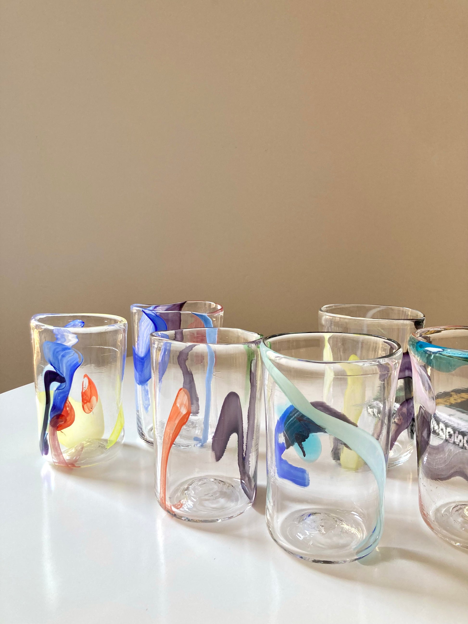 Set di 6 bicchieri goti veneziani da vino o acqua realizzati interamente a mano in vetro di Murano e decorati con linee e forme astratte che rendono ciascun bicchiere unico e diverso dagli altri 🎨