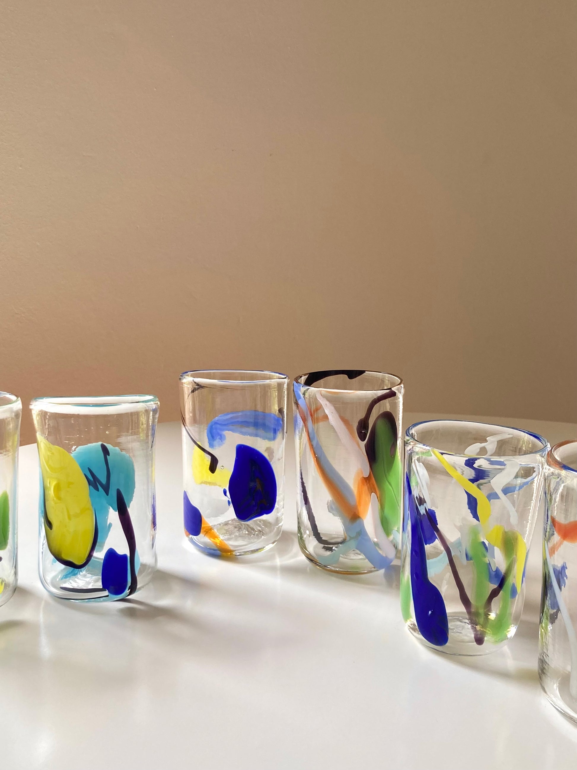 Stampa “Rosa Sederino” e set di 6 Goti trasparenti con linee colorate 🎈