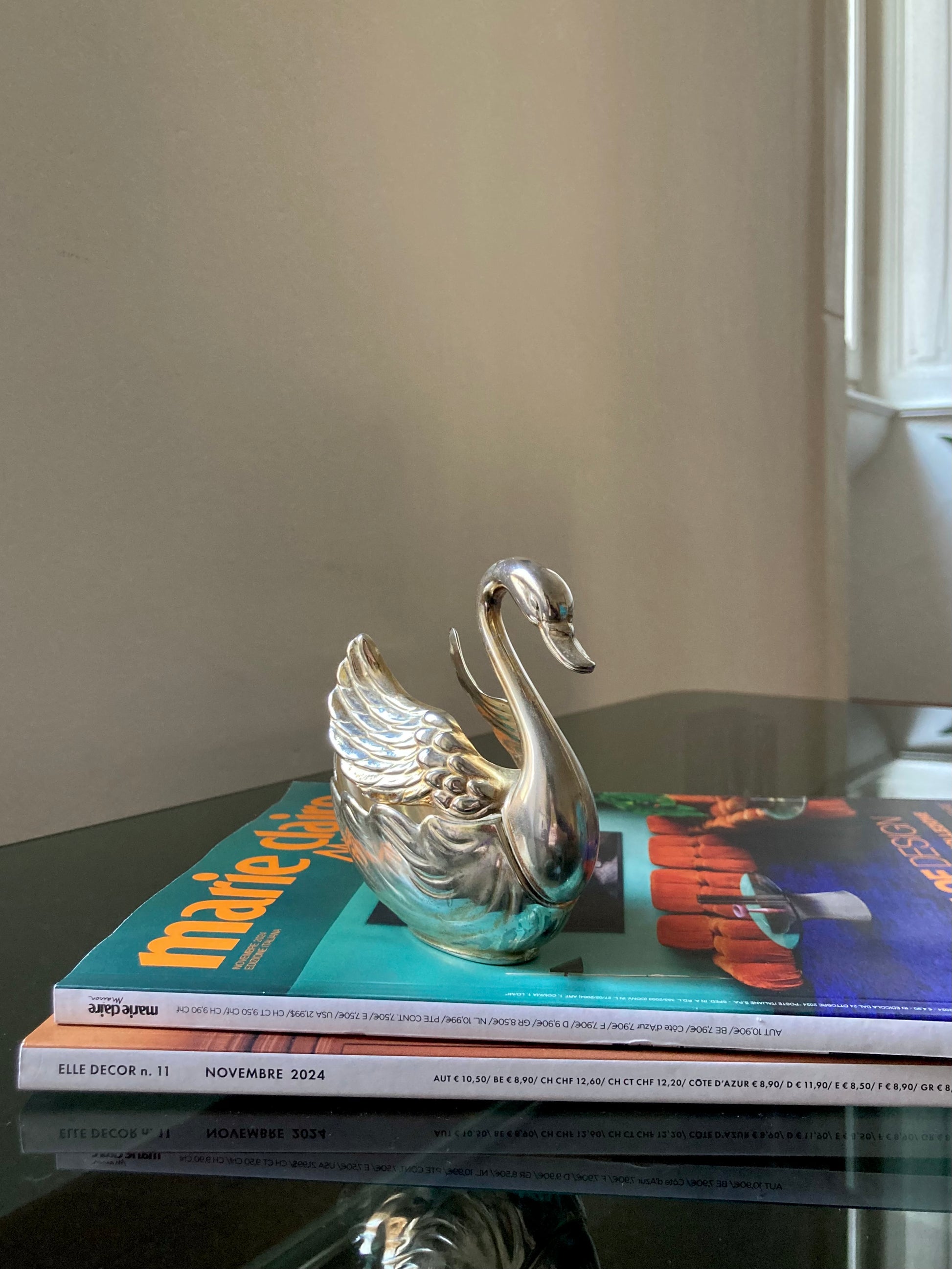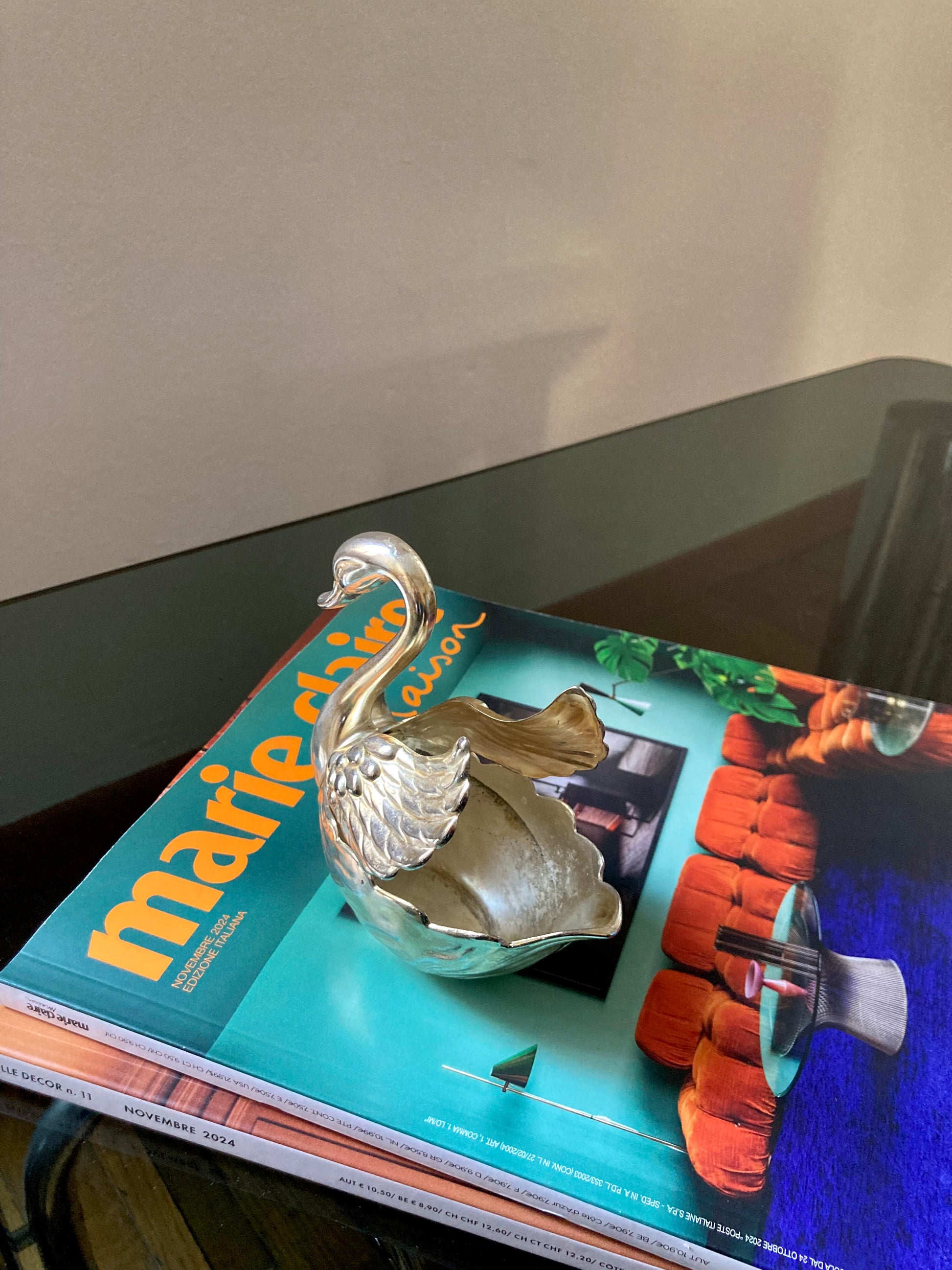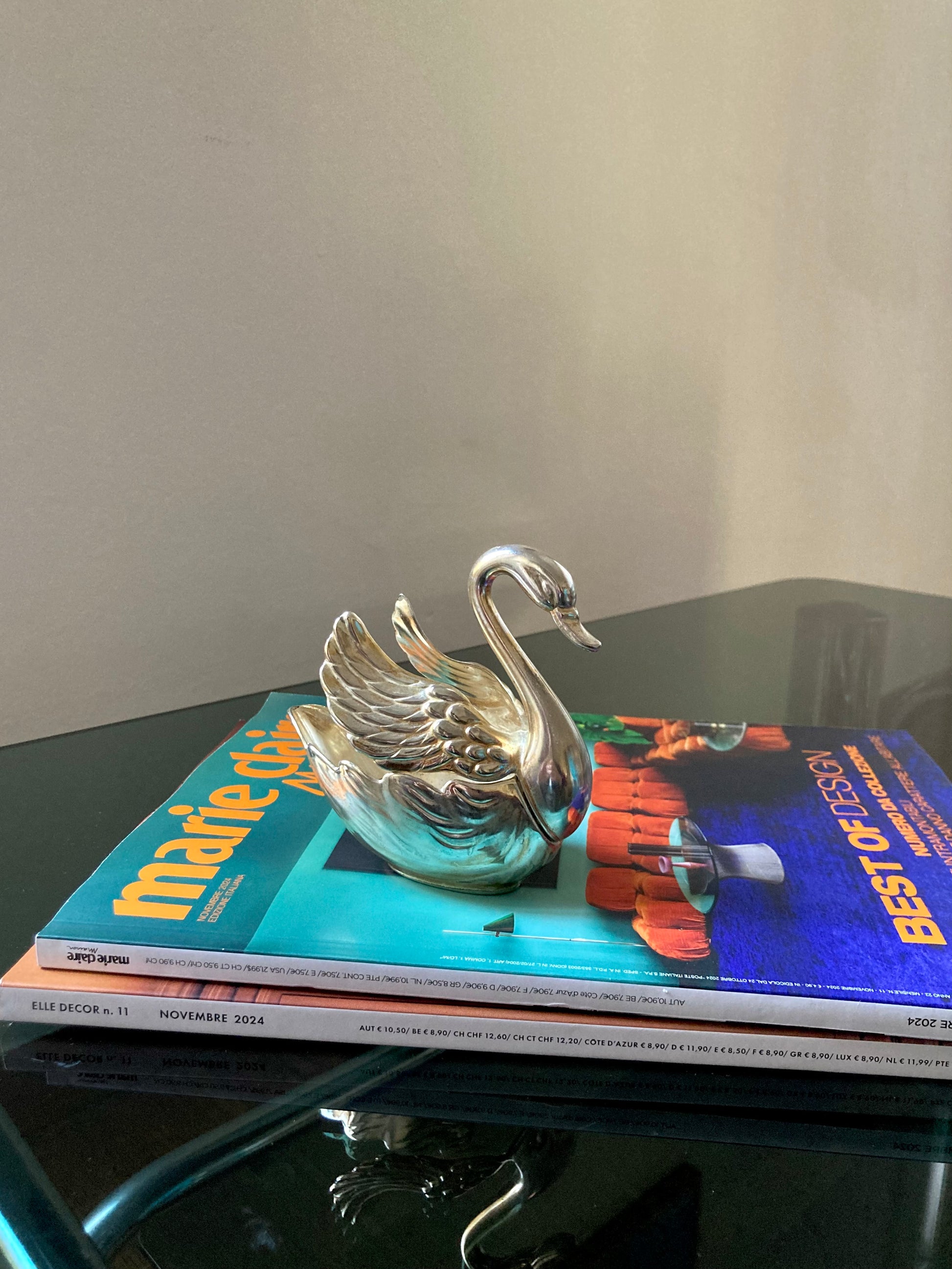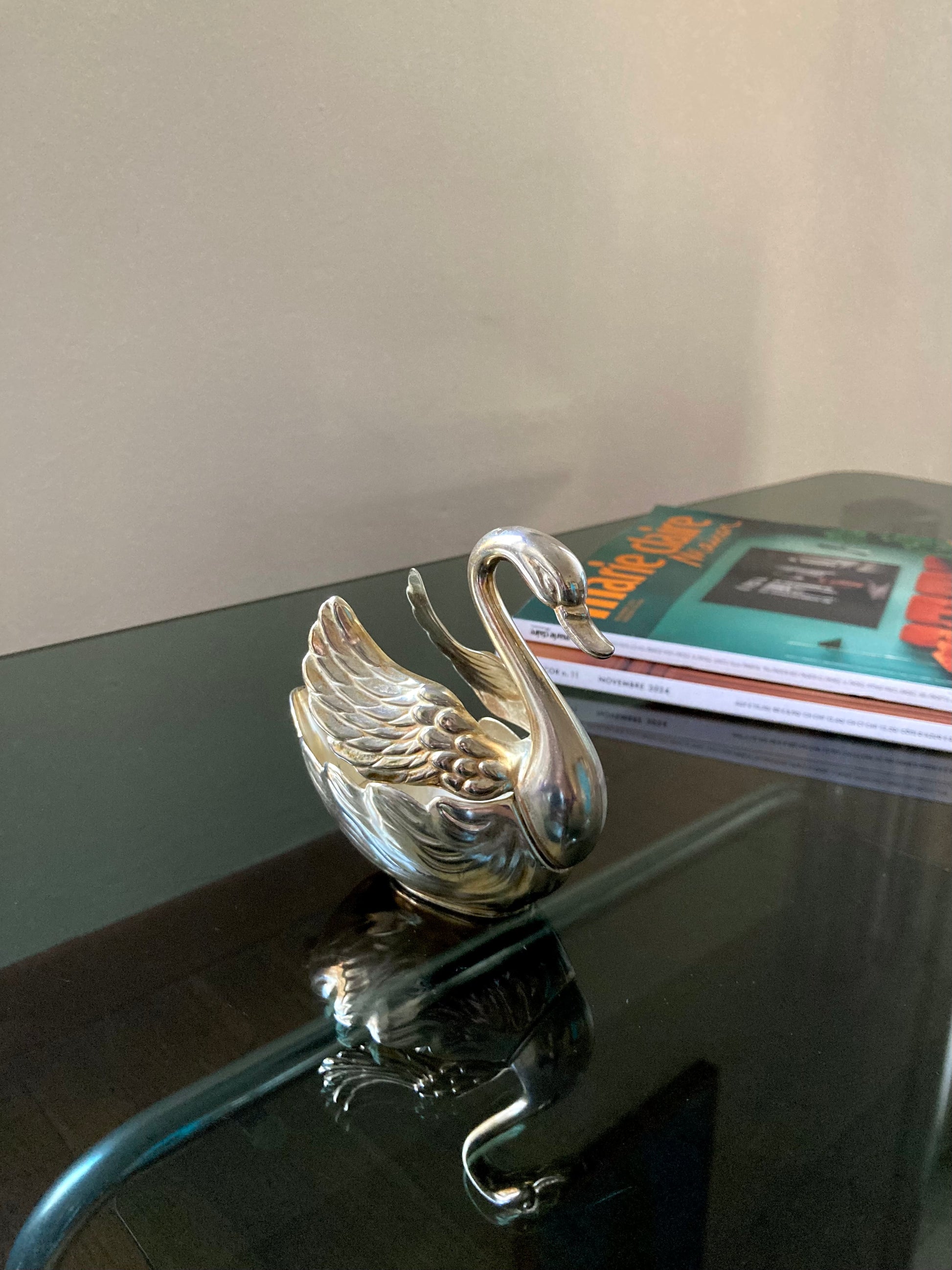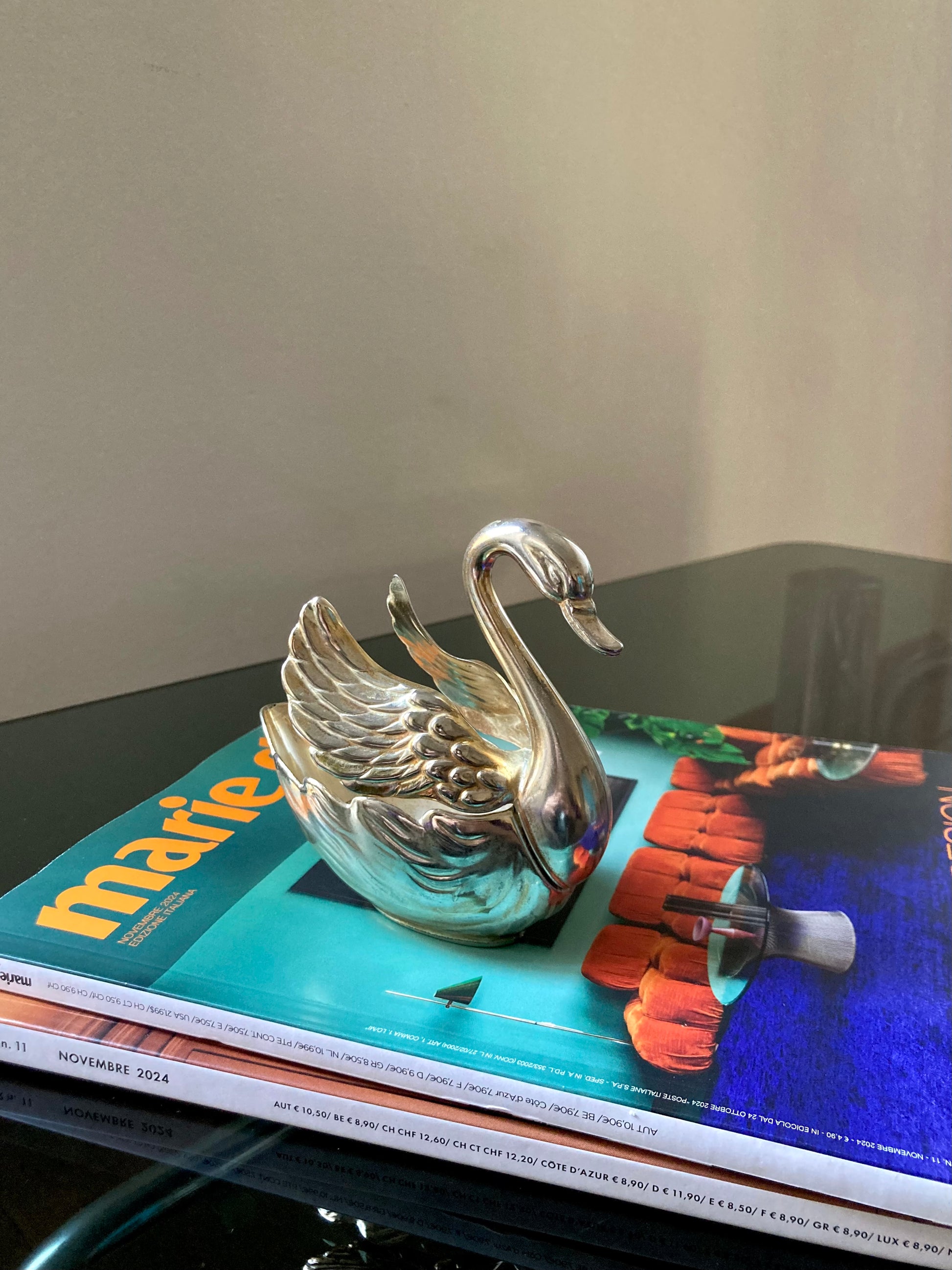 Piccola ciotola portagioie vintage in metallo placcato argento a forma di cigno 🦢✨