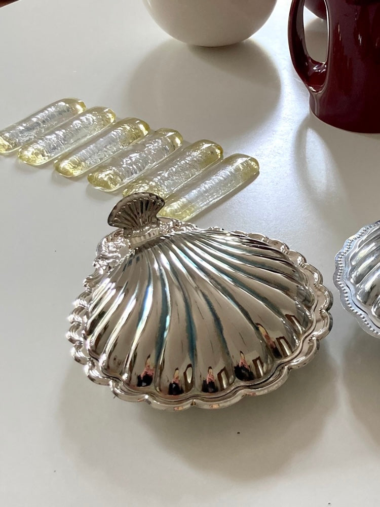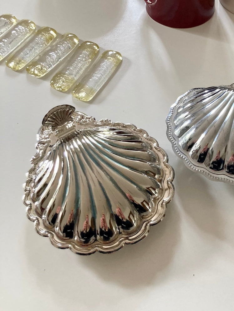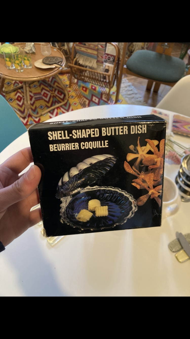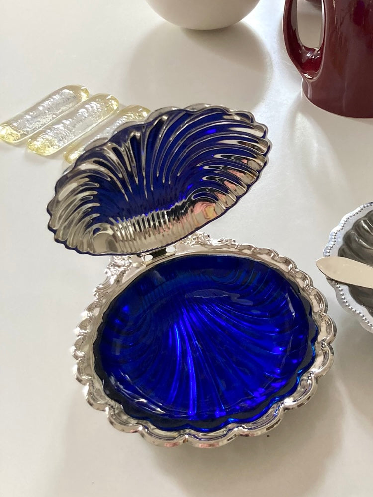 Carinissima conchiglia porta burro vintage in alluminio con vassoietto interno in plastica trasparente blu 💙