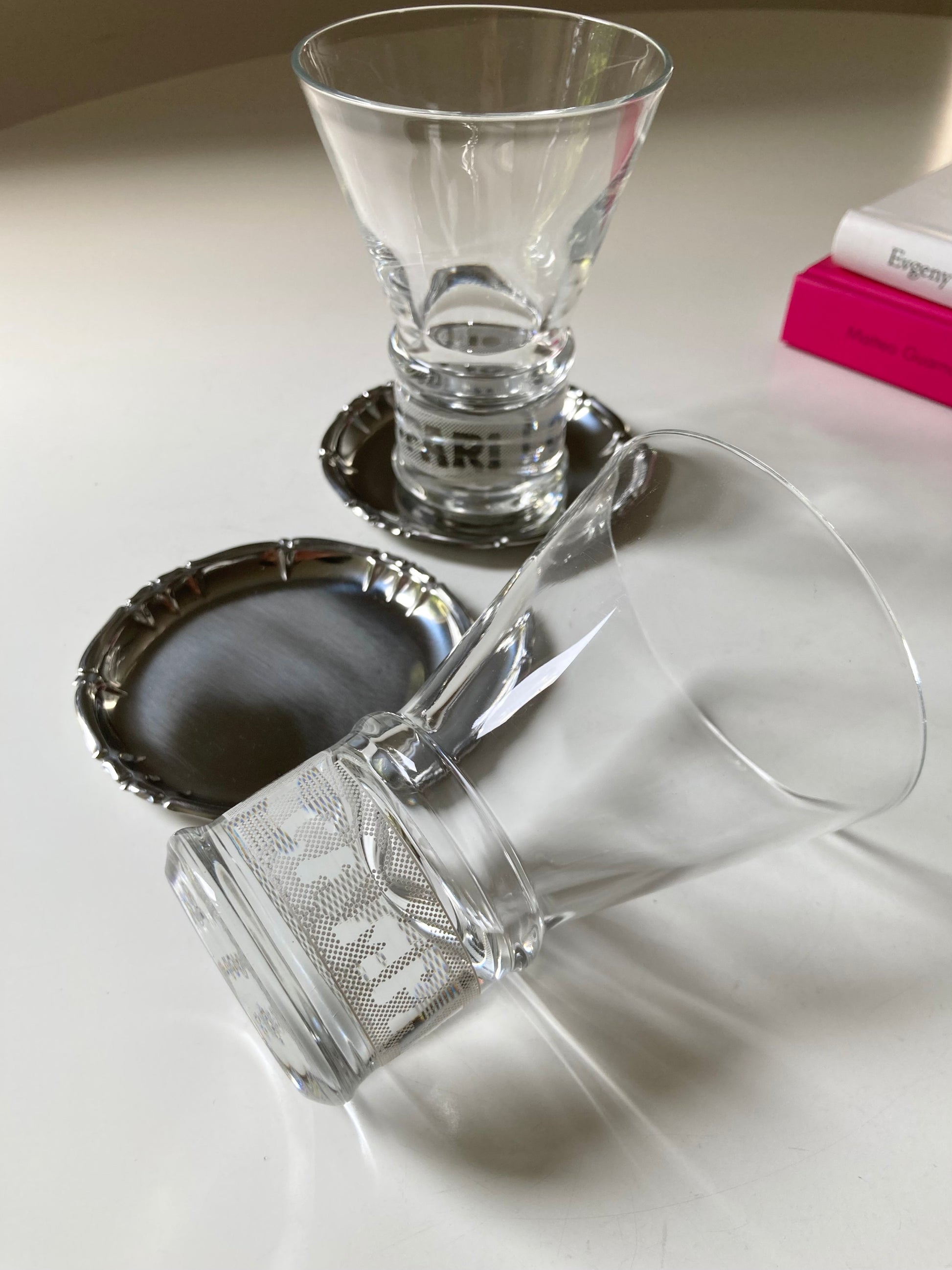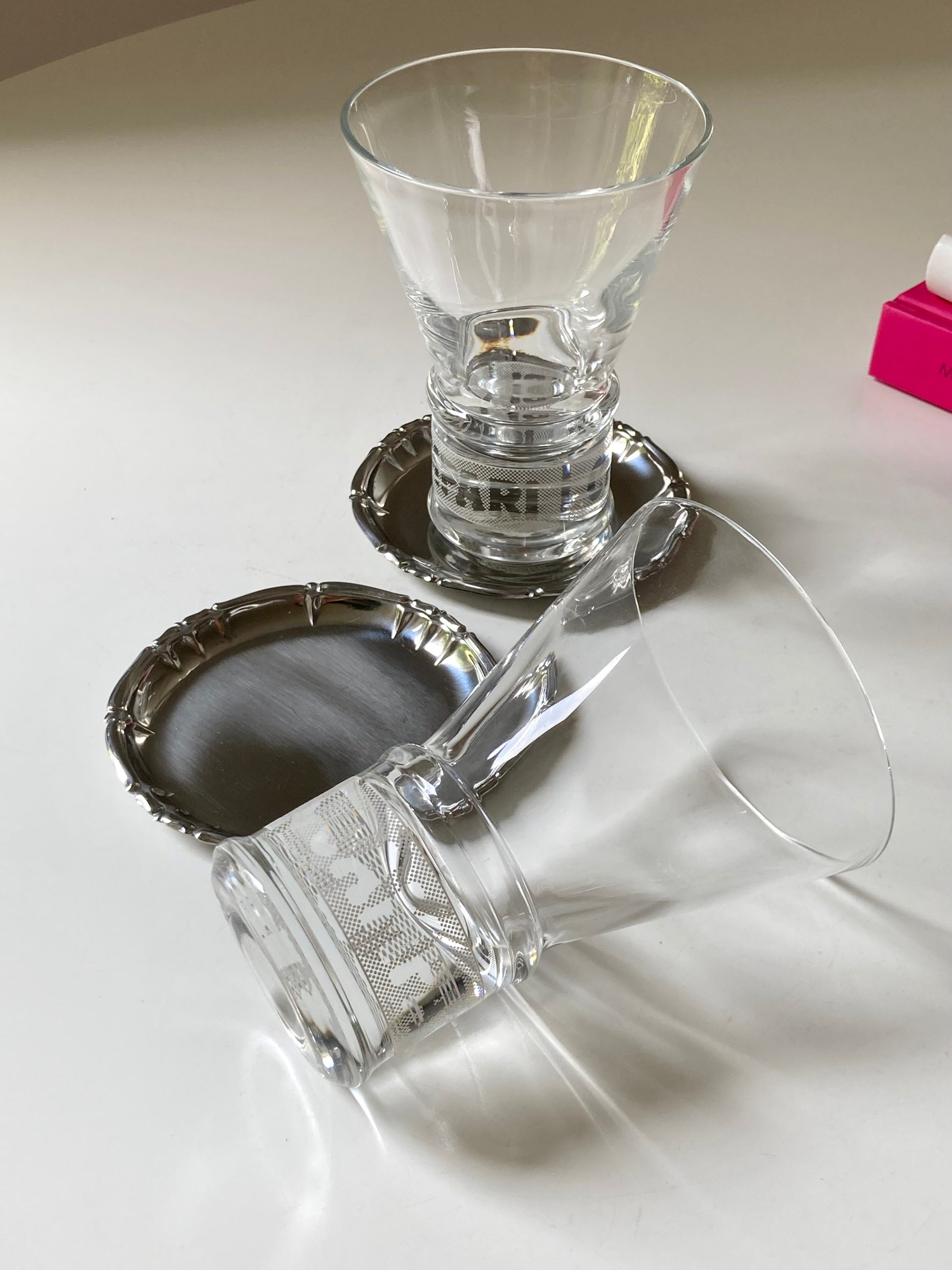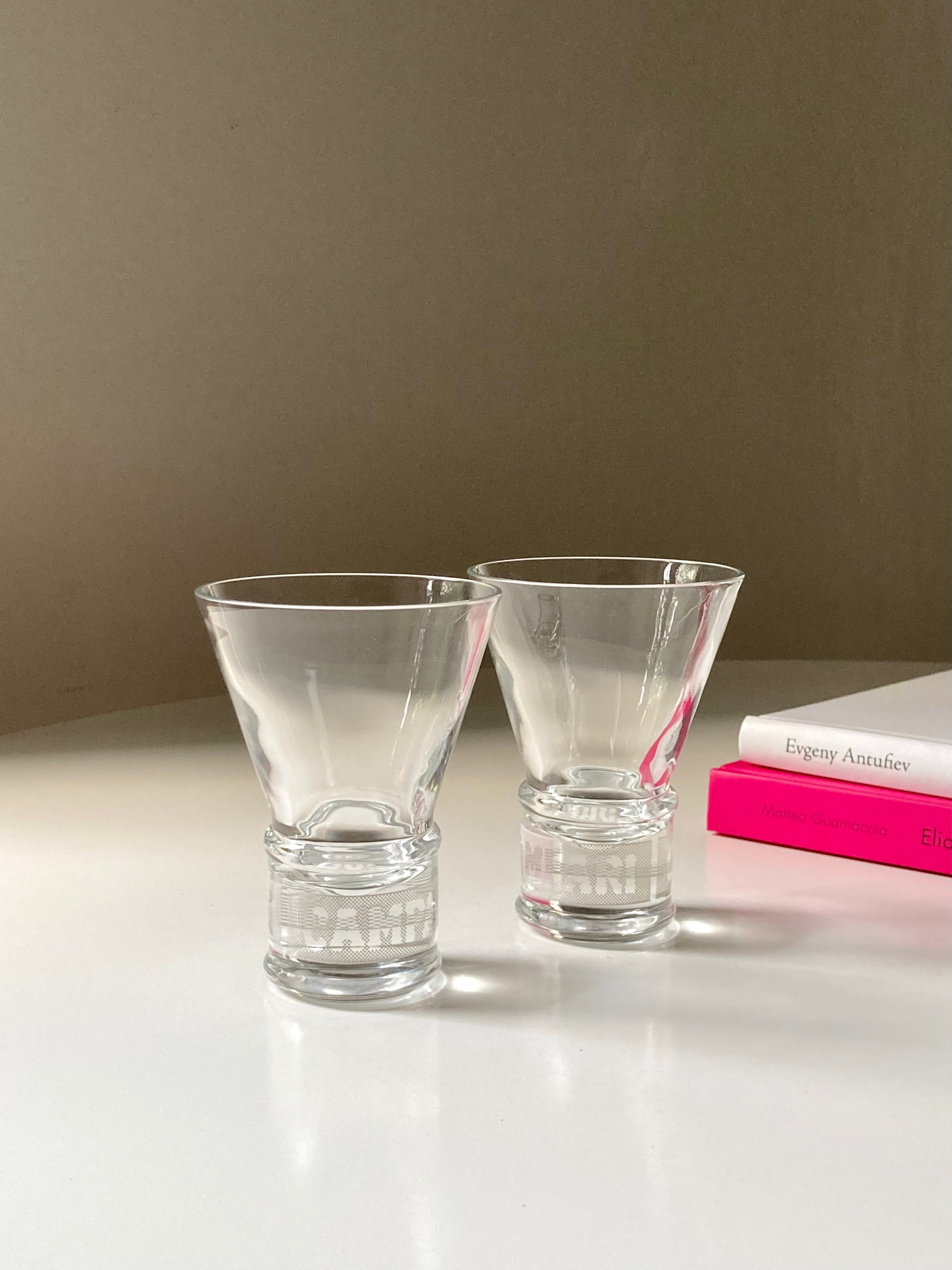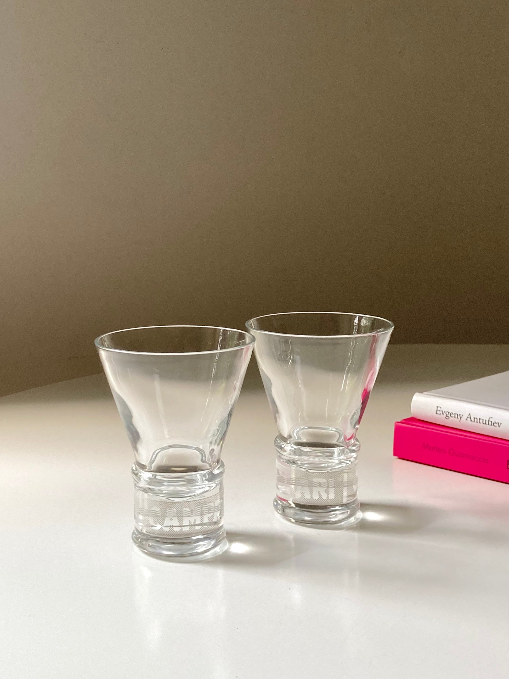 Coppia di due bicchieri Campari vintage in vetro trasparente