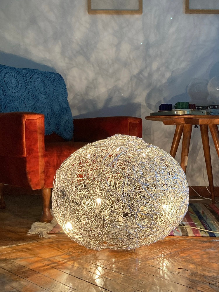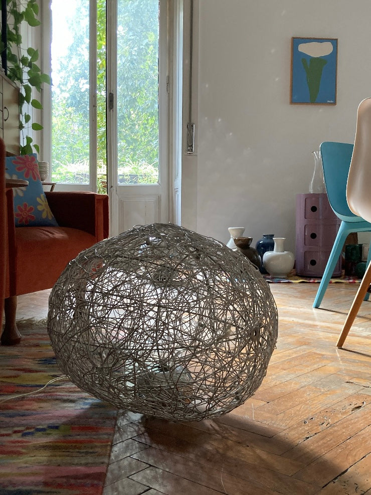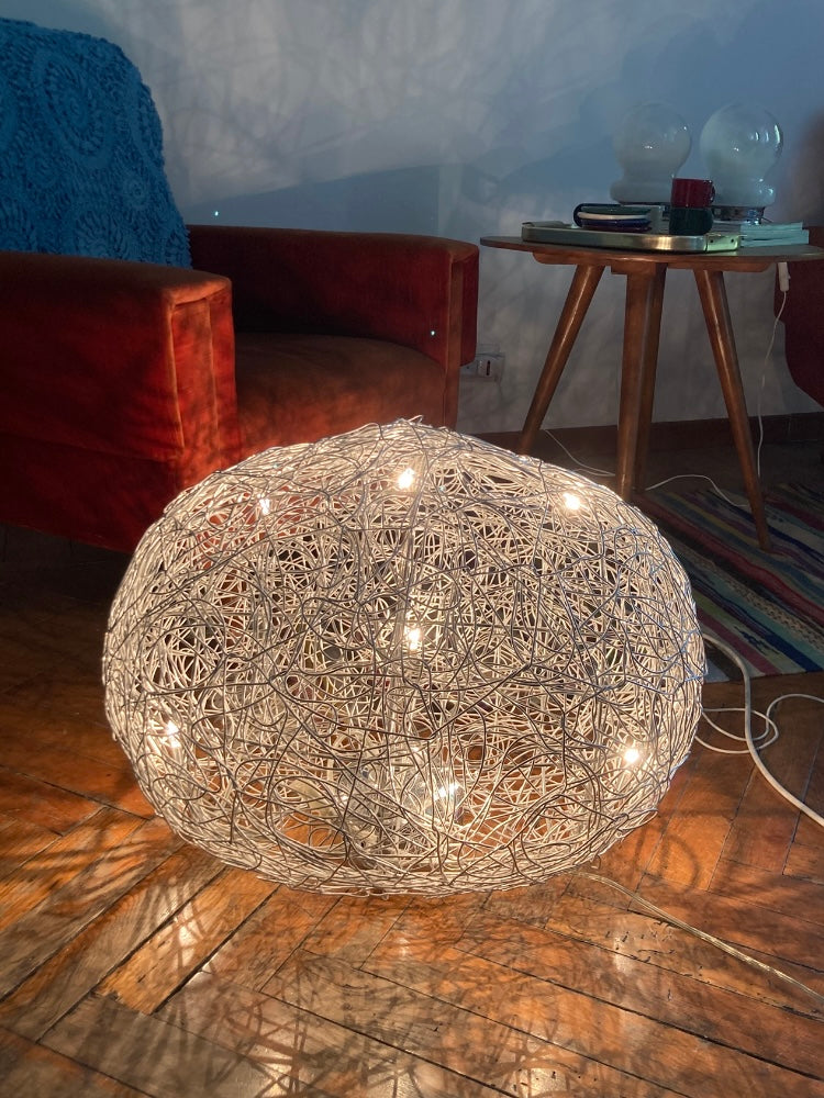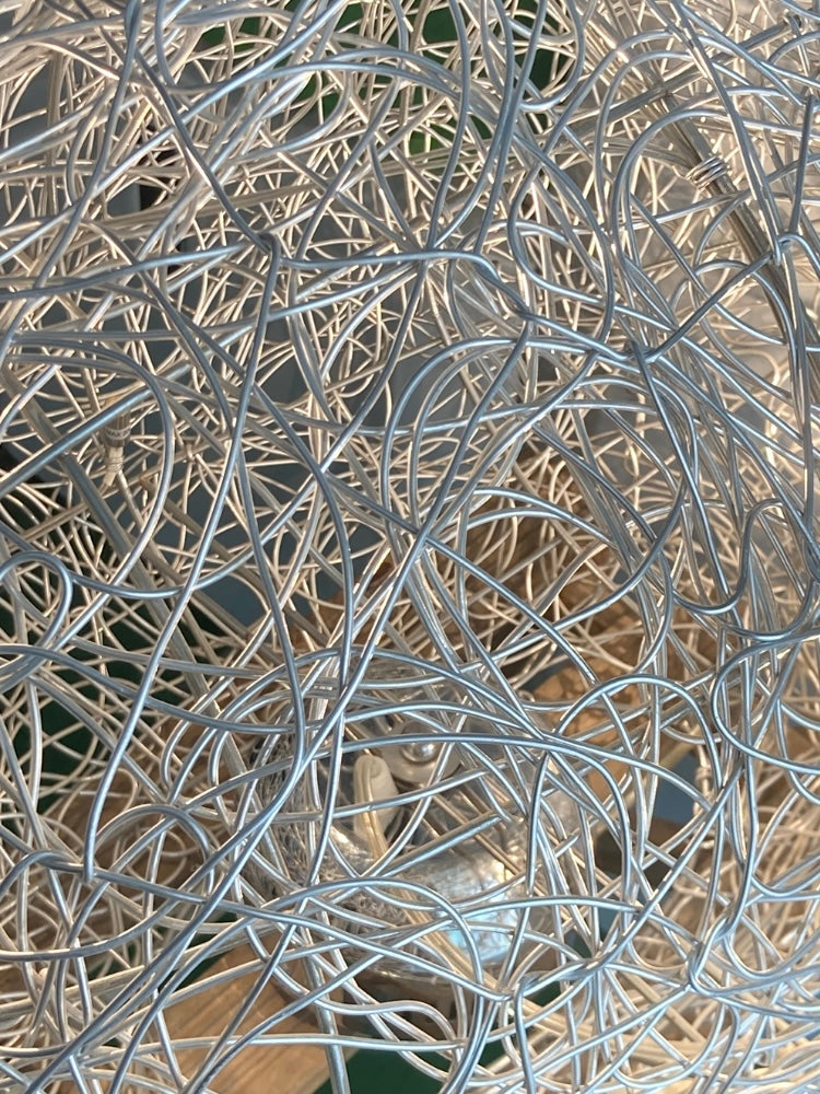 Grande lampada da terra vintage dei primi anni 2000 interamente realizzata con filo in metallo intrecciato in stile simile alla ‘Fil de Fer’ di Catellani and Smith.