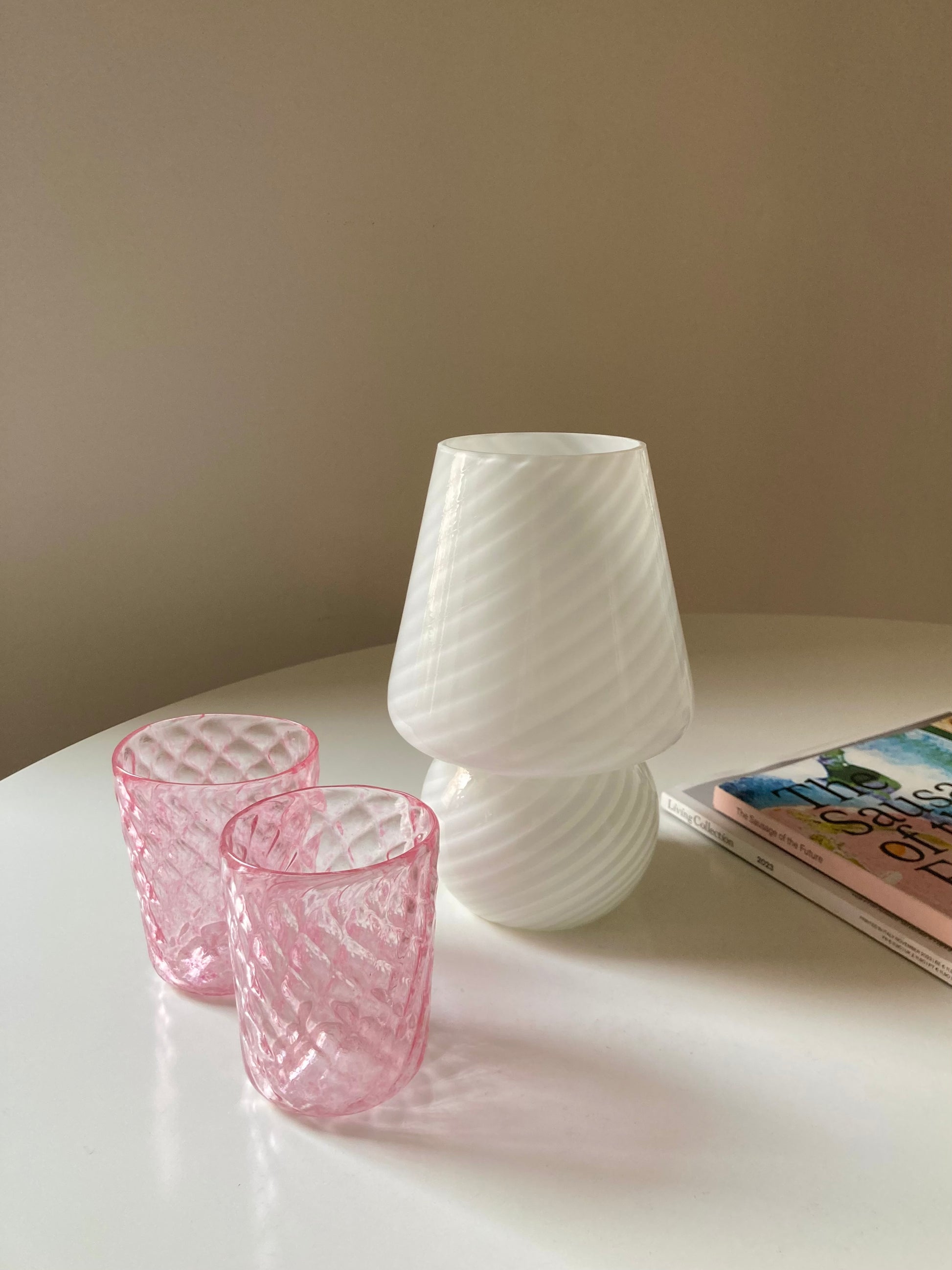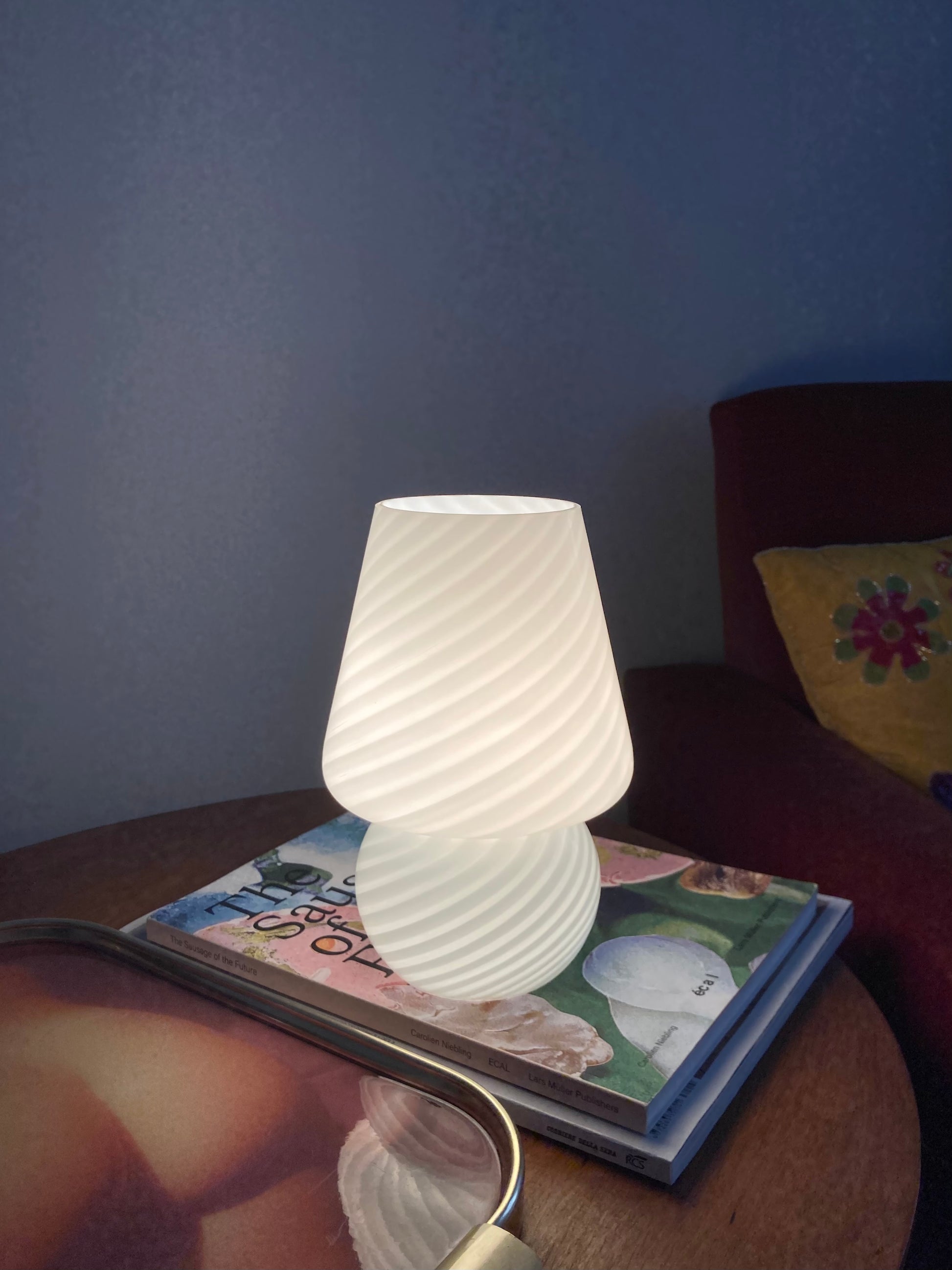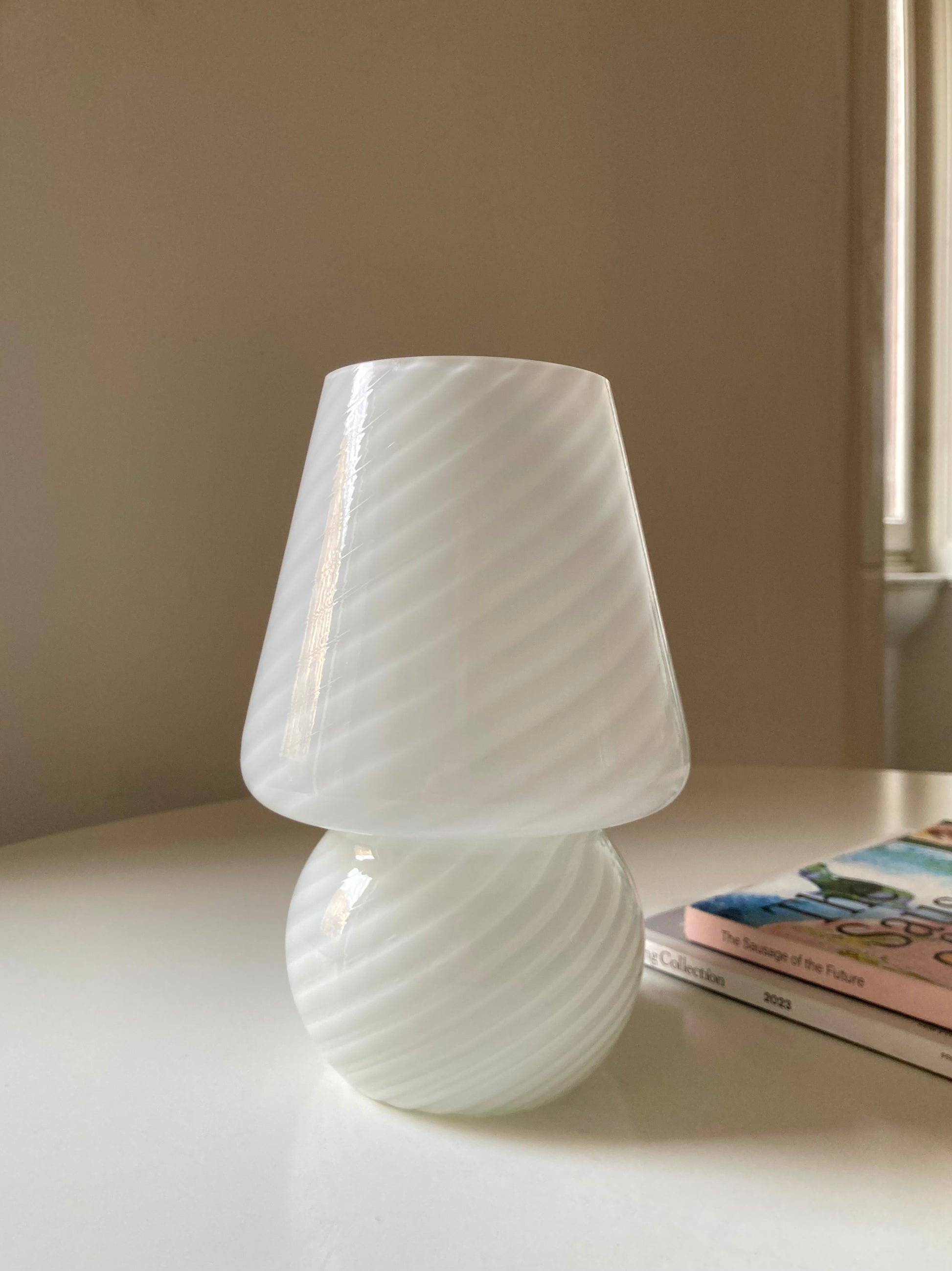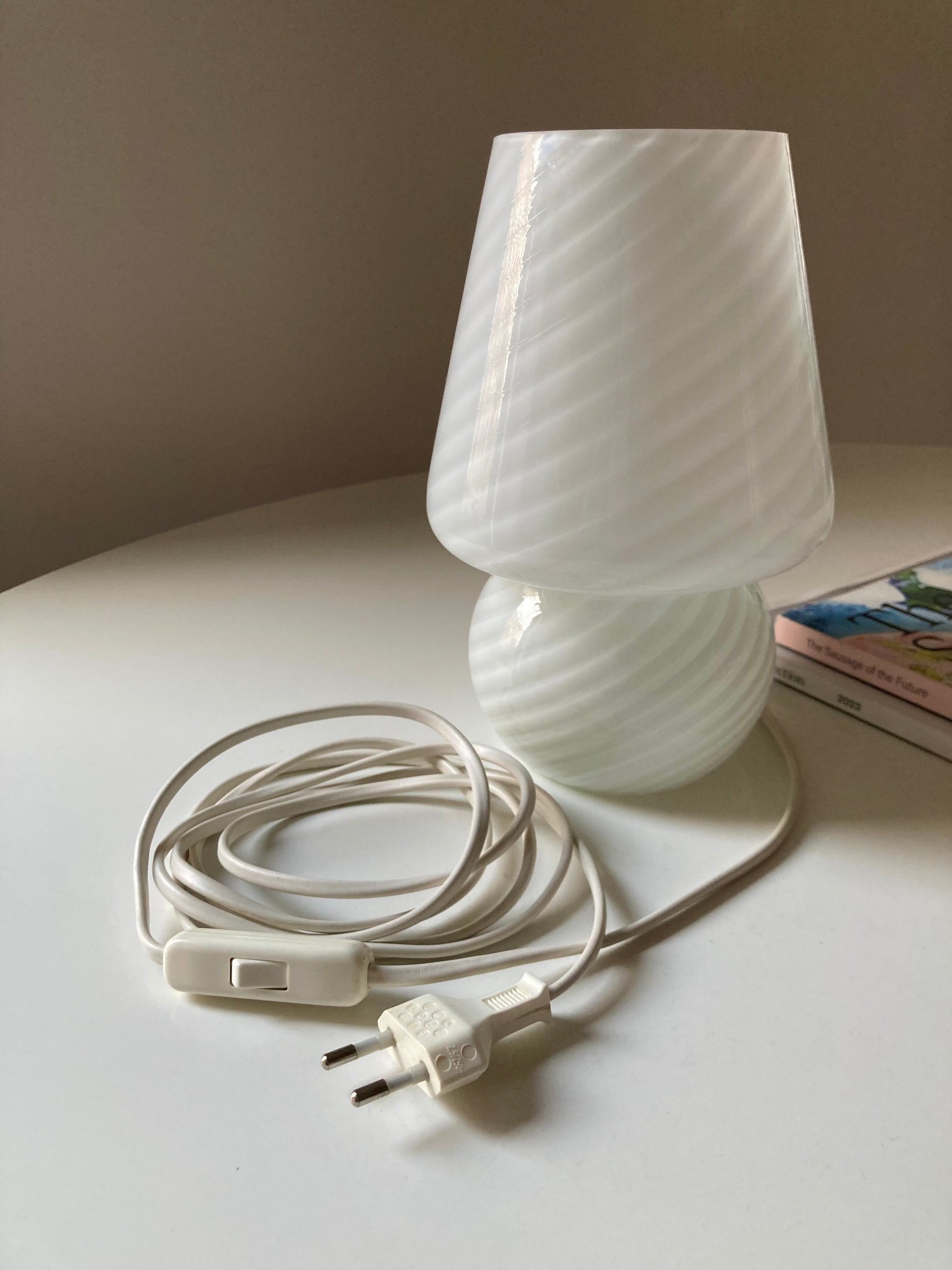 Lampada da comodino vintage a funghetto in vetro bianco con spirale 🤍