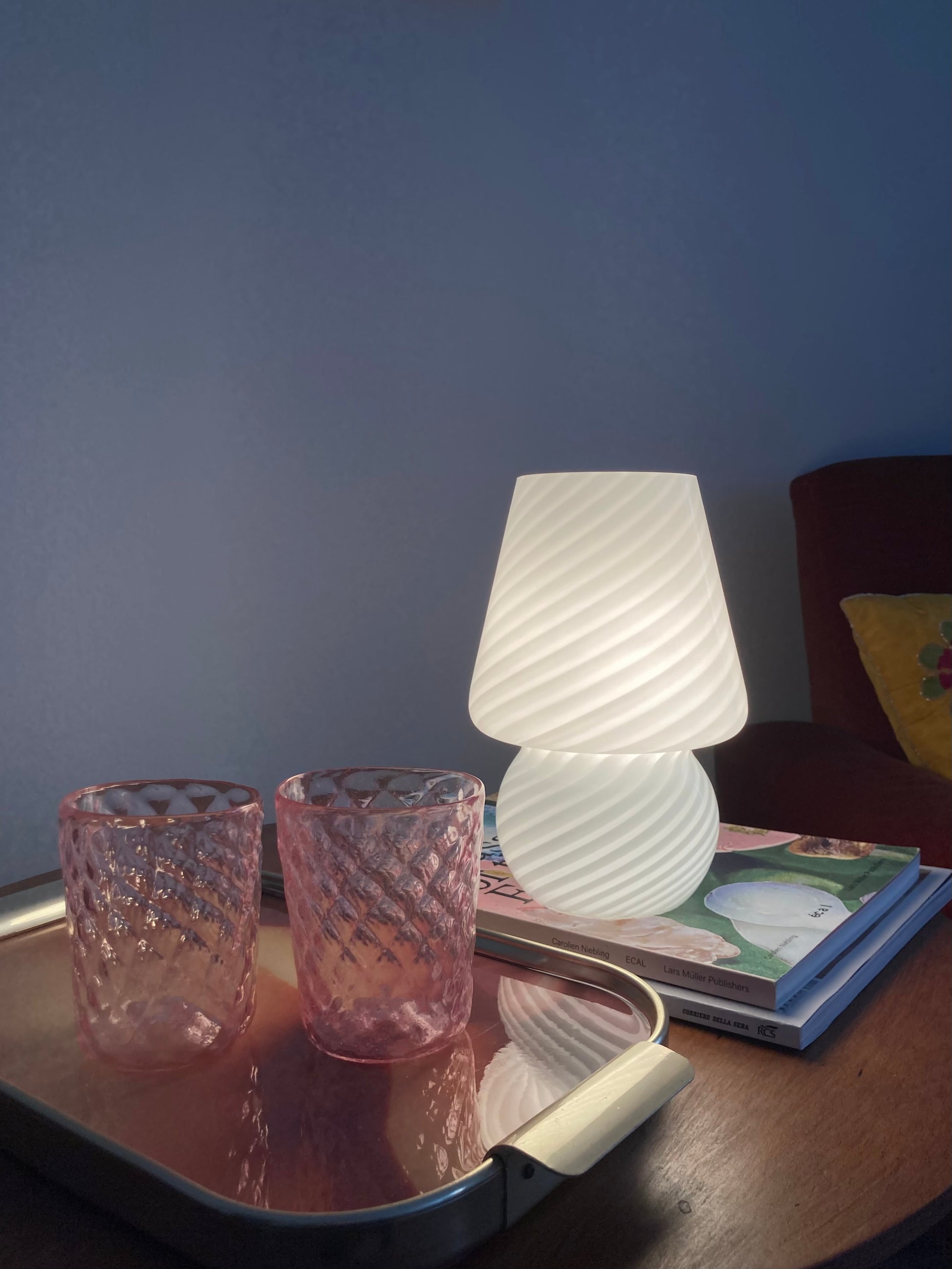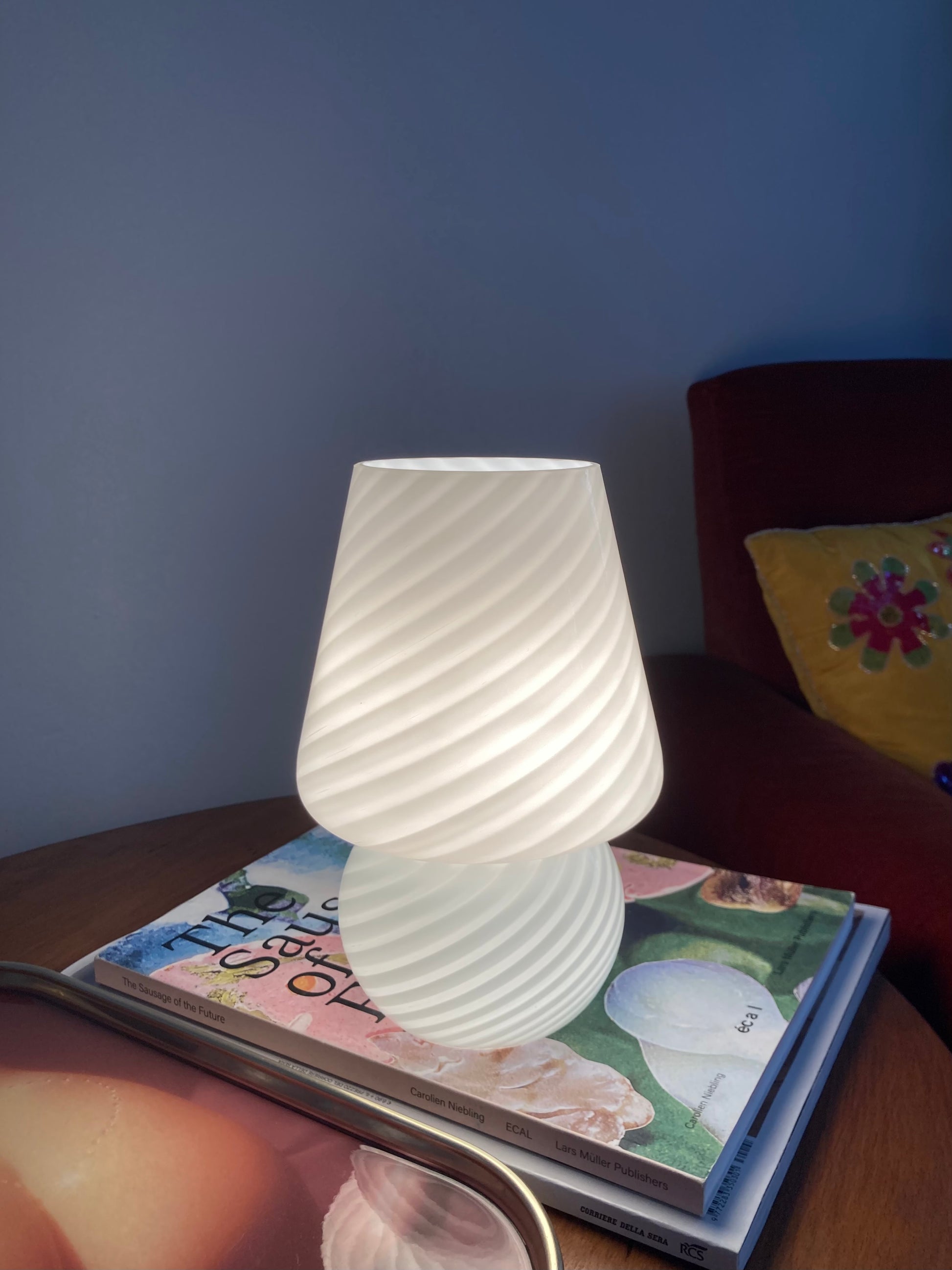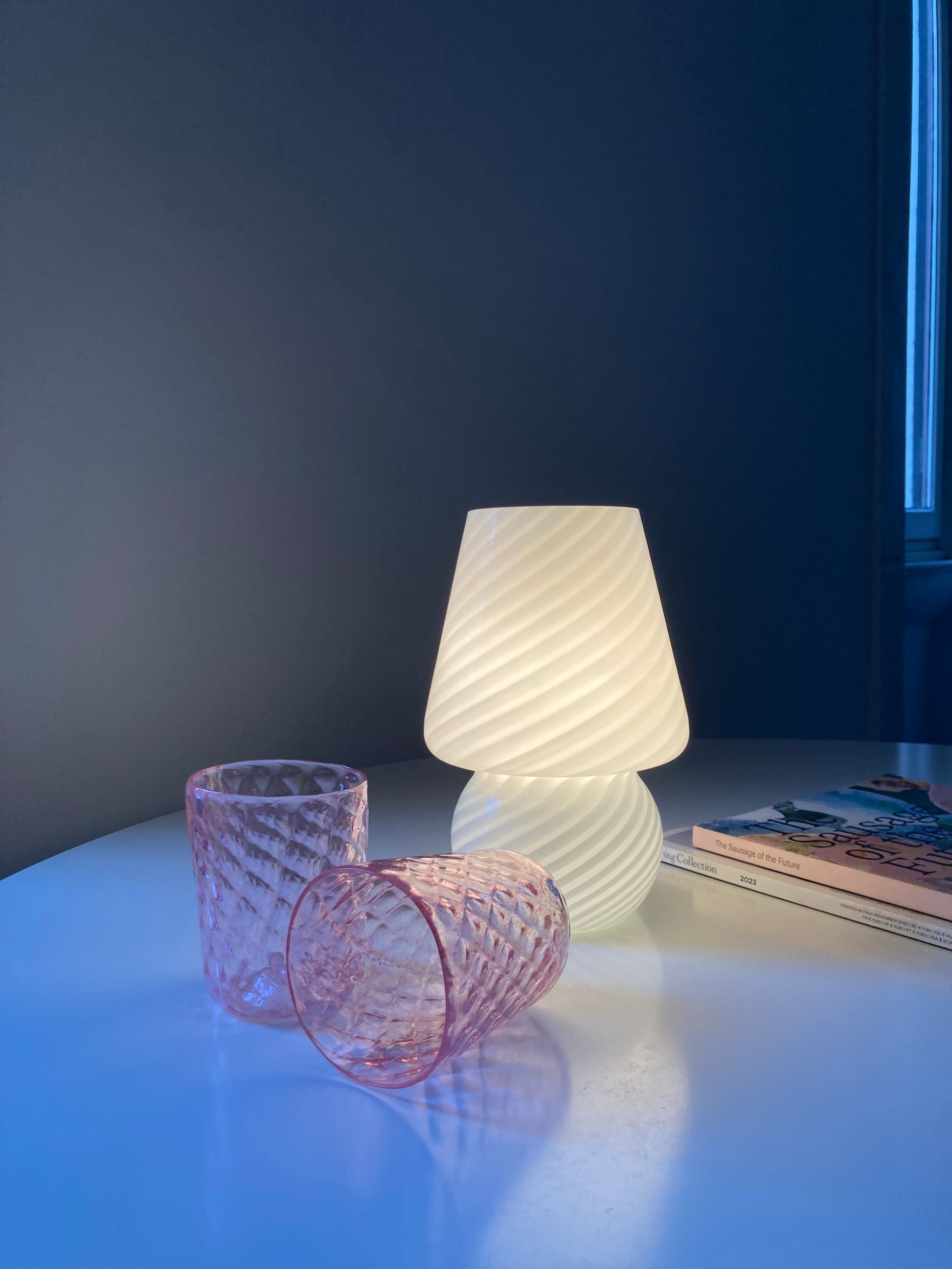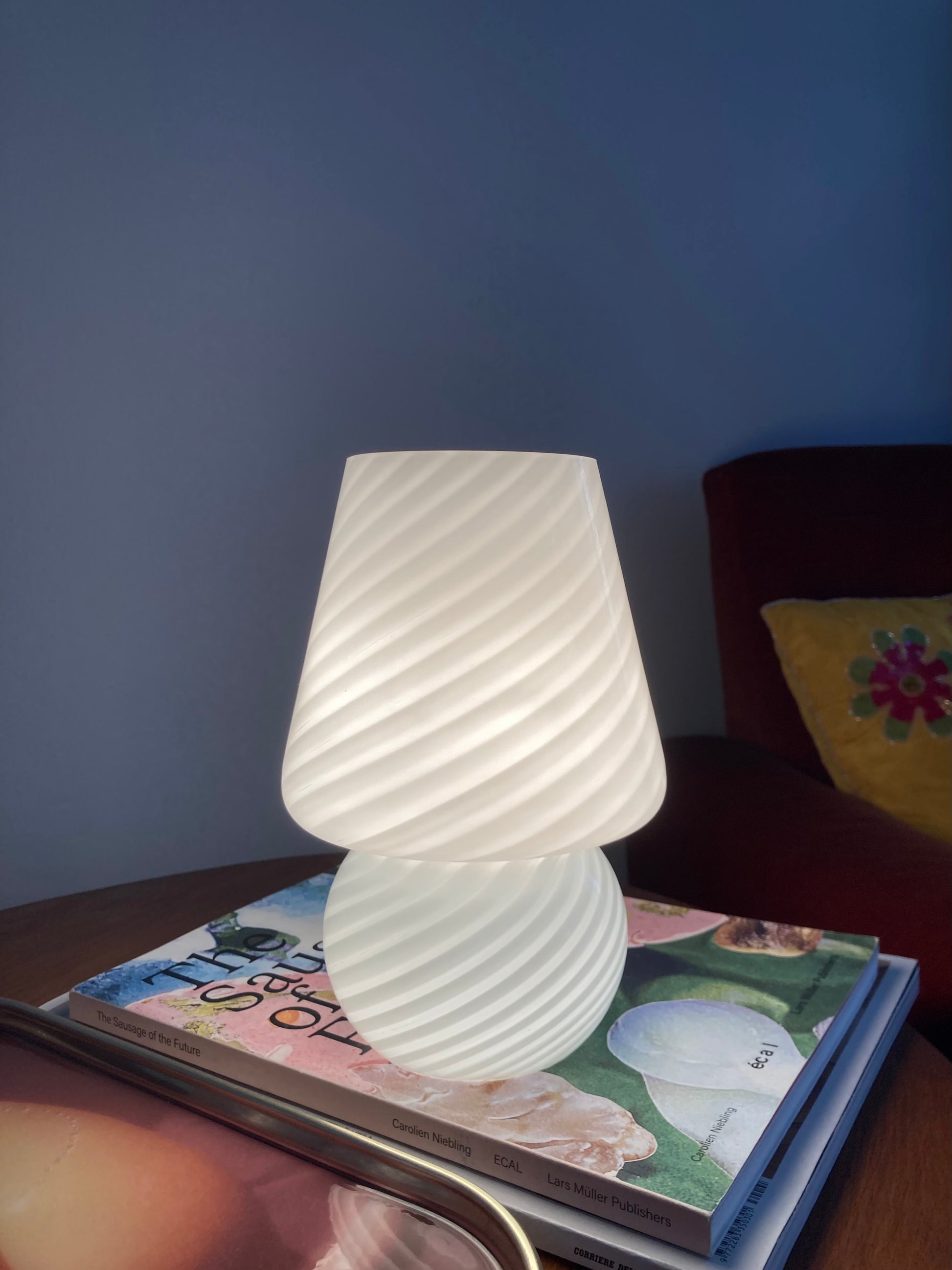Lampada da comodino vintage a funghetto in vetro bianco con spirale 🤍