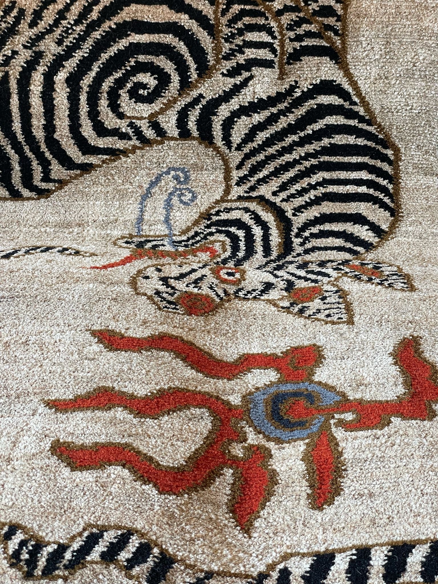 Tappeto tibetano vintage tessuto in fibra d’ortica con disegno tradizionale di tigri