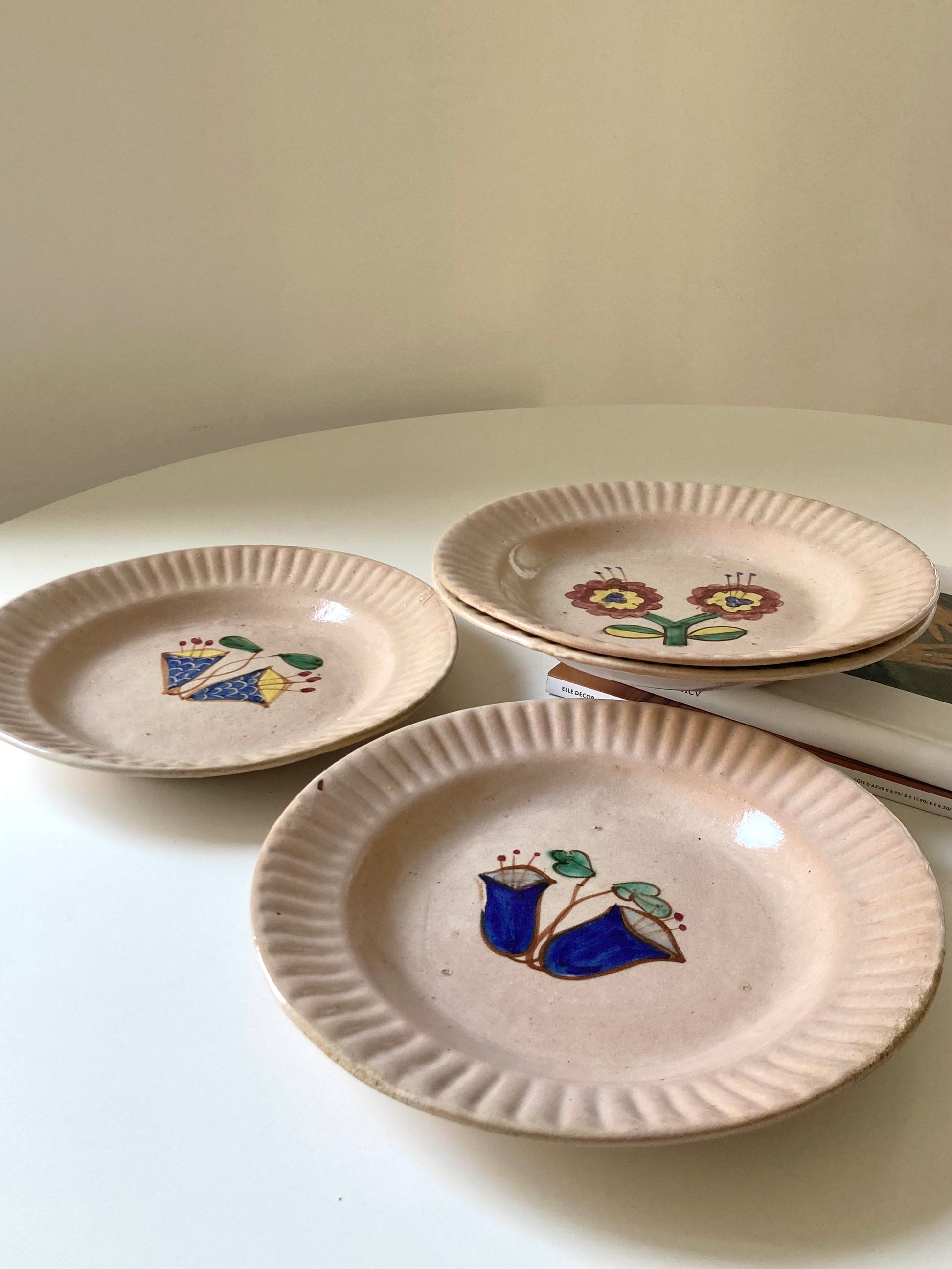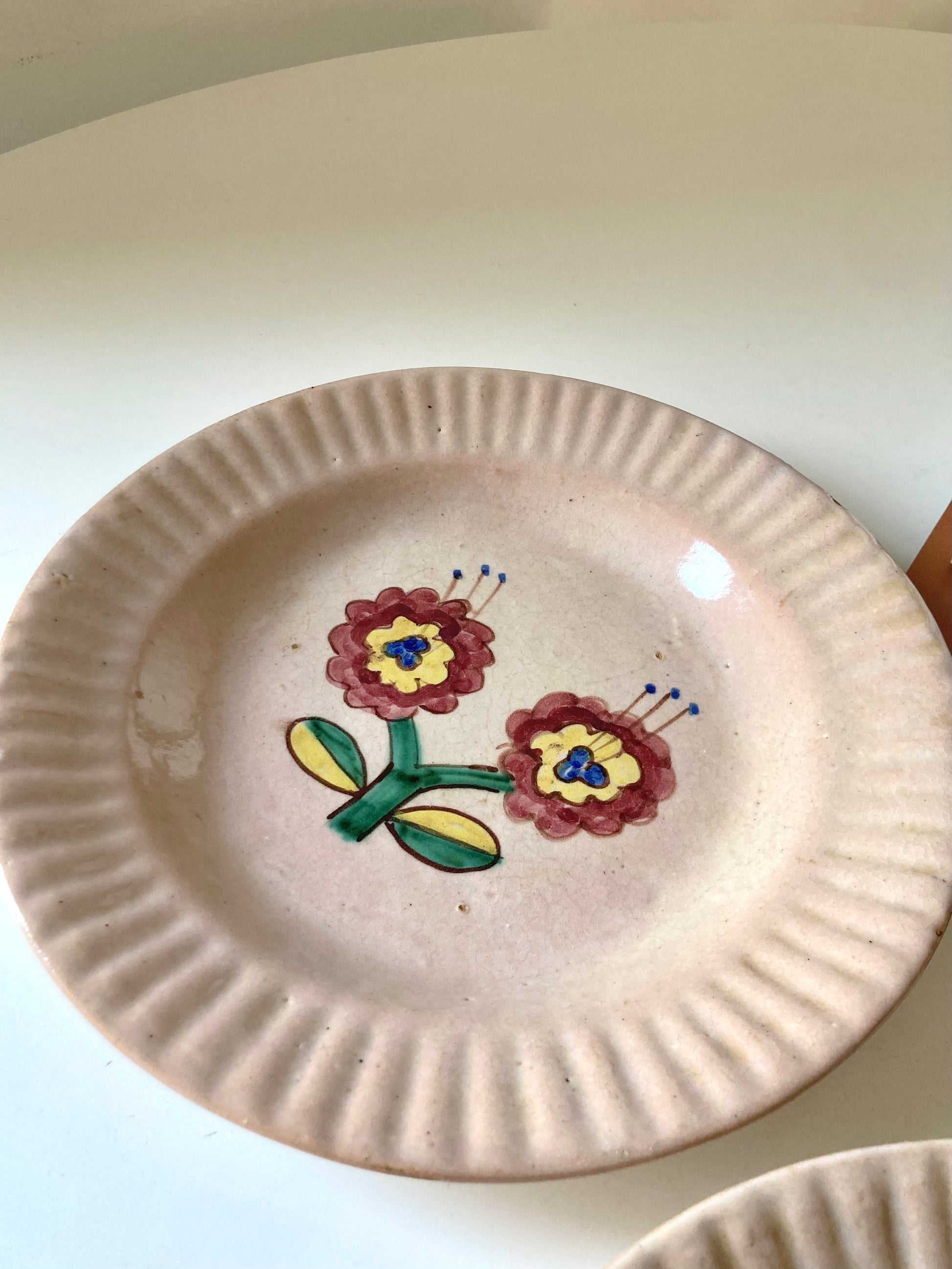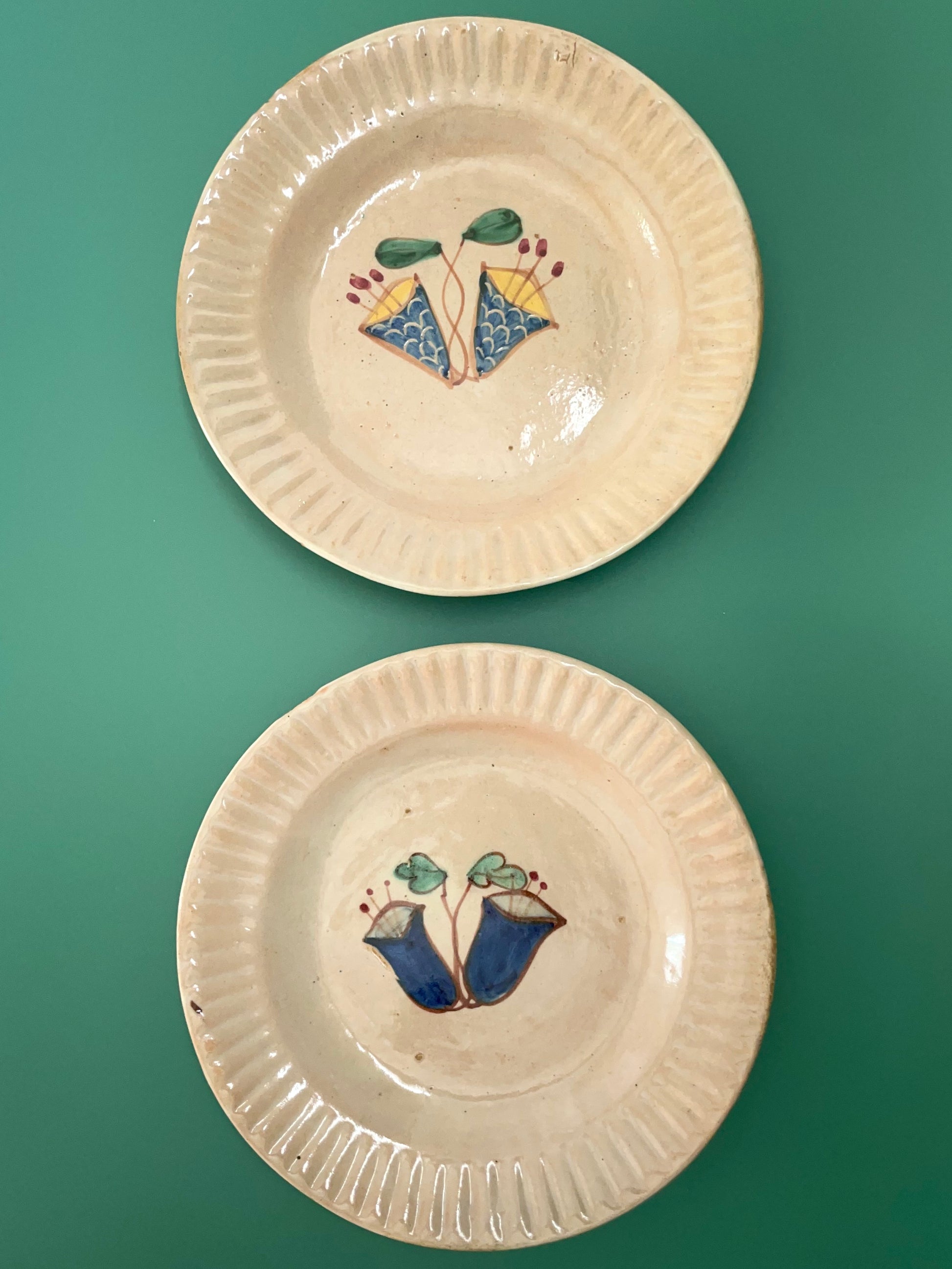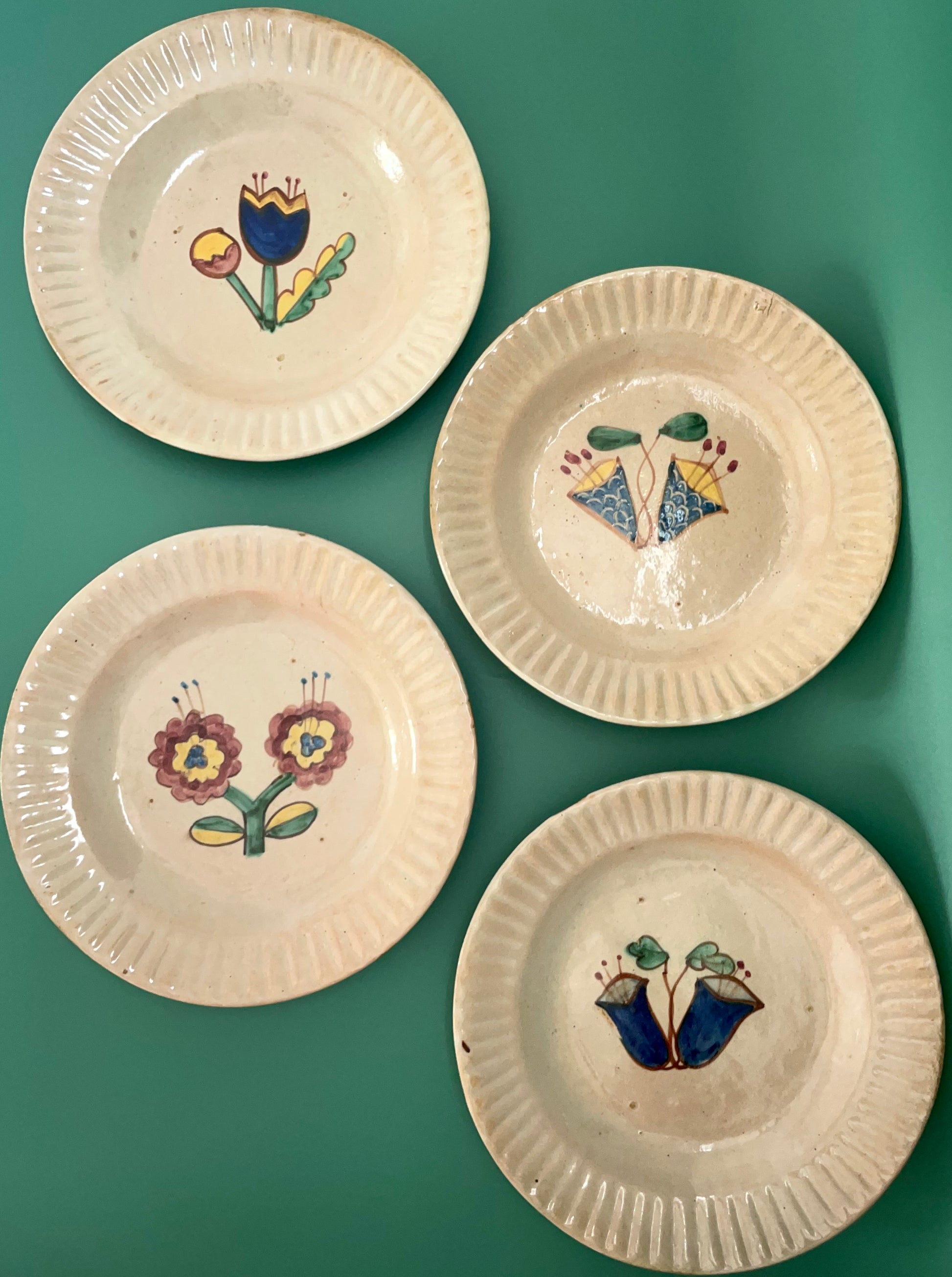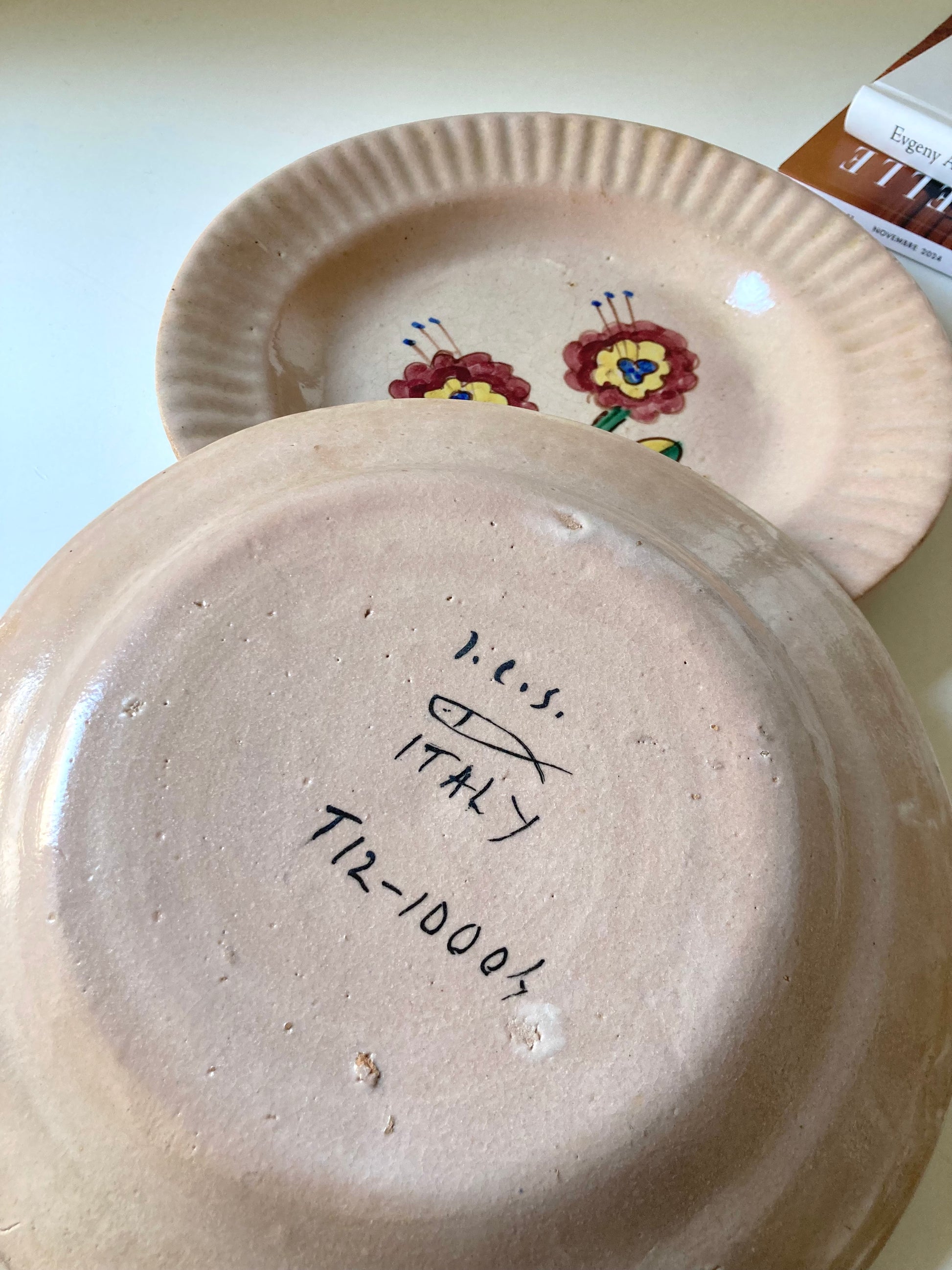 Set di 4 grandi piatti fondi in ceramica di Vietri realizzati e dipinti a mano con disegni di fiori e firmati I.C.S. (Industria Ceramica Salernitana) sul fondo 🌷🪻
