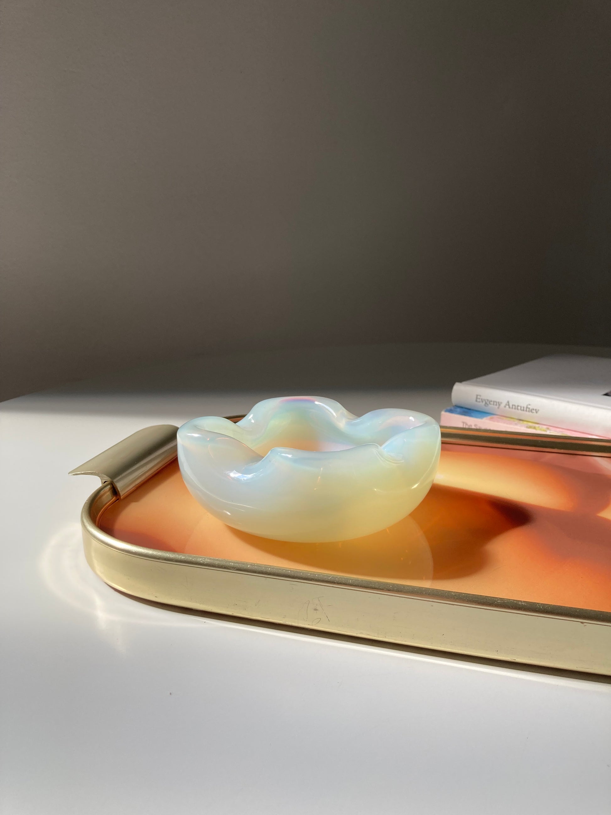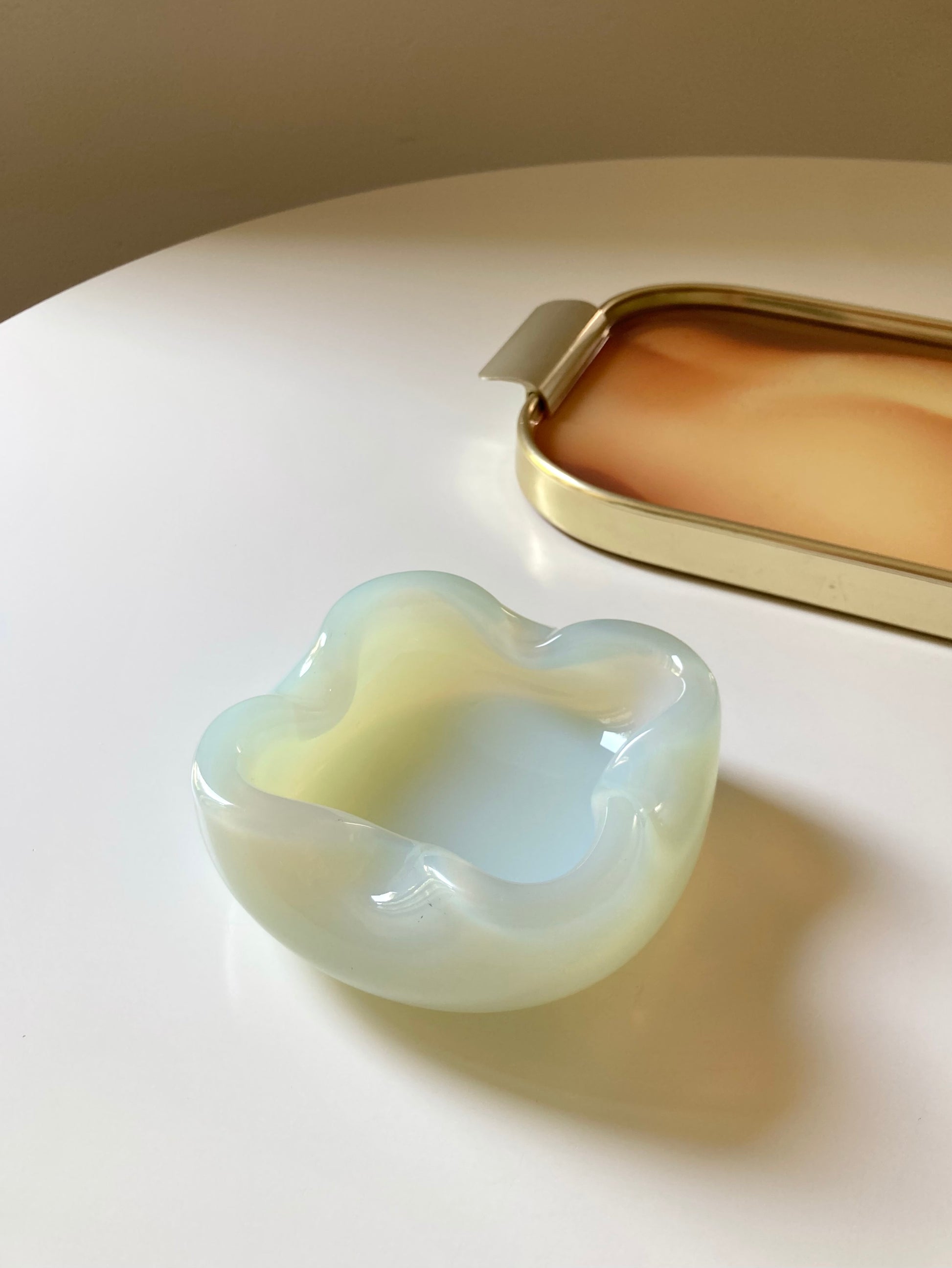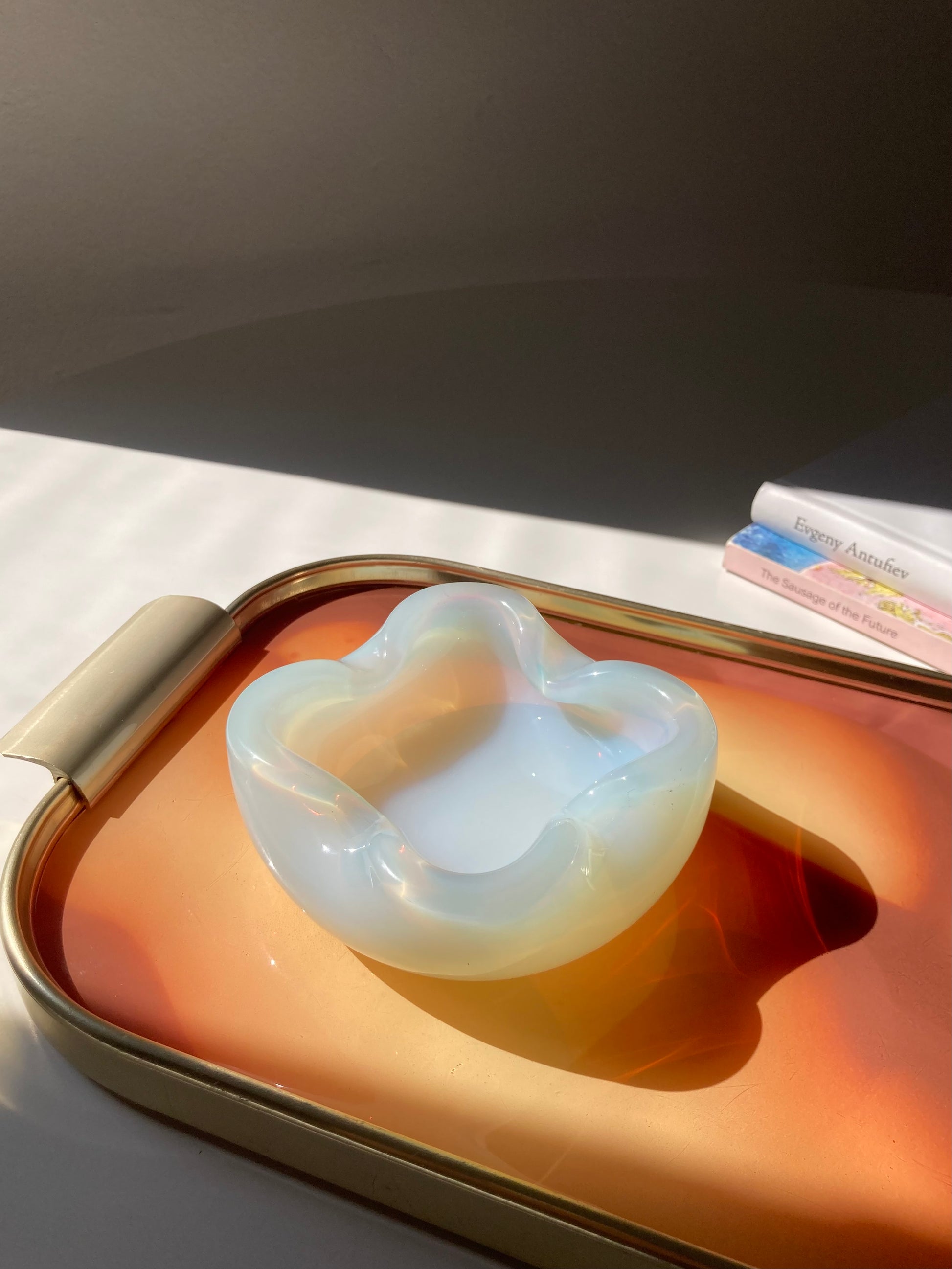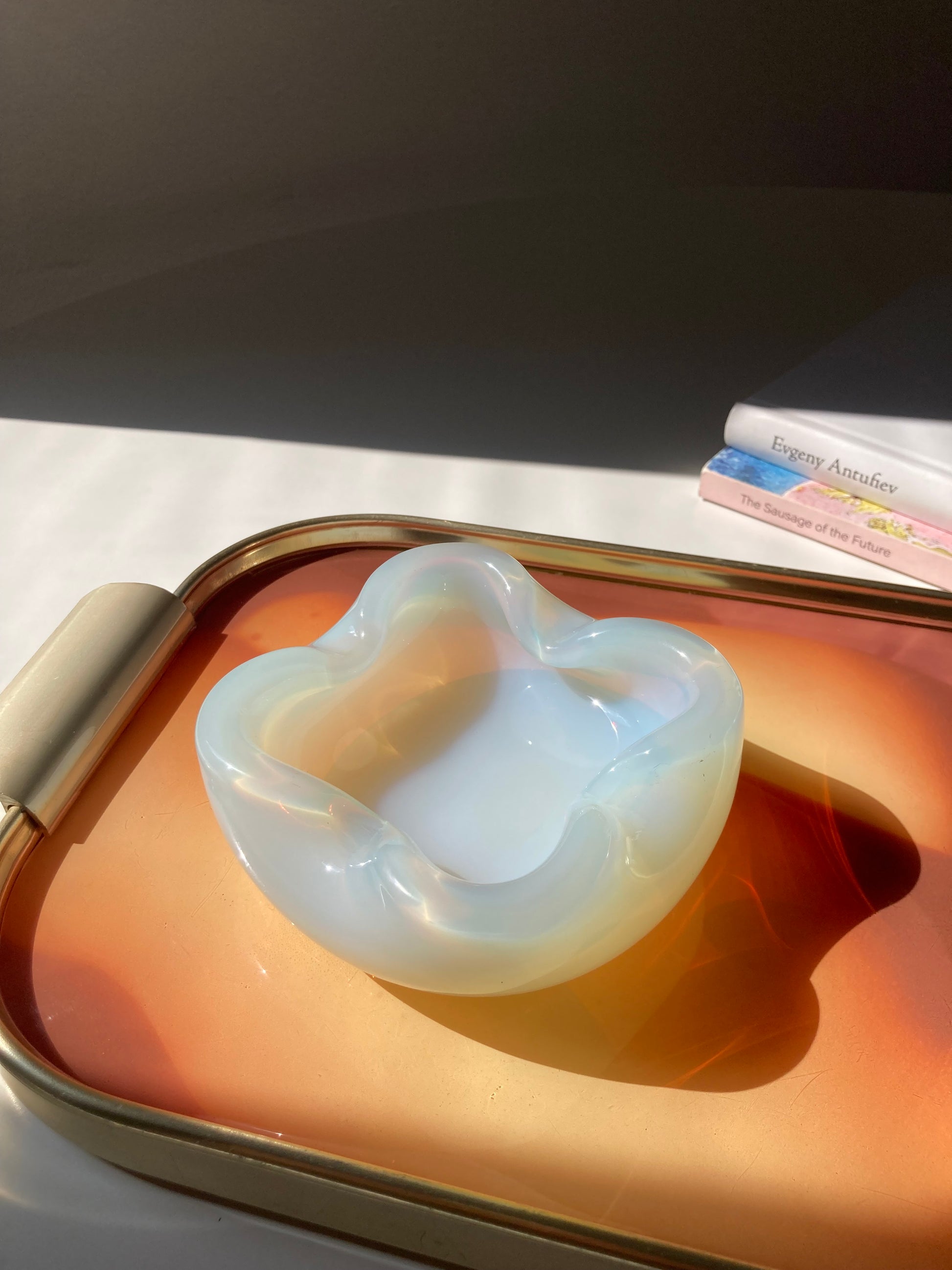 Piccolo e meraviglioso posacenere vintage di Murano lavorato a mano in vetro bianco opalino con sfumature e riflessi cangianti 🤍✨