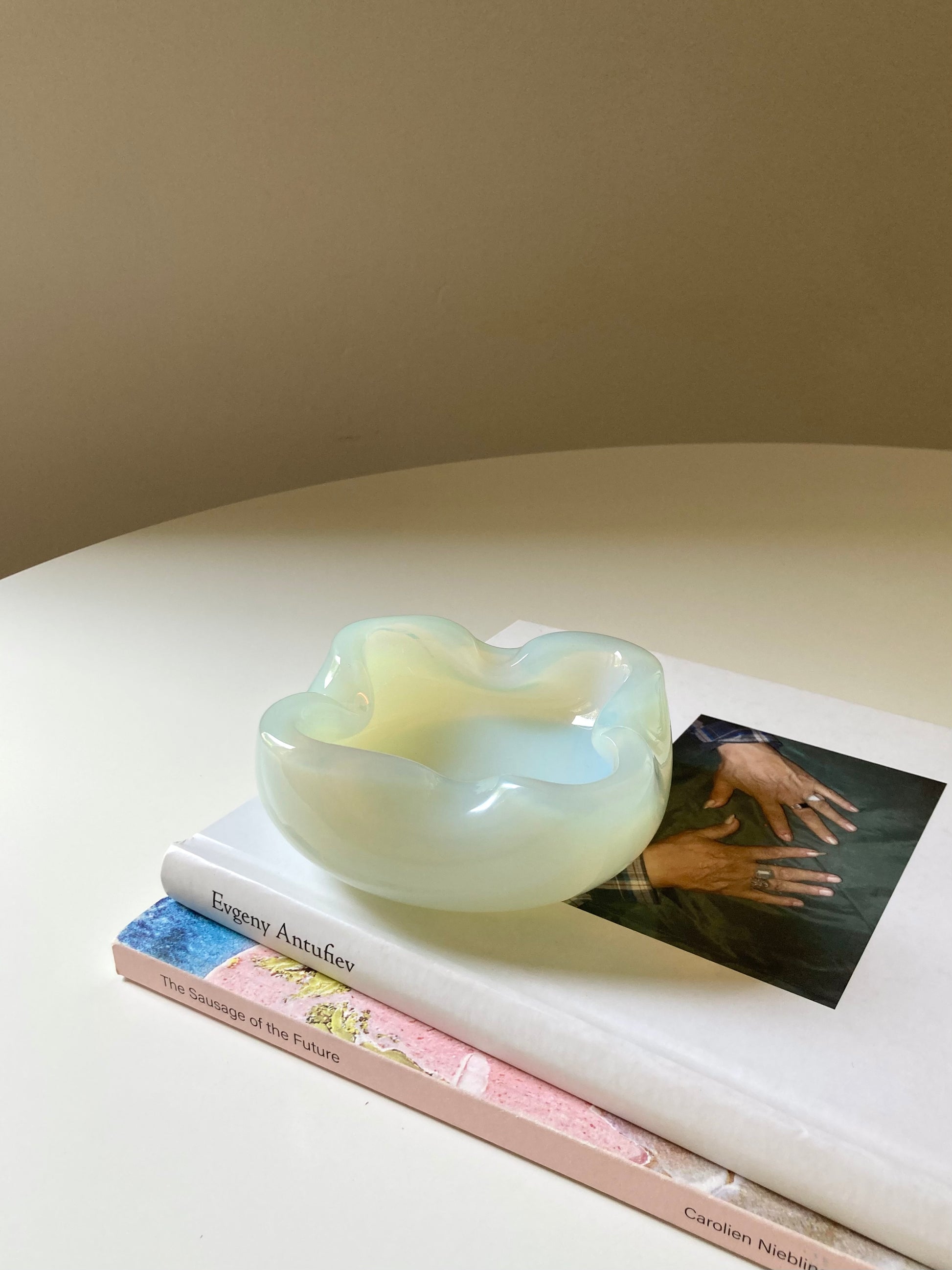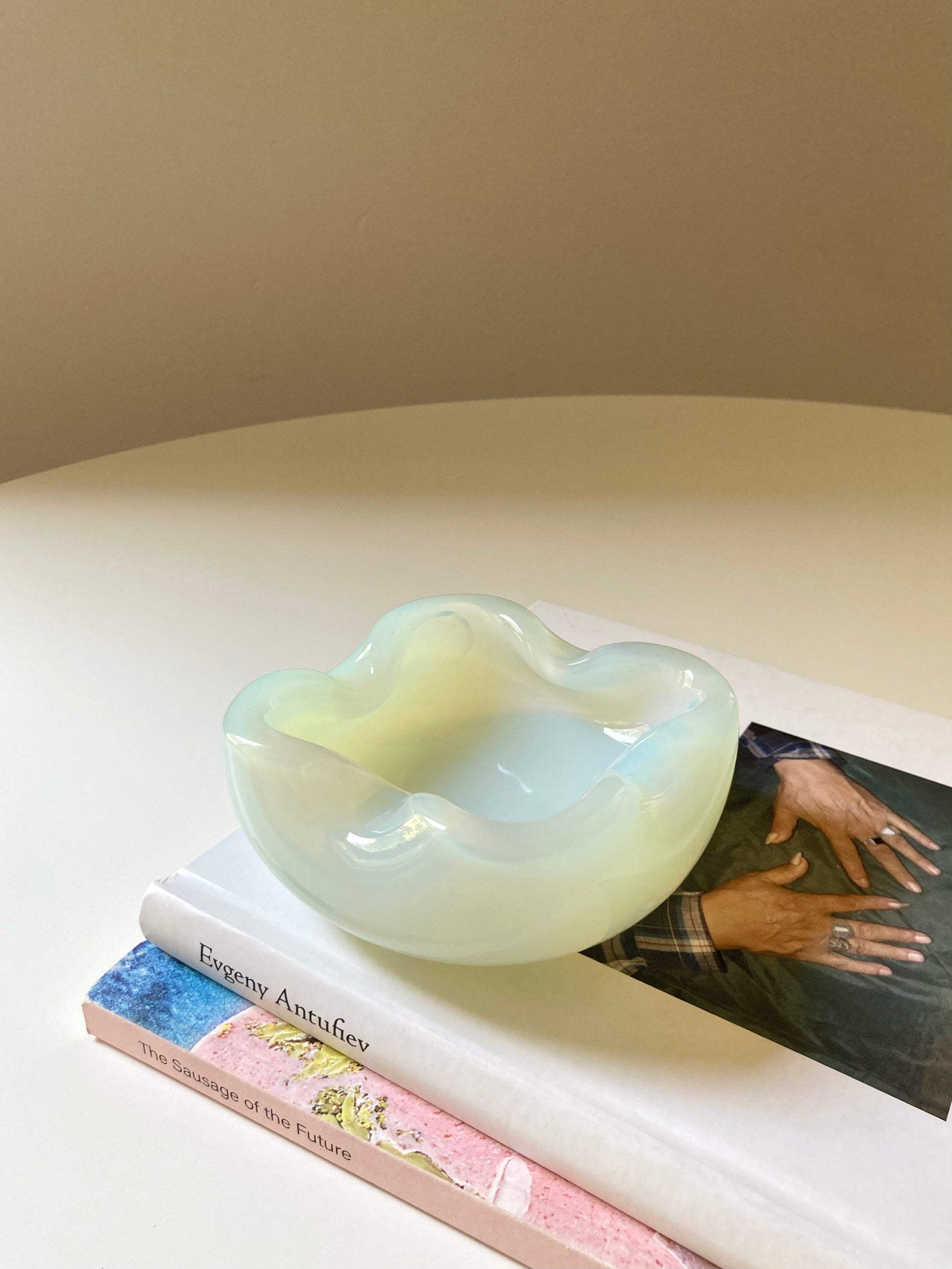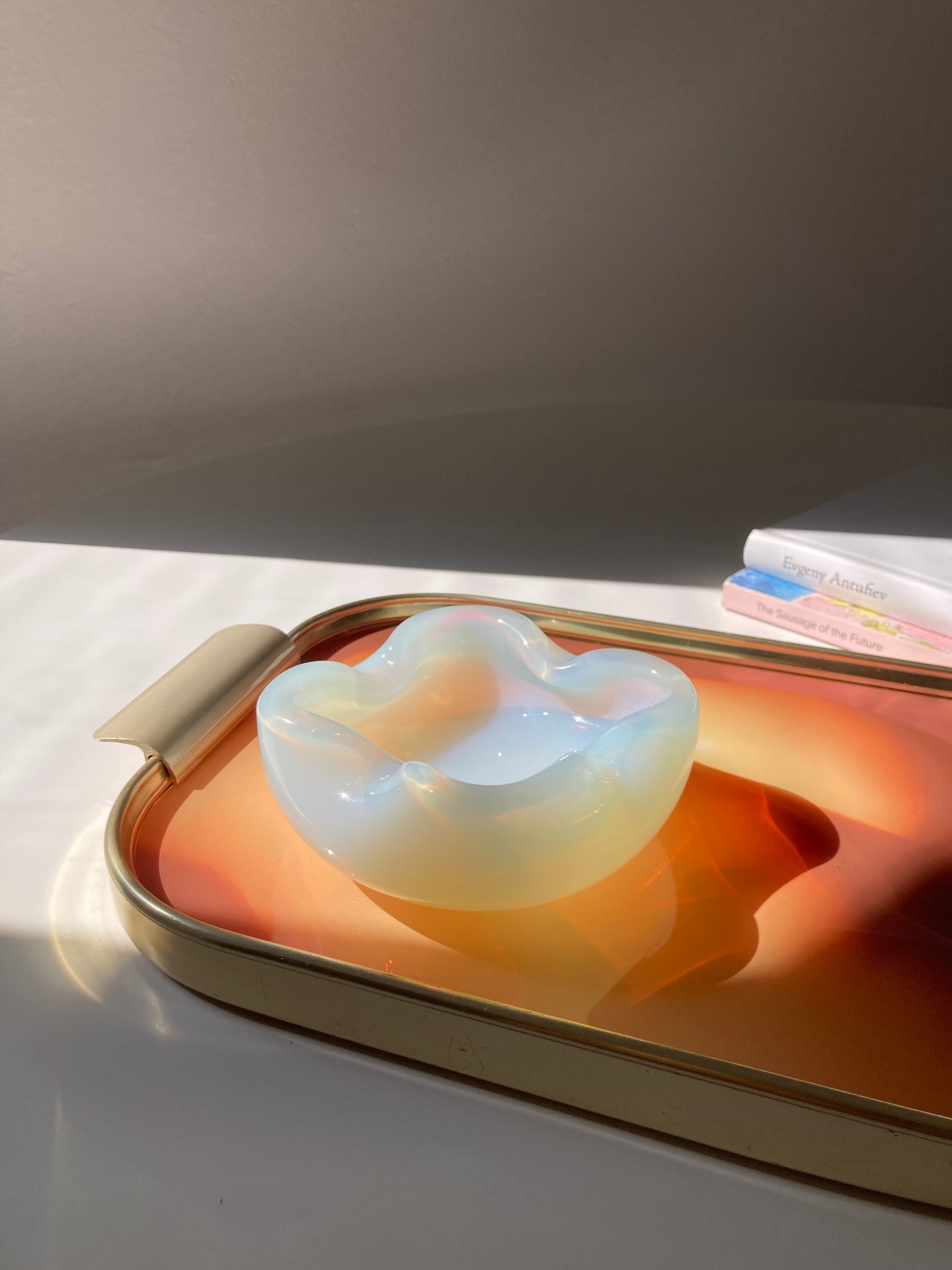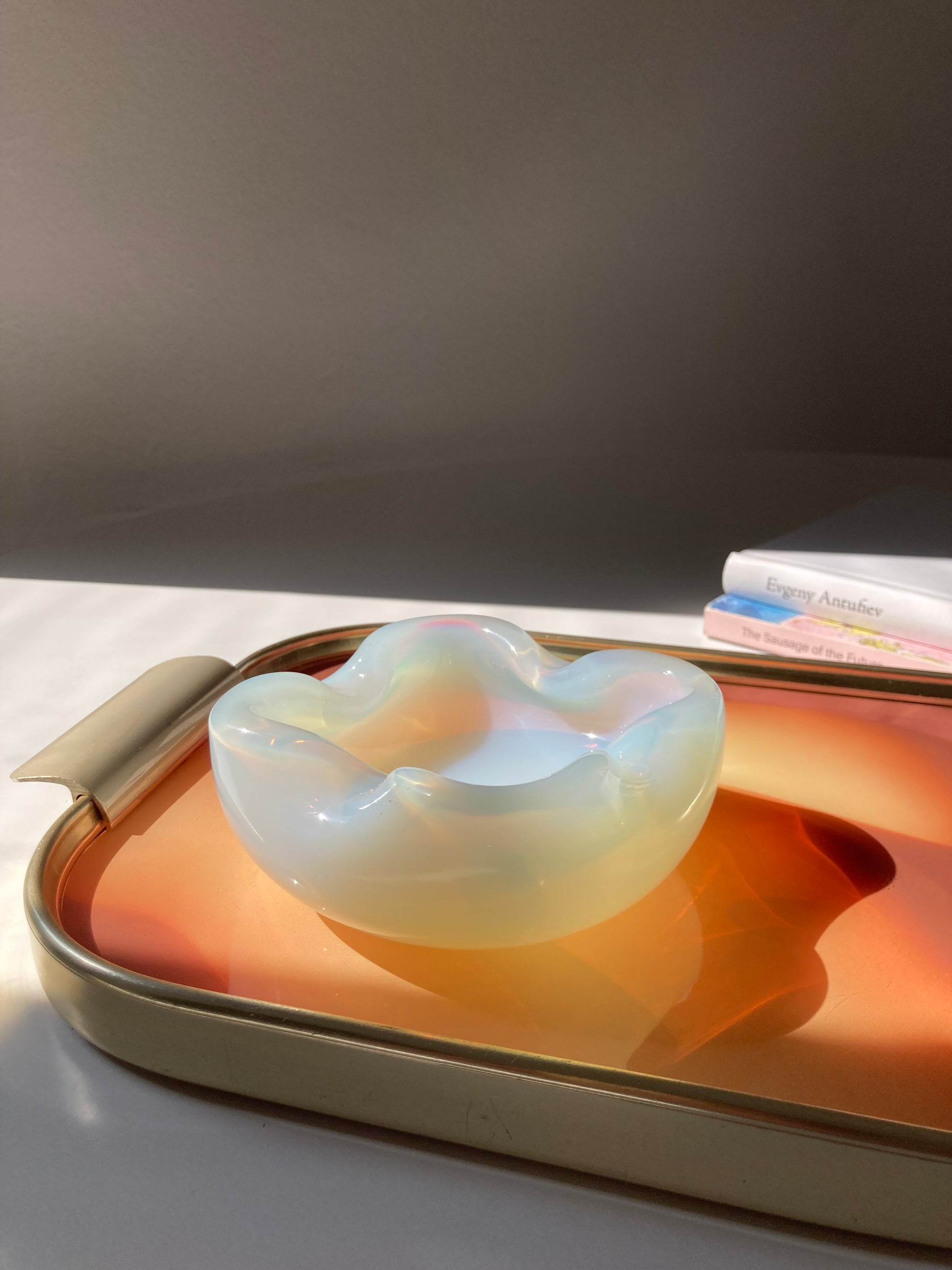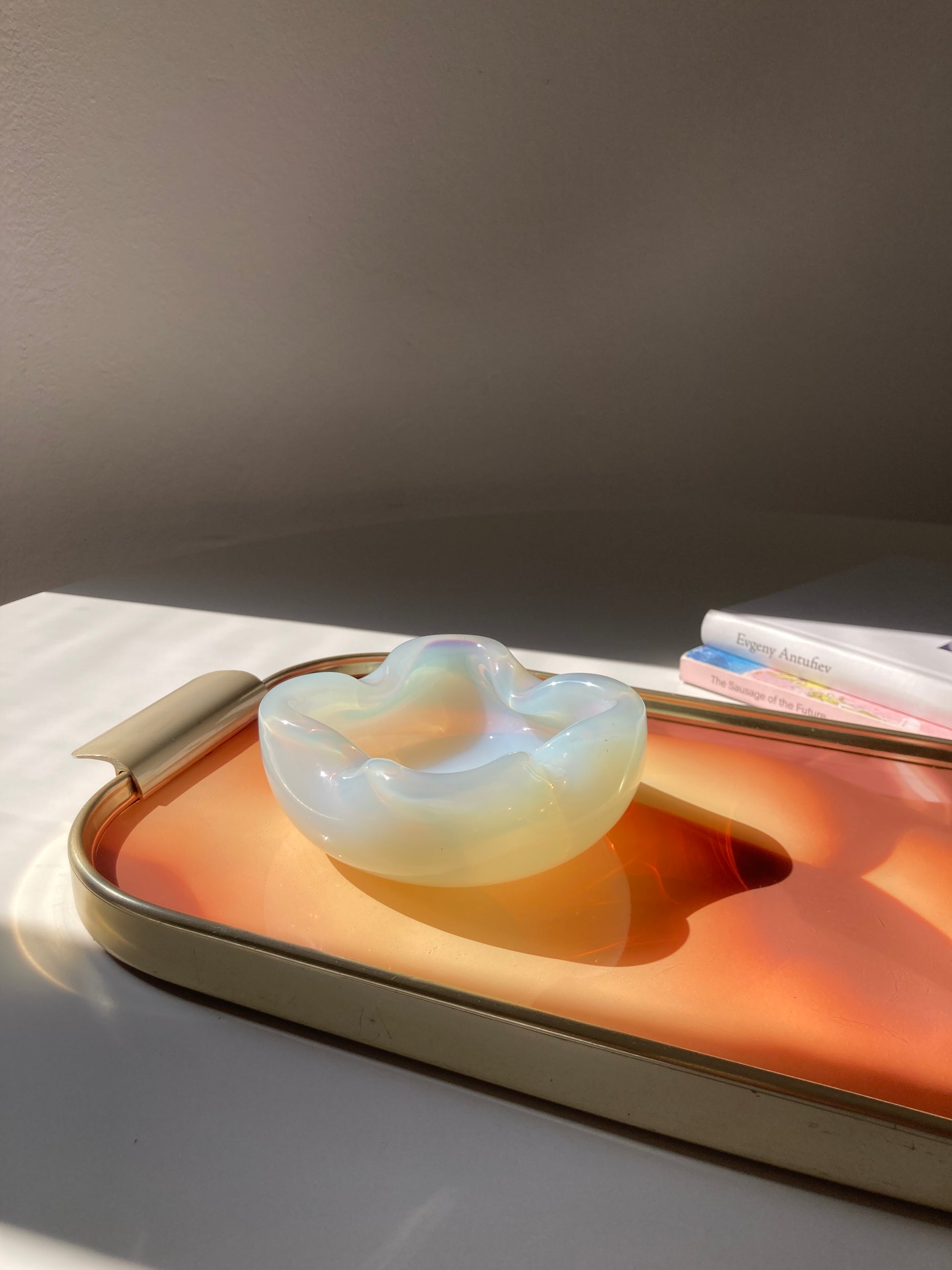 Piccolo e meraviglioso posacenere vintage di Murano lavorato a mano in vetro bianco opalino con sfumature e riflessi cangianti 🤍✨