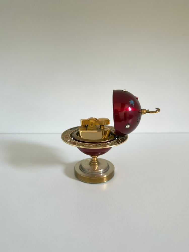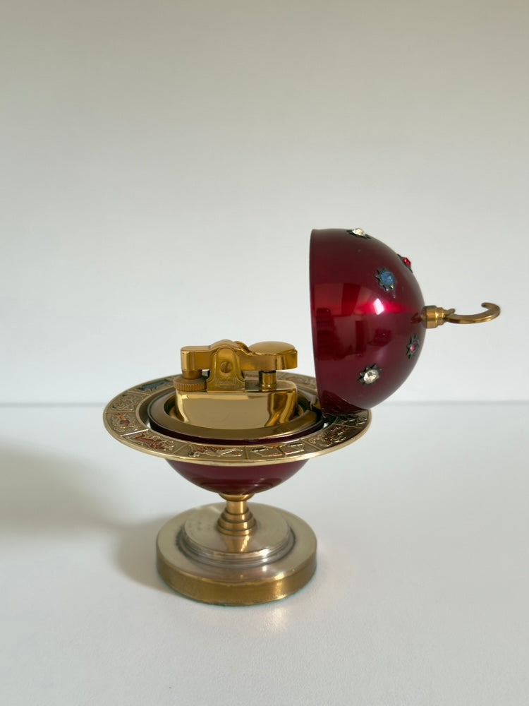Raro accendino da tavolo vintage in metallo a forma di pianeta e con anello esterno decorato con gli animali dell’oroscopo cinese 🪐❤️🔥