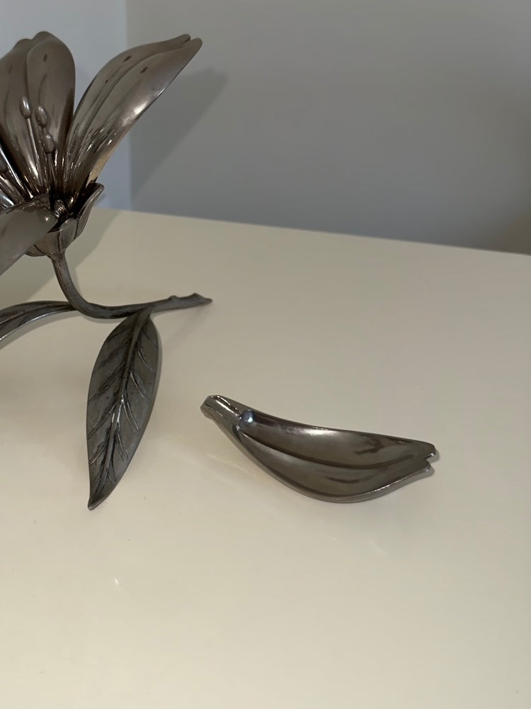 Grande fiore posacenere vintage in metallo con petali rimovibili che diventano posaceneri portatili 🌼