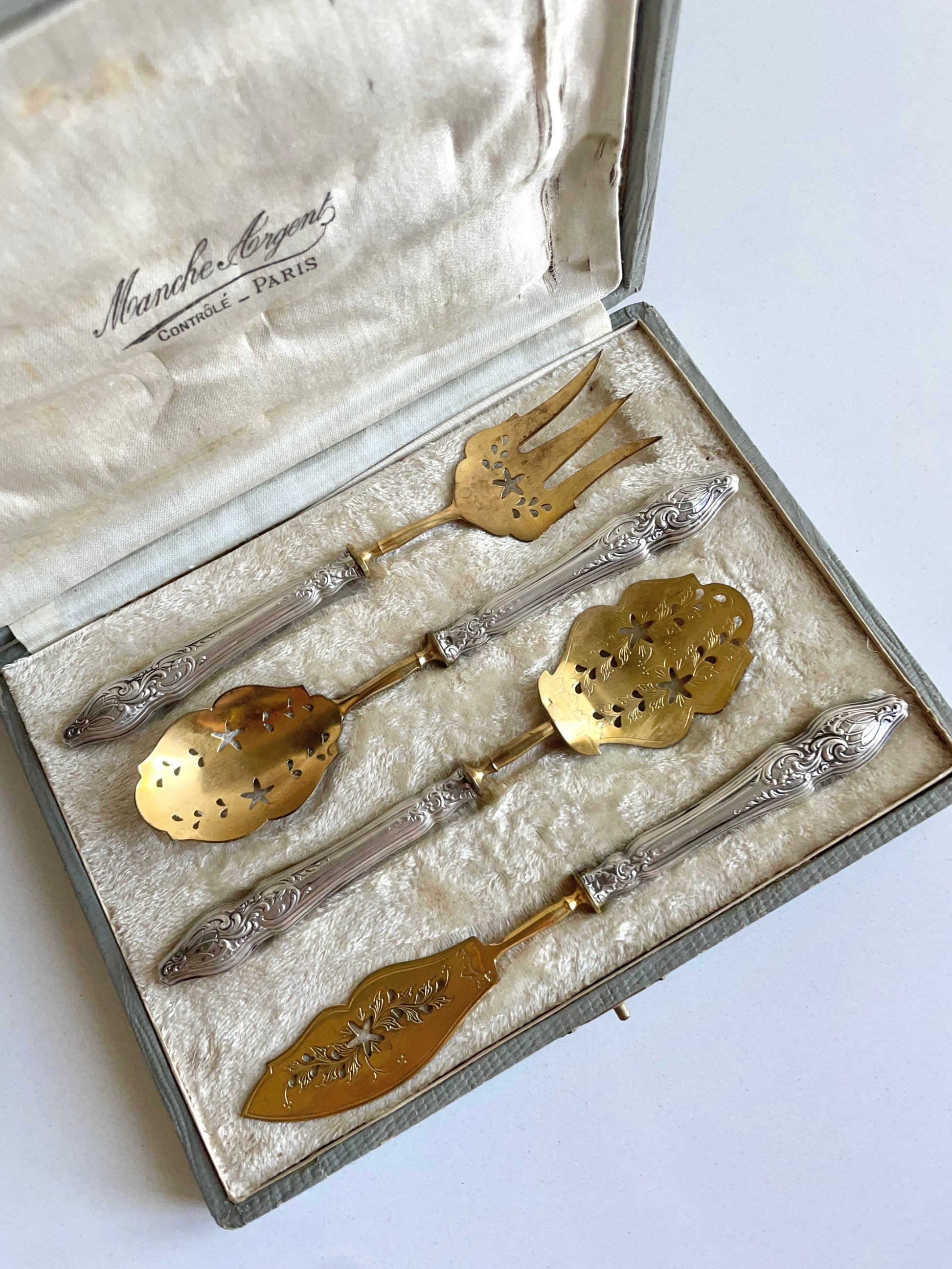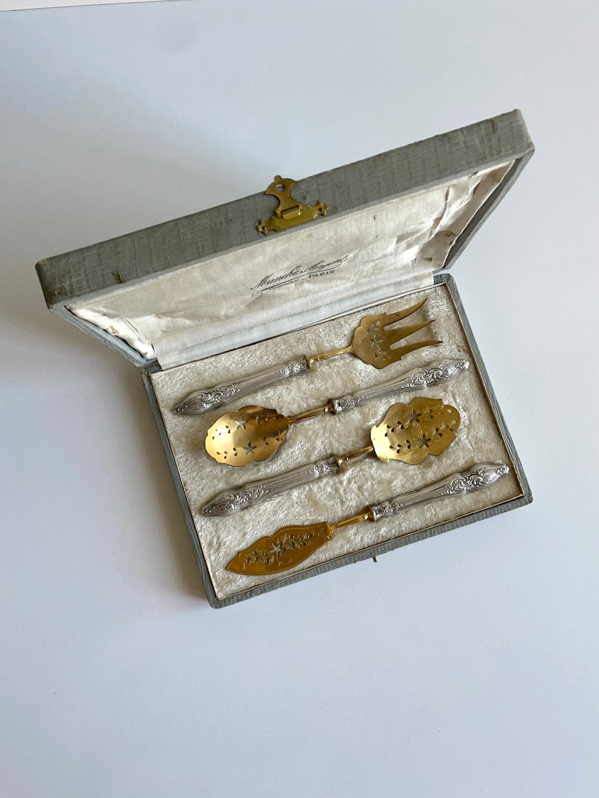 Set completo di 4 posate da antipasto vintage francesi accompagnate dal loro cofanetto originale ✨