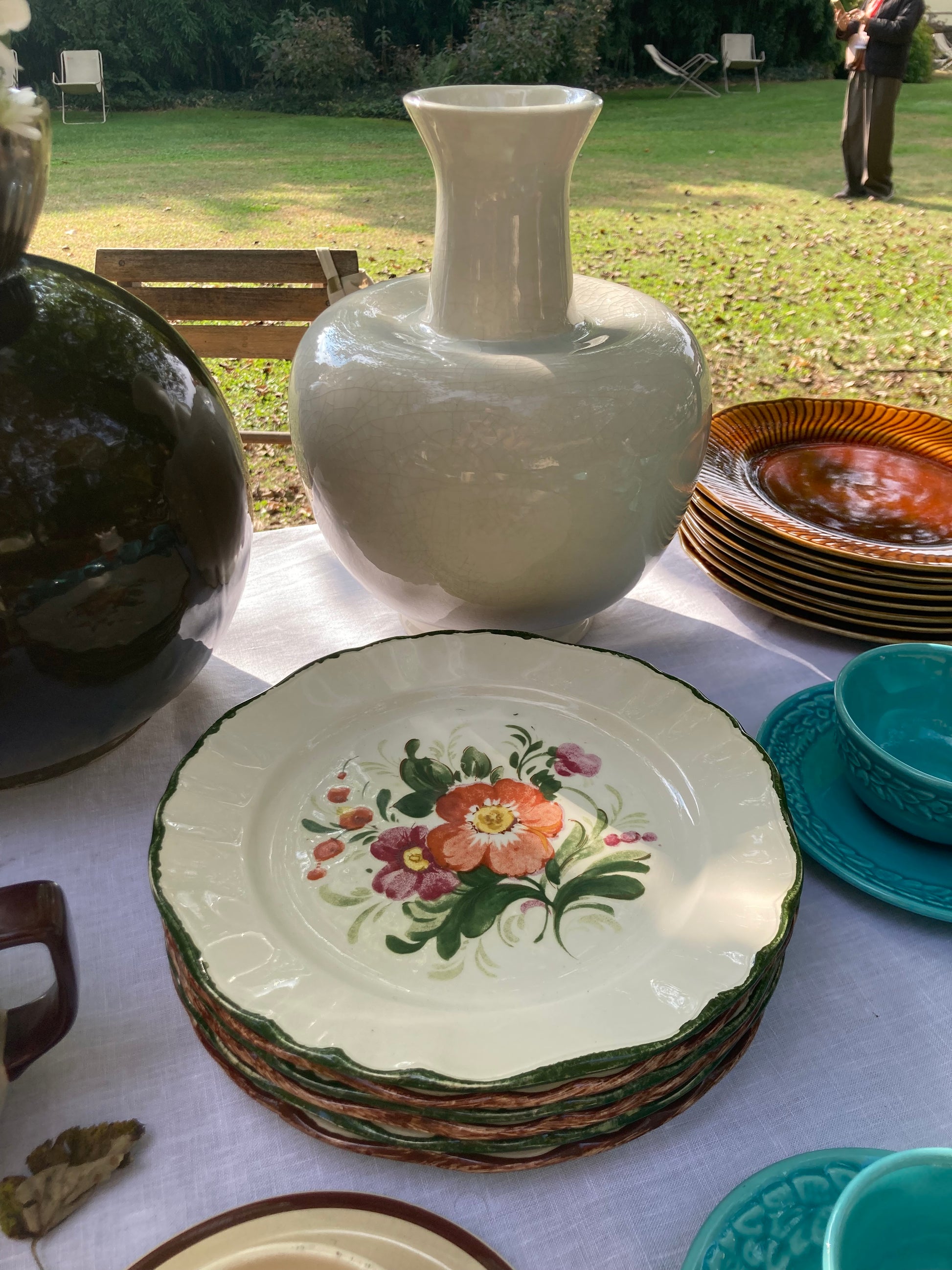 Composto da 3 piatti con bordo verde e 3 con bordo marrone.