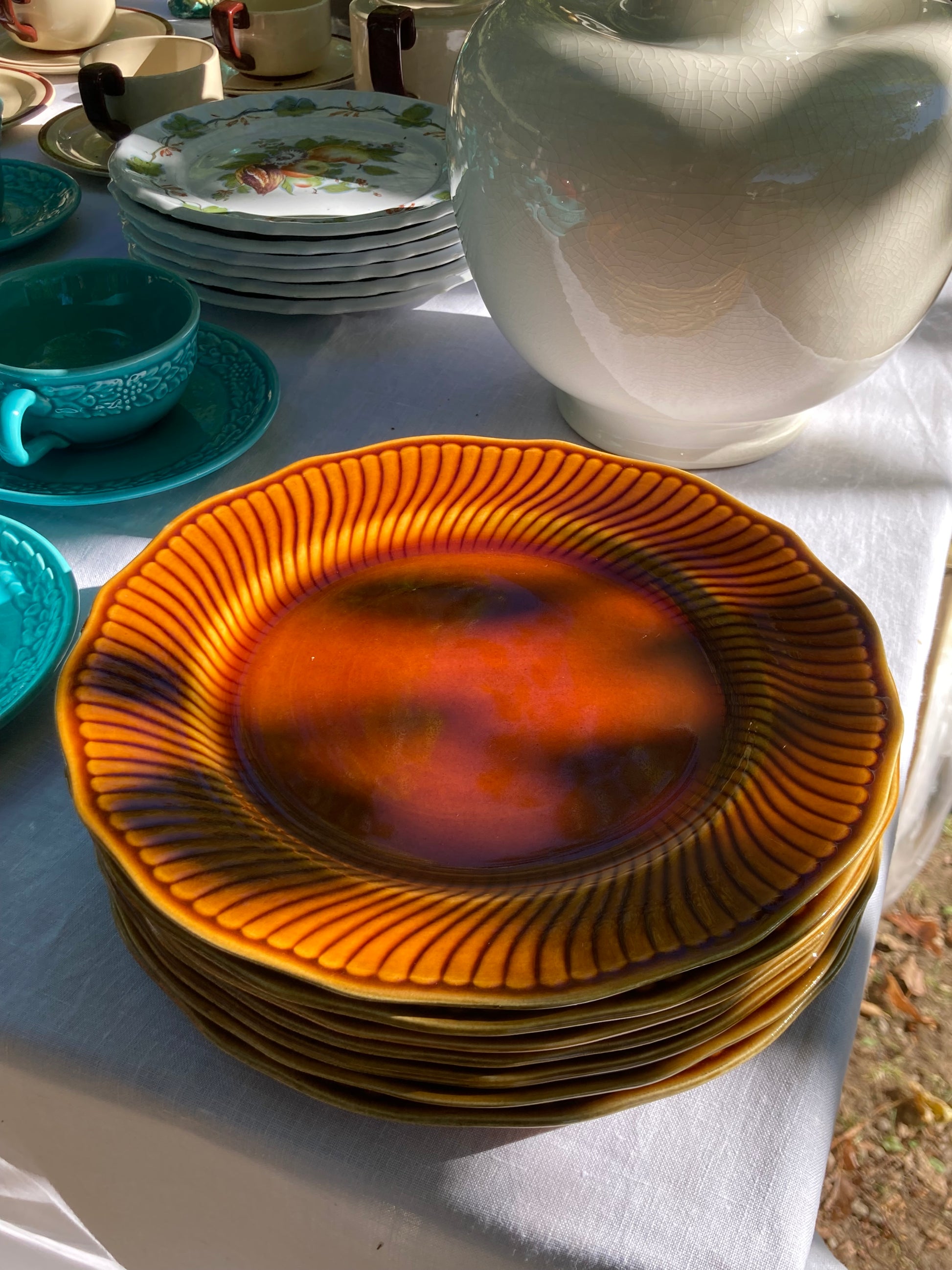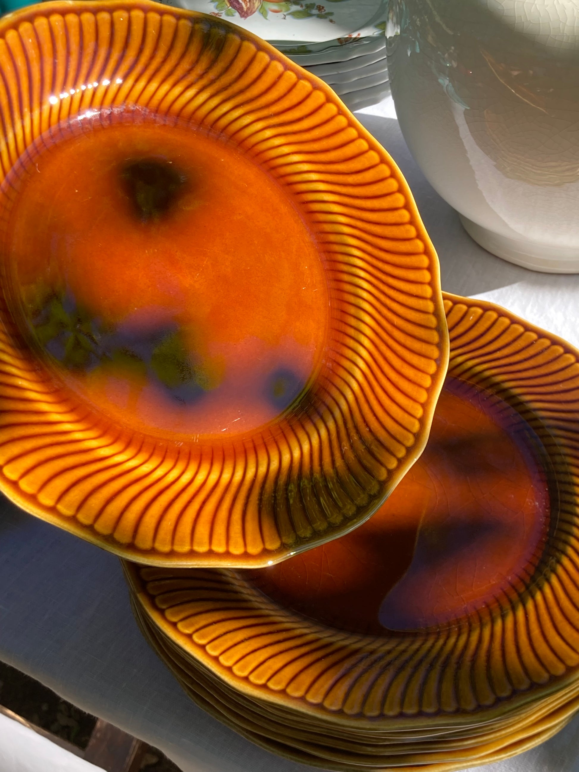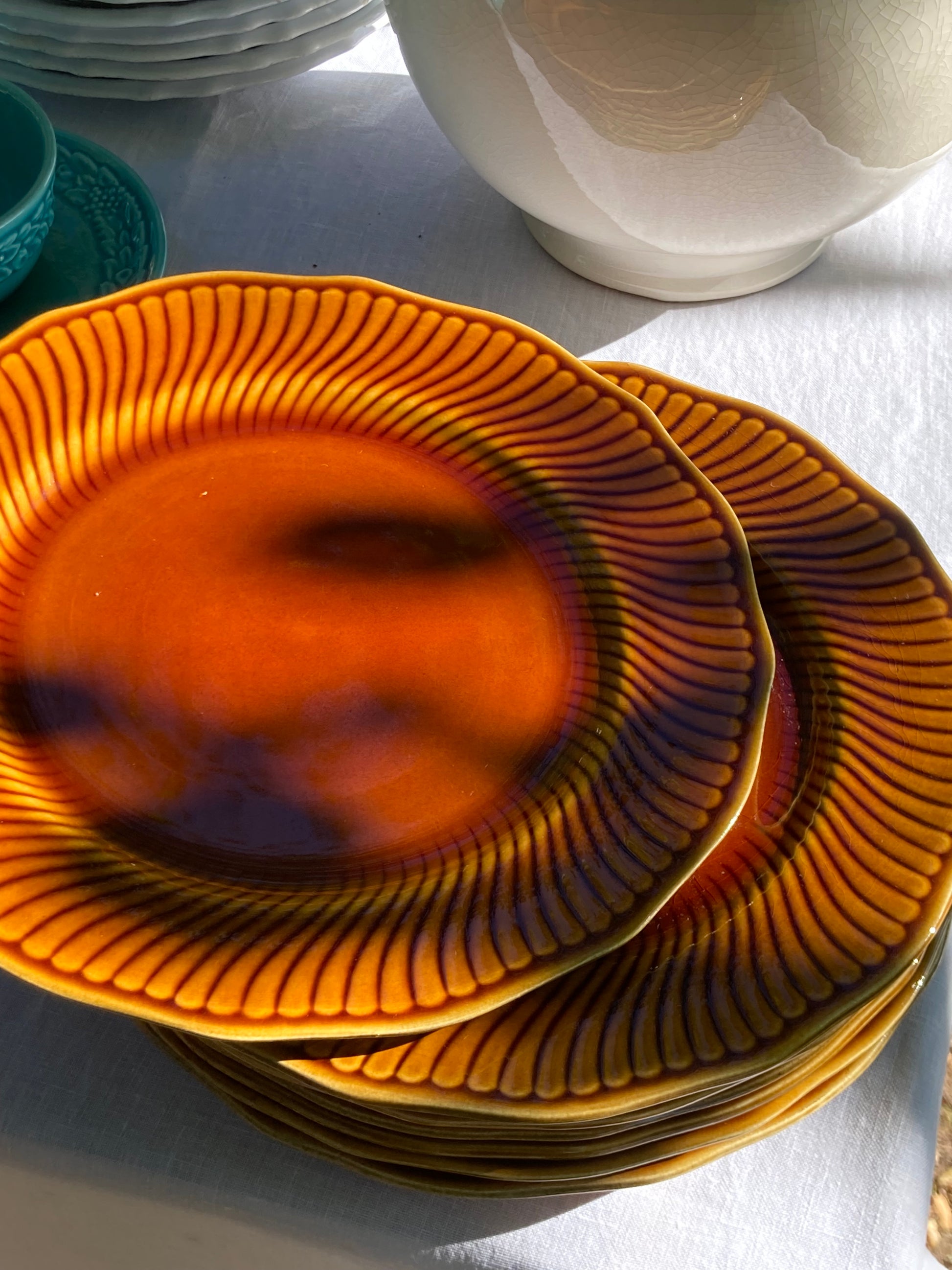 Servizio di 8 piatti piani vintage color caffè Boch La Louviere Made in Belgium marchiati sul fondo 🤎