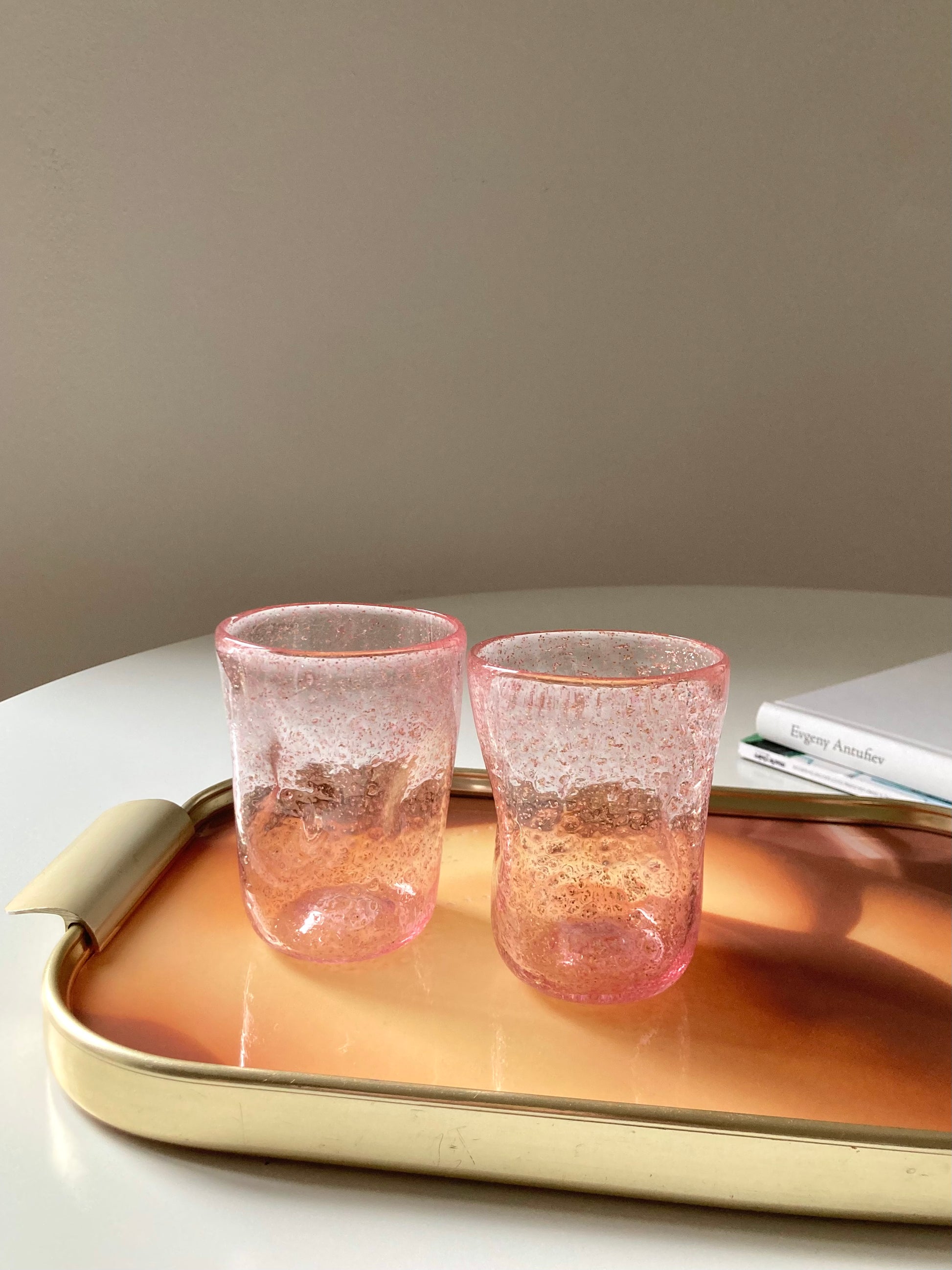 Set di bicchieri goti veneziani da vino o acqua realizzati in vetro di Murano di colore rosa con inserti di glitter dorato che rende ciascun bicchiere unico e diverso dagli altri ✨